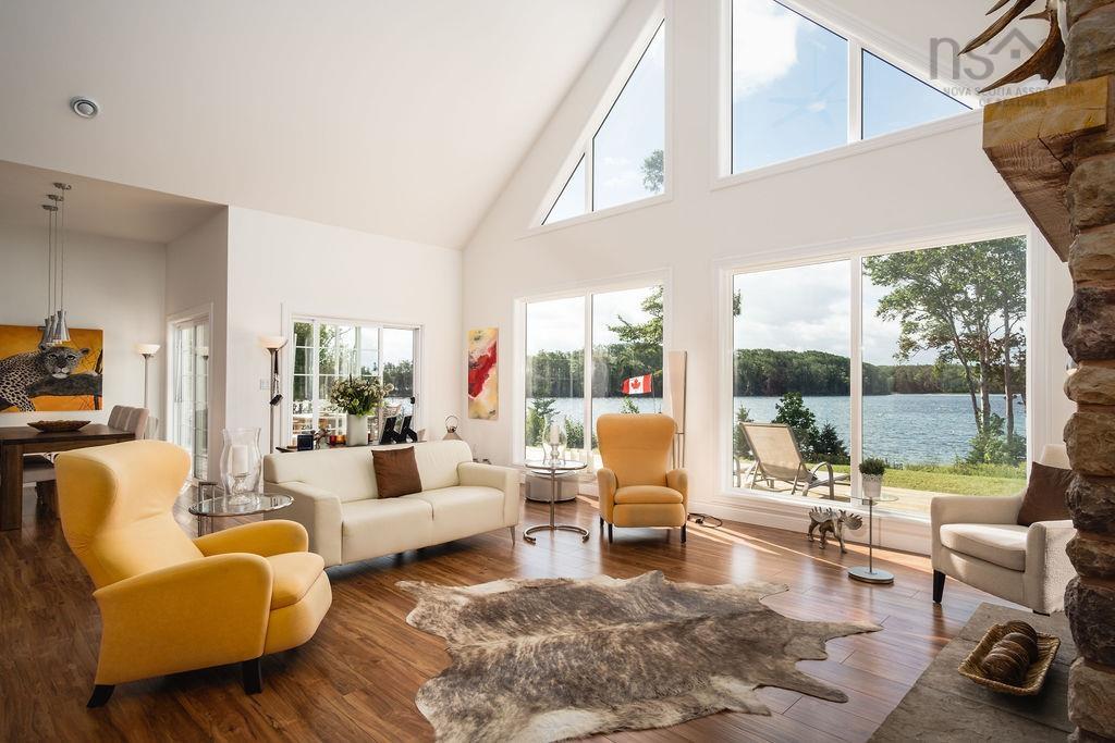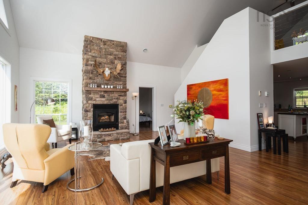 Rare Opportunity & Now with FibeOp option! Located on 850 feet of shoreline on the Bras d'Or Lakes with its very own little beach. This magnificent property is one of a kind and built with the highest standards. Modern, open concept living with a studio/loft on the 2nd level. Built on a concrete slab with ICF frost wall and in-floor hot water heat, along with an impressive stone fireplace with a Napoleon wood burning insert, perfect for cozy winter evenings. All 3 bedrooms have cathedral ceilings with its own private patio door with balcony. The spacious deck surrounds the house overlooking the water. A wooden walkway connects to an all-weather Gazebo, where the owners spend most of their time. Includes a detached garage built in 2019, and a dock, along with all furnishings, many of which are custom built. Across the cove was declared protected land and is free of any structures.