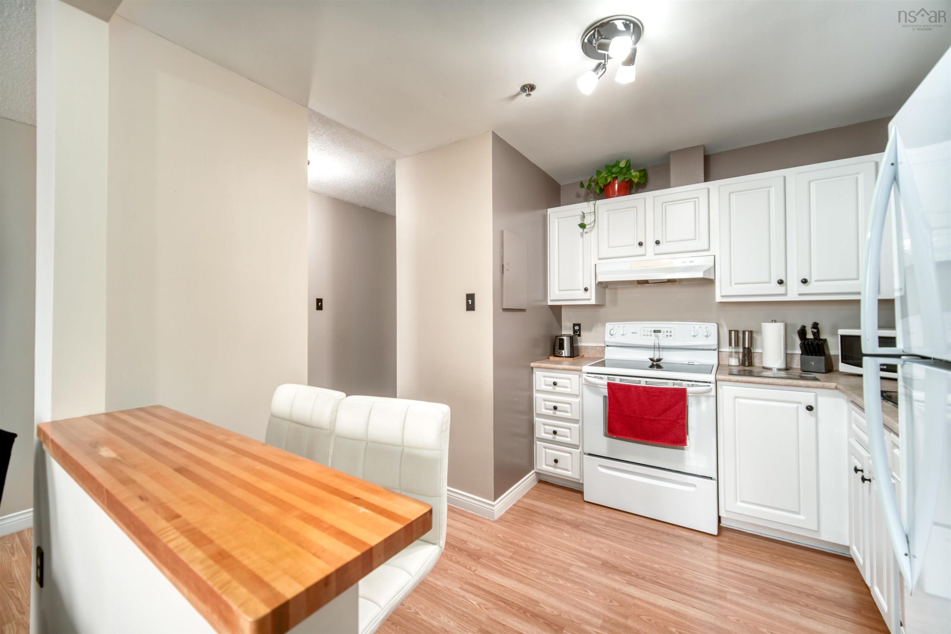 Welcome to the Grove! This pet friendly, one-bedroom condo is exactly the opportunity someone needs in order to break into the ever competitive Halifax real estate market. It could also present as an easy addition to savvy investors, or even a person looking to downsize and enjoy the stress free living a condo has to offer. Super low condo fees of only $286/month increase the appeal. Being located directly on a bus route ensures accessibility to the rest of the city is not hindered. The building is also within walking distance to all desired shopping and amenities, and a variety of restaurants and bars. As you enter the unit you'll see the open concept of the living room, dining room, and kitchen. The bar top offers flexibility for guest seating or just an additional place to dine. Stepping out onto the spacious composite deck you can barbecue and enjoy the fantastic views overlooking the city, or maybe just a relaxing evening taking in the sunset over the horizon. Don’t wait to check this one out!