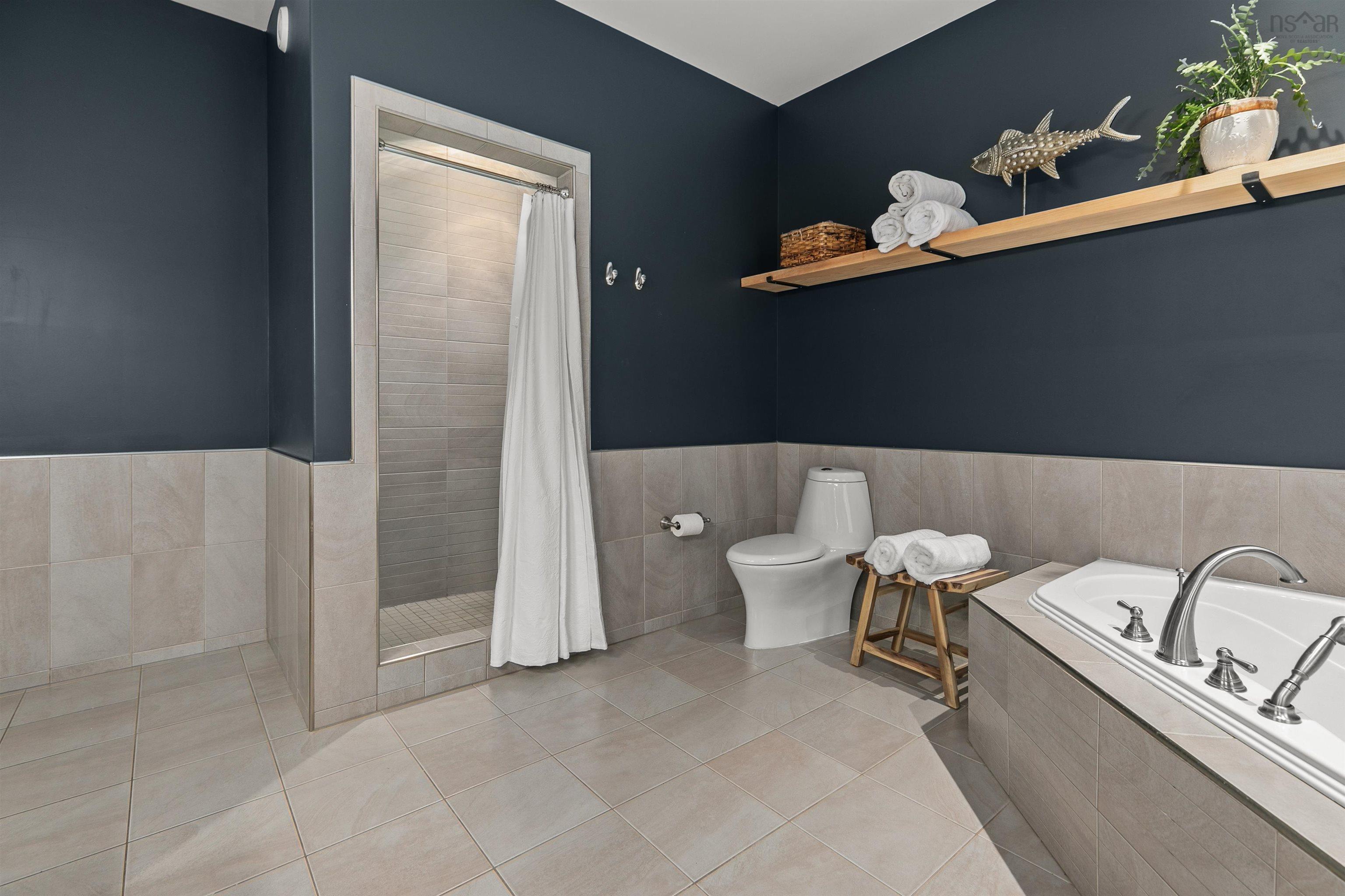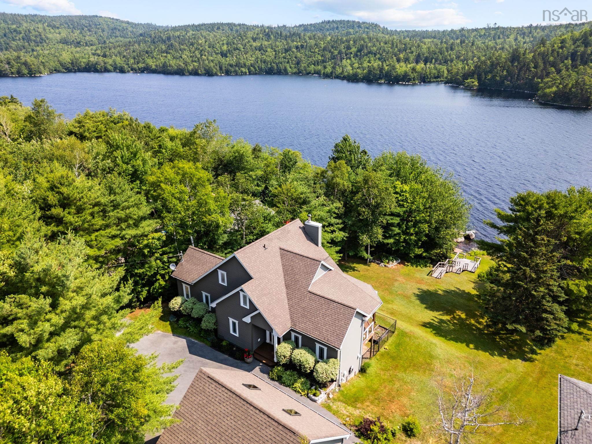 Porters Lake perfection. This beautiful, custom designed home is ready for you to create new lakefront memories. The open concept main floor allows for gracious entertaining and has incredible views of the lake from every room, a chef's kitchen with high-end appliances, a lovely propane fireplace, and access to the expansive wrap around deck for relaxing evening sundowners. The large main floor primary suite is in its own wing and has lots light, an amazing ensuite with custom shower, and your own private balcony to take in the view. The second level has 2 bedrooms, a huge family bathroom, and a cozy library area. The fully finished basement has lots of room to stretch out and host family and friends, a cozy wood stove, a large guest room and full bath, access to an additional patio space, and tons of storage for all of your water toys. The yard slopes to your private dock and water frontage on one of the most private parts of Porters Lake, with undeveloped public land across the lake providing extra privacy. The terraced yard has multiple garden beds, including an enclosed kitchen garden. The wired double garage has a large loft space with skylights, ready for your guests, studio, or office. This home is a rare opportunity to have it all, and only 20 mins from the city.