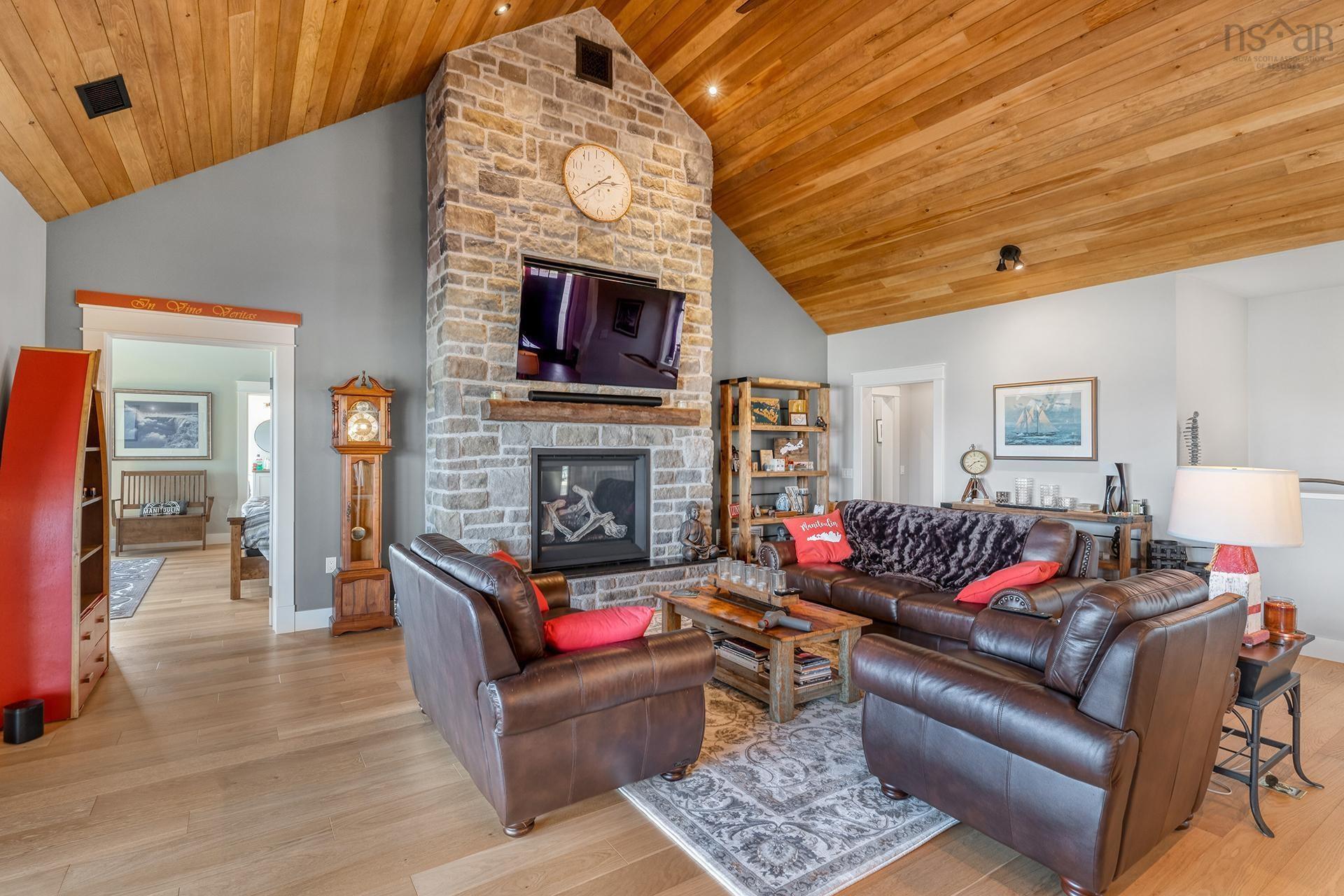 If you are looking for that spectacular "Wow" factor, look no more! Jaw dropping views of the Atlantic Ocean over Faders Cove and the captivating sunrises are simply breathtaking. This gorgeous home sits on a spacious and elevated lot only minutes from the UNESCO Town of Lunenburg and thoughtfully designed for entertaining family and friends. Impressive is an understatement! The quality & craftsmanship shine throughout this custom-built, 5-year-old home! There are so many highlights of this home it truly needs to be seen to be appreciated. Boasting over 4168 sq ft, oversized windows throughout, you’ll never miss the views. The main level consists of an open concept Great Room where you can take-in the ocean views from every window. The Great Room boasts a floor-to-ceiling stone gas fireplace with unique stonework, a dining area and patio doors leading to the breathtaking ocean view, composite deck and the outdoor kitchen to relax and entertain. Also on the main floor is the primary bedroom with a comfortable sitting area, vaulted ceilings, where ocean views don’t disappoint, including an impressive ensuite, plus a soaker tub and of course a marvellous walk-in closet. A carefully curated office with built-ins book shelves, a roomy mudroom/laundry room joining the attached double garage and a full bath completes this impeccable first floor. As you move to the lower level, which has the same views, offering the best casual entertaining experience with a cozy media/games room with wet bar, a propane fireplace, three bedrooms, a full bathroom and large storage/utility room. Outside, the grounds are professionally landscaped with lots of paved parking and a separate two car garage with lounge area. At 580 Masons Beach Road, you are both home and at the cottage. This home simply has it all and is a treasure to be cherished. The property also includes a separate adjacent adjacent building lot with well and septic already in place. Floor plans and video are available. Waldorf