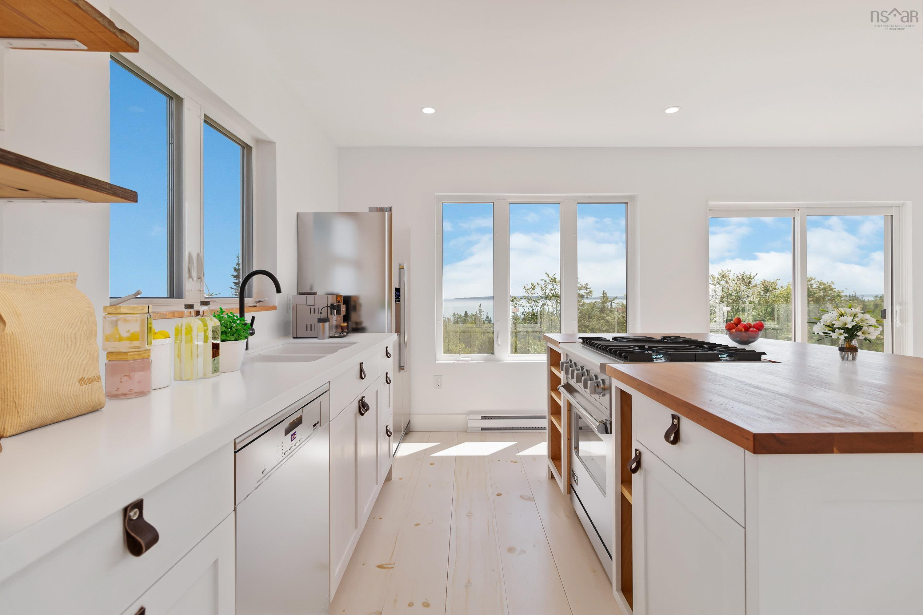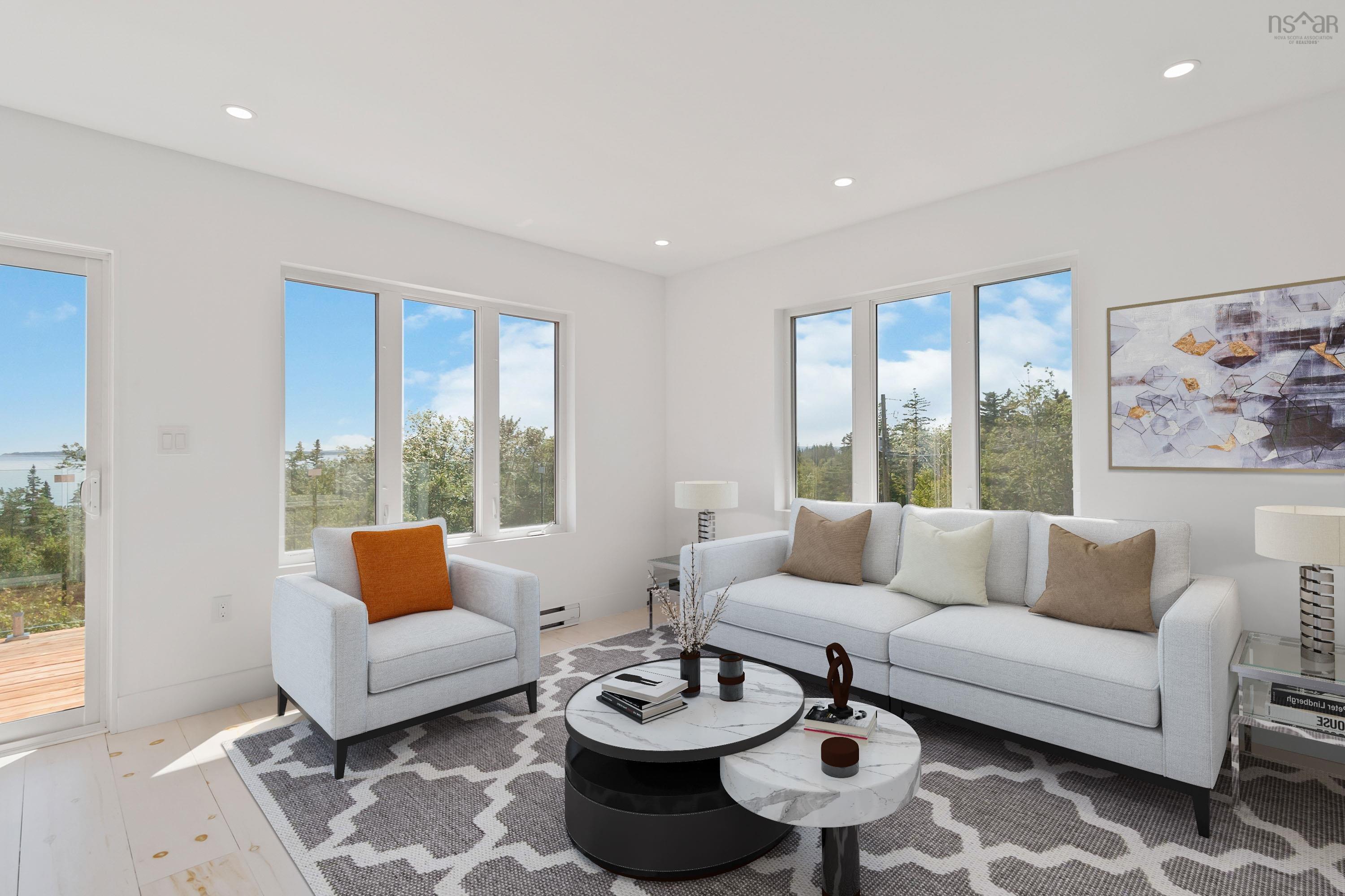 *Price now includes HST! Buyers take note of new home rebate programs.* Towering above the trees, panoramic 270° ocean views await you from this spectacular 3-level new build! At the end of a private road in the seaside community of Hunts Point, the ‘Tower House’ offers over 2300 square feet of finished living space between a two-storey construction and finished basement, with 3 bedrooms and 3 full bathrooms. 10 foot ceilings on the main floor create an expansive and bright living space, with the utmost attention to craftsmanship and detail found throughout the home. A no-maintenance metal exterior is complemented by two oversized decks to take in the views, on a private 1.75 acre lot. With the kitchen and open-concept living space on the top level, the water views can be enjoyed while entertaining; the patio door opens onto the glass railing deck with breathtaking Southern sunset views. With a bathroom on each level, further development of the space would be possible by adding bedrooms or finishing the basement into an in-law suite with its own entrance; the Builder is available to make custom modifications. Designed with an approach emphasizing quality and minimalism, elements such as custom tiled bathrooms, modern finishes and fixtures, Cherry kitchen countertop, and a polished concrete basement create a practical and carefree living space. The basement electrical and plumbing has been roughed-in for the possibility of further developing a secondary suite. Whether seeking a large single family home or vacation property, or expanding with future development for rental potential, this property is sure to impress.The beauty of the Hunts Point area cannot be overstated; with a moderate oceanside climate, a short walk to Hunts Point Beach, quick drive to three of Nova Scotia’s best beaches, oceanside golfing and surfing, and a 12 minute drive to Liverpool’s hospital and Town amenities - this property leaves nothing to be desired. Come see the Tower House today!
