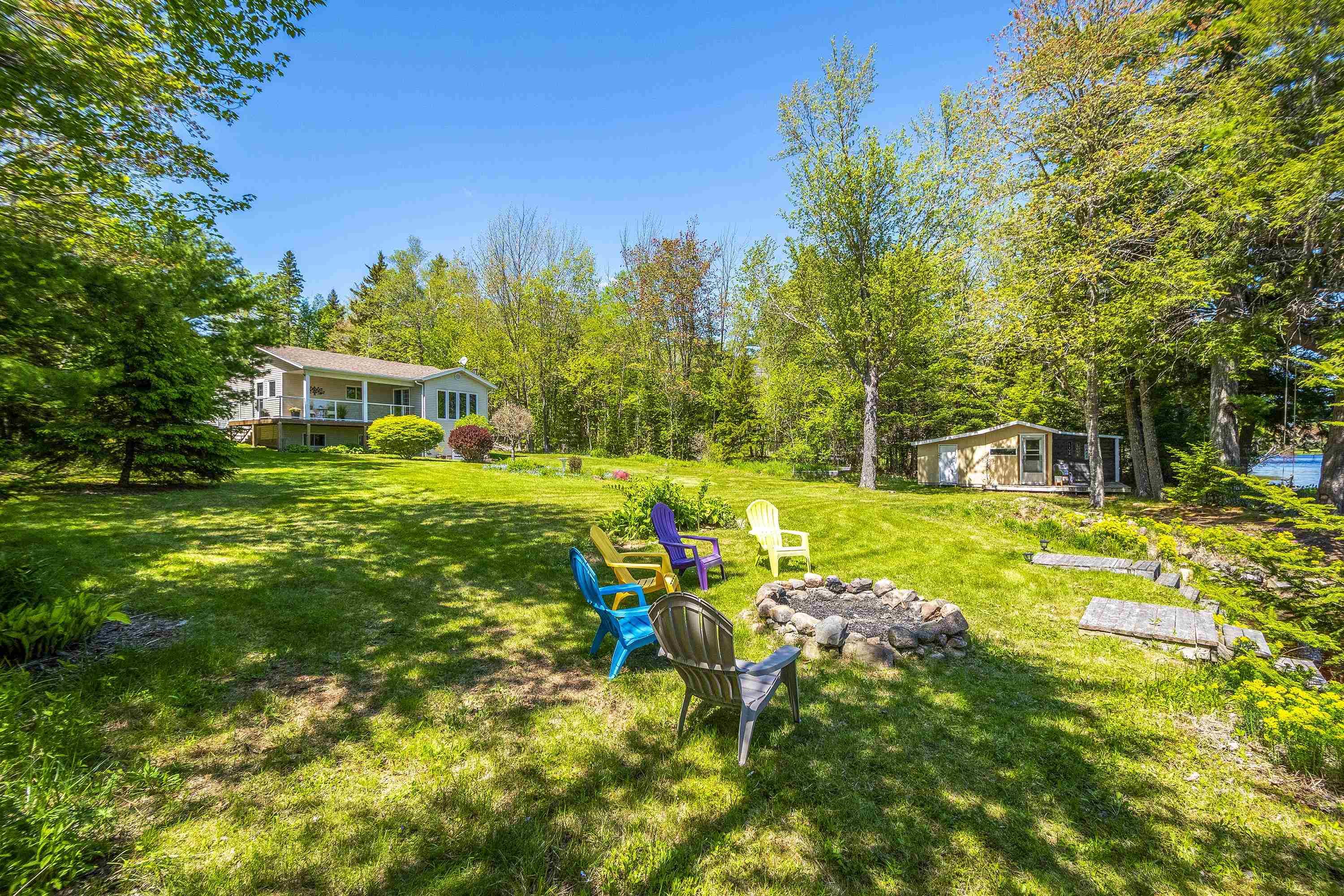 This charming, peaceful retreat on Mack Lake is now available! Situated on 1.33 acres with 147 feet of beautiful lake frontage, this home features 2+1 bedrooms and 1.5 bathrooms. The spacious, open-concept living area features hardwood and ceramic floors, and a large picture window offers breathtaking views of the lake. Downstairs is ready for your finishing touches and offers a spacious family room, warmed by a cozy wood stove, a private study or third bedroom, a large open area with plenty of potential, and convenient laundry facilities. The walkout basement adds easy access and flexibility to the space. Comfort is ensured year-round with two heat pumps, and a plug for a generator in the basement, for peace of mind. Outside, unwind in the charming lakeside hut with an adjoining equipment shed, or take advantage of the large detached garage—ideal for any handyman. There's even an attached Man Cave for your personal retreat. Enjoy spectacular views from your front window or while relaxing under the covered verandah, rain or shine. The property also boasts a beautifully landscaped yard with mature gardens, offering the perfect balance of tranquility and indoor-outdoor living. This property must be seen to be truly appreciated! Book your appointment today!