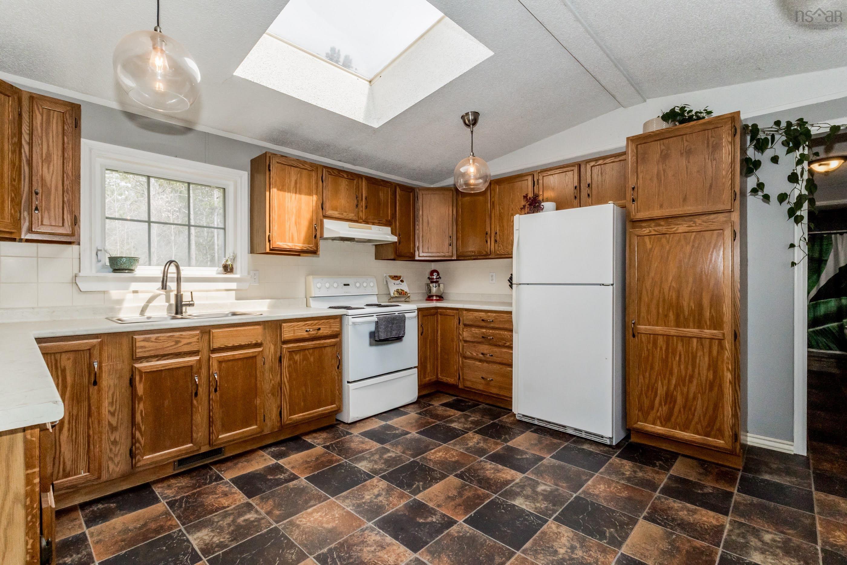 The perfect starter or retirement opportunity awaits! This lovely property is situated on a 1.2-acre lot just moments from Greenwood town amenities and CFB Greenwood military base. Featuring a beautifully landscaped and private lot with a double paved driveway and ample parking, two sheds for storage, and both front and back verandas. Inside, you'll find an open-concept kitchen and dining area with ample storage, vaulted ceilings, and a skylight. A cozy living room with an efficient woodstove and patio doors leads to the screened-in porch. A separate laundry room with closet space and a primary bedroom complete with a full ensuite and walk-in closet. Two other well-sized bedrooms and a second full bathroom offer a functional and family-friendly layout. This home has been well cared for and offers a smart layout for any stage of life. A new metal roof was just installed, the septic system was pumped in 2023, and the home is serviced by a drilled well and a 200-amp breaker panel. This property is available for quick possession. Book your viewing today!