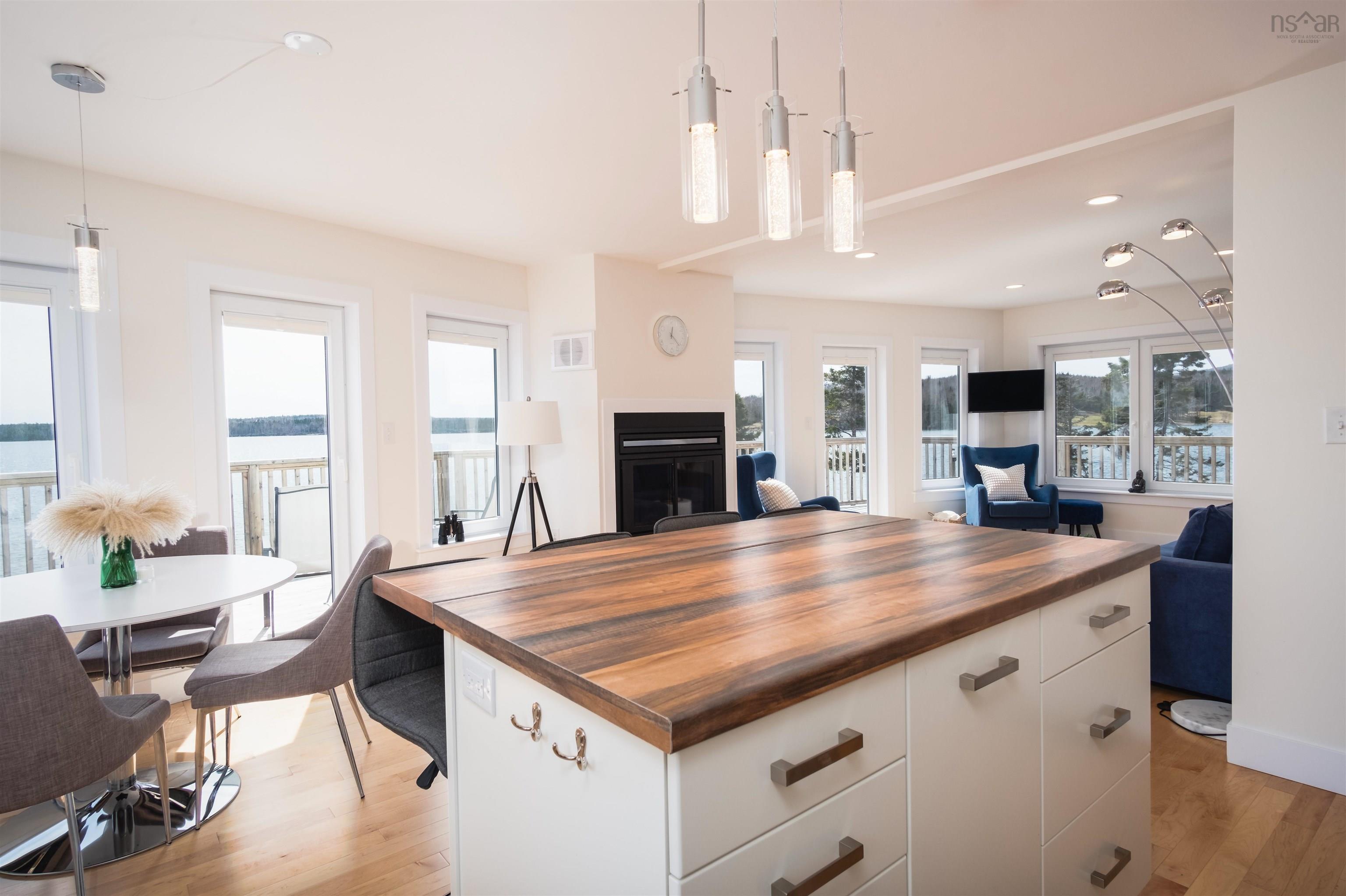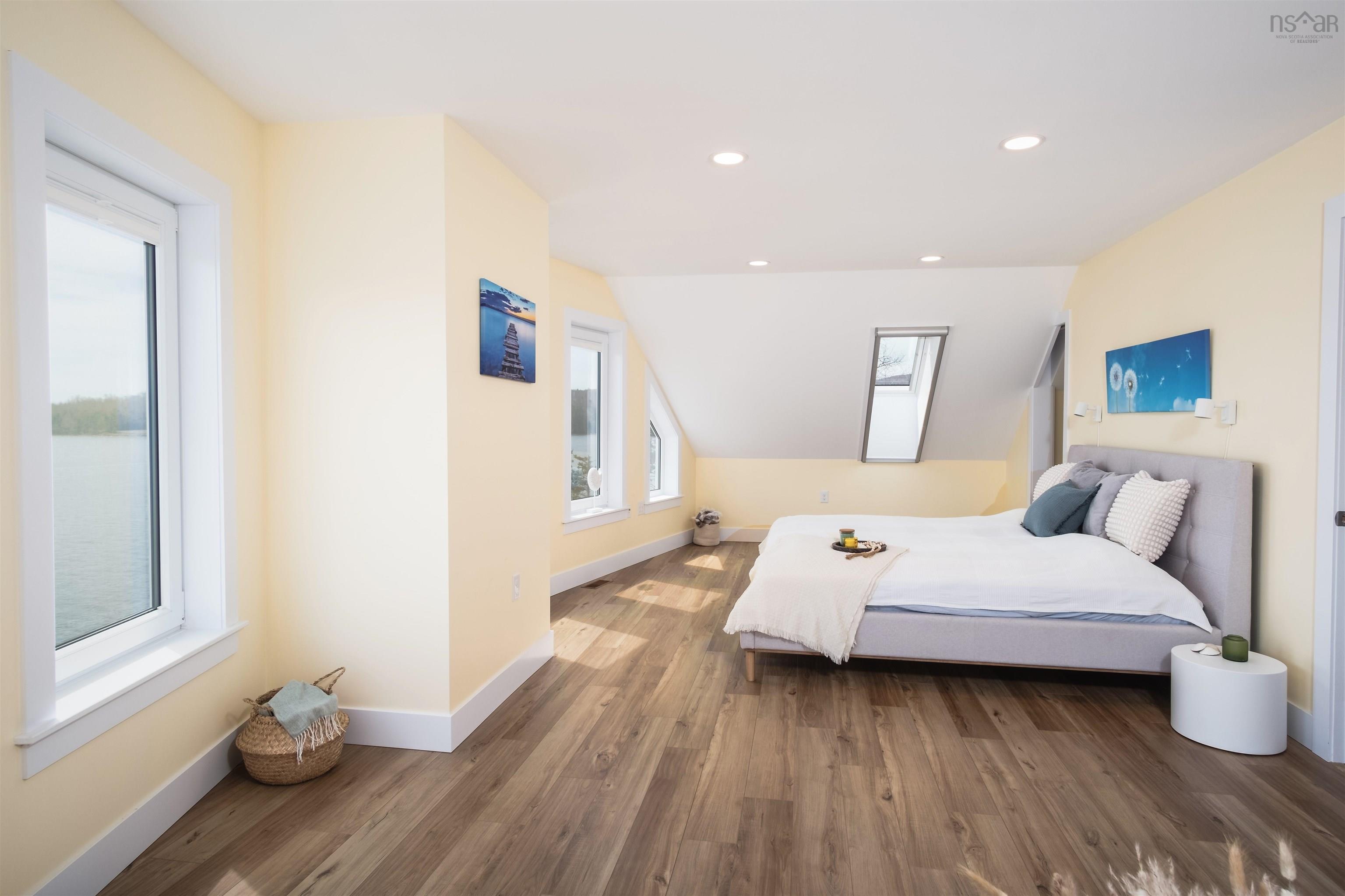 Let the sound of the waves gently lapping at the shore relax you within this BRAND NEW sanctuary that makes the most of its unparalleled vistas. The distinctive and modern home sits on more than 3.5 acres of beautiful forested land that embraces a lovely pond and provides close to 400 feet of shoreline on Cape Breton's famed Bras D'Or Lake. The exceedingly spacious three-level house was constructed just 115 feet from the waterfront with the seascape as its focal point, and with no expense spared. Thanks to the many large windows and skylights of the utmost quality throughout, the house is flooded with light. The highly insulated ICF build boasts five above-grade bedrooms, including an exceptionally generous primary bedroom with stunning scenery. As part of a self-contained unit with the option of its own access downstairs, a sixth bedroom also offers wonderful lakefront views. Three bathrooms with ceramic tile, underfloor heating, and European wall-hung toilets with integrated cisterns provide ultimate comfort, as does the luxurious soaker tub on the second floor. Experience bliss as you enter the bright and spacious main-level living room which flows seamlessly into a gleaming eat-in kitchen containing an island with seating for four. This magnificent abode is also home to a cozy wood-burning fireplace, high-end stainless steel appliances, solid maple floors, and a screened porch which grants access to a massive deck that wraps the home from side to side. An additional living room and kitchen are integrated within the charming lower level walkout; it provides amazing water views as well as the opportunity to be used as an apartment or rental unit. A detached two-vehicle garage with remotely controlled doors offers more than 650 square feet of storage space within a wired, heated unit. This rare and remarkable property is being offered with high-end major appliances, furniture, custom blinds, and a new Generac included. It's ready for you to move into today!