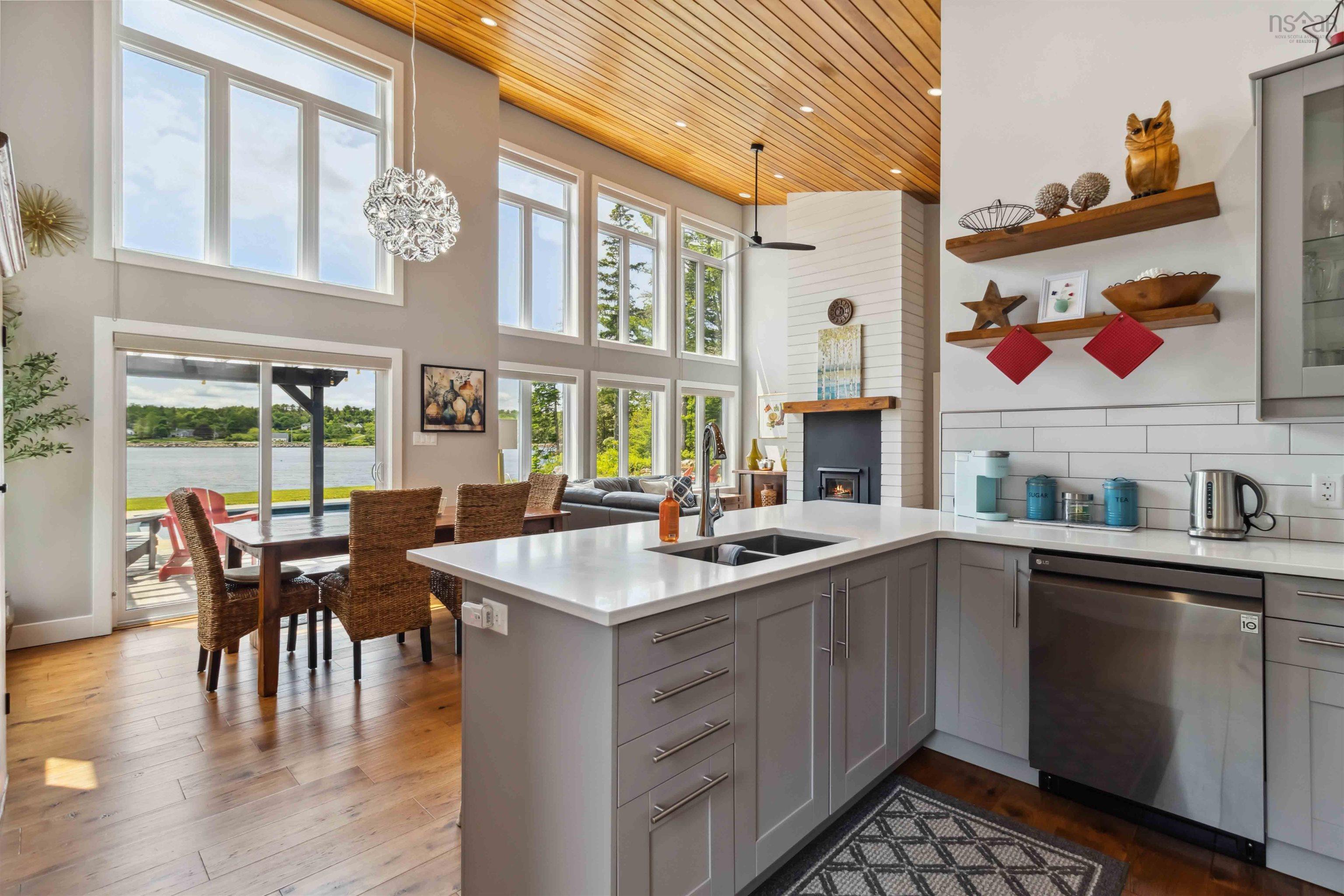 Embrace the charm of coastal living in this breathtaking oceanfront home, nestled in the picturesque community of Chester Basin, NS. Renowned as a sought-after East Coast destination, Chester Basin offers tranquil seaside beauty, close proximity to the vibrant village of Chester, Mahone Bay and Oak Island and easy access to world-class sailing, premier golf courses, and charming boutique shops. Step inside this gorgeous home and experience the seamless flow of the open-concept living areas, where large windows bathe the space in natural light, creating a warm and welcoming atmosphere ideal for both everyday living and entertaining guests. The modern kitchen is a chef’s delight, featuring sleek stainless steel appliances, generous cabinetry, and a central island that’s perfect for meal prep or casual dining. Beautiful Clear pine ceilings, and engineered hardwood floors throughout. Enjoy the warmth of the efficient pacific energy stove for the cooler nights. The spacious primary suite offers a peaceful retreat, complete with a luxurious ensuite bathroom. Step outside to your own private oasis—an expansive deck overlooking the sparkling ocean water, a beautifully maintained heated inground pool invites you to exercise and refresh, and the hot tub is the perfect way to relax and unwind, offering the ultimate in outdoor living, ideal for hosting summer get-togethers or enjoying quiet moments at sunset. A detached garage provides ample storage or the perfect space for a workshop, and Man cave. The property also has a Change room by the pool , separate woodshed. Nothing was overlooked here!