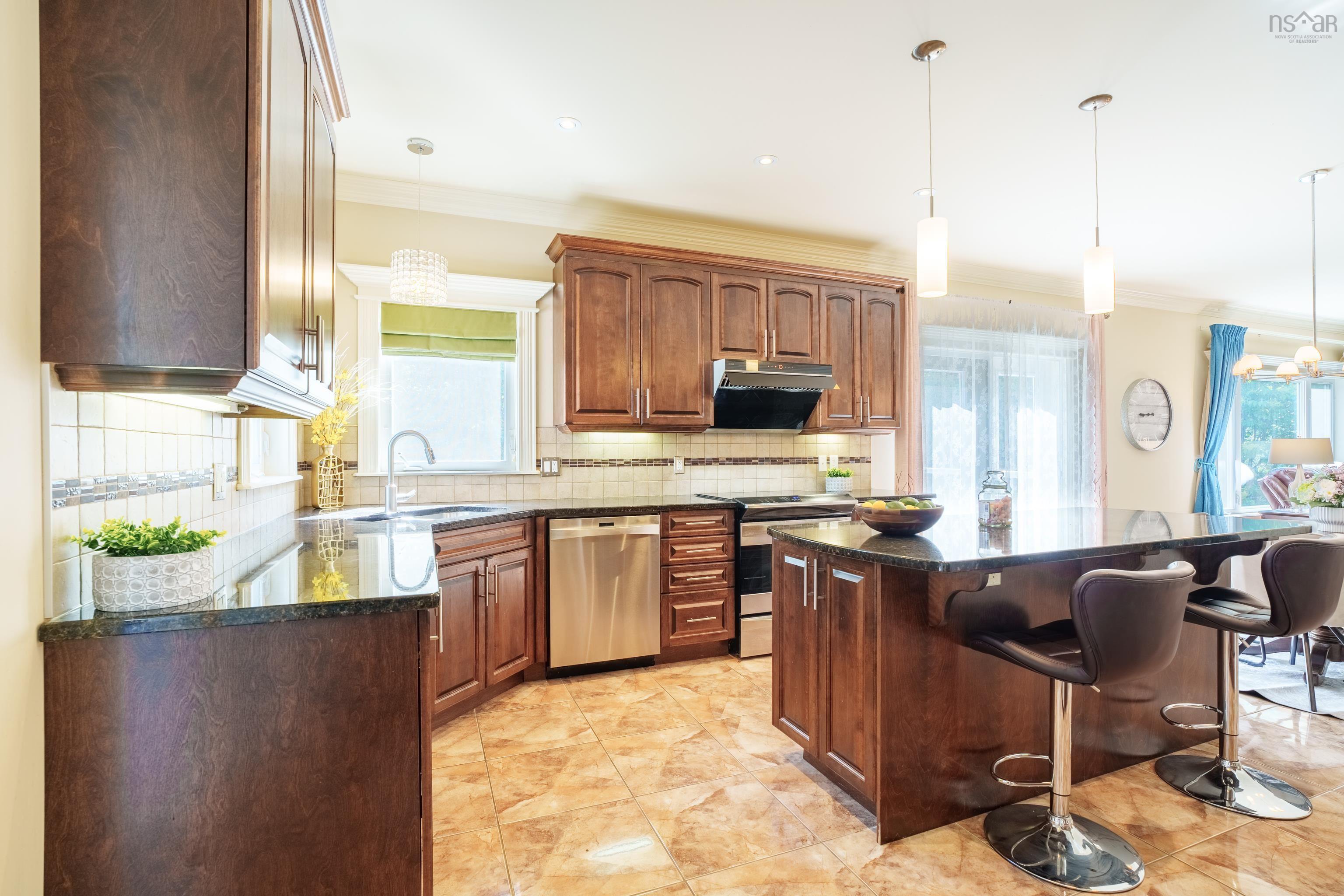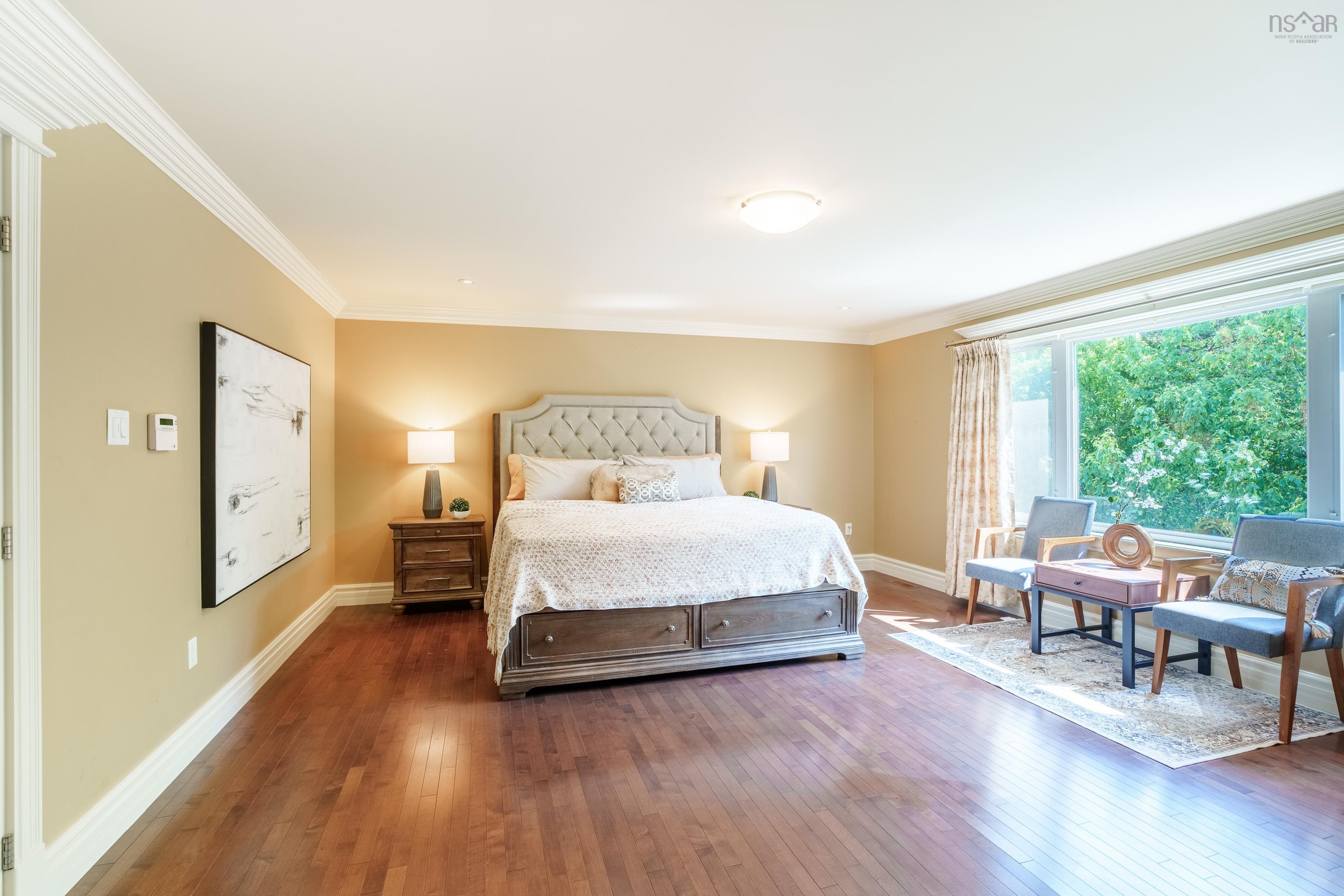Welcome to this exceptional executive home located in The Ravines. Perfectly positioned on a beautifully landscaped corner lot, this 6-bedroom, 4-bathroom residence backs onto a peaceful greenbelt with direct access to the Old Coach Road trail system—offering both luxury and lifestyle in a highly desirable neighbourhood. The main level features 9-foot ceilings, crown moulding, hardwood and ceramic flooring, and expansive formal living and dining rooms with vaulted ceilings. A bright and spacious family room opens to the gourmet kitchen, ideal for entertaining and everyday living. The main floor also includes a private home office/den, a powder room, generous closet space, and access to a double car garage. Upstairs, hardwood continues throughout four large bedrooms, a 4-piece main bath, a convenient laundry room, and a luxurious primary suite overlooking the treed greenbelt. The primary includes a walk-in closet and spa-like 5-piece ensuite. The fully finished walkout basement offers exceptional versatility, featuring 2 additional bedrooms, a full bath, hobby/storage space, and a spacious recreation area—perfect for extended family or guests. With 9-foot ceilings and oversized windows, this level feels bright and inviting. Move-in ready and thoughtfully designed with quality finishes throughout, this remarkable home is ideal for families seeking space, comfort, and elegance in one of the area’s most exclusive communities. West Bedford High