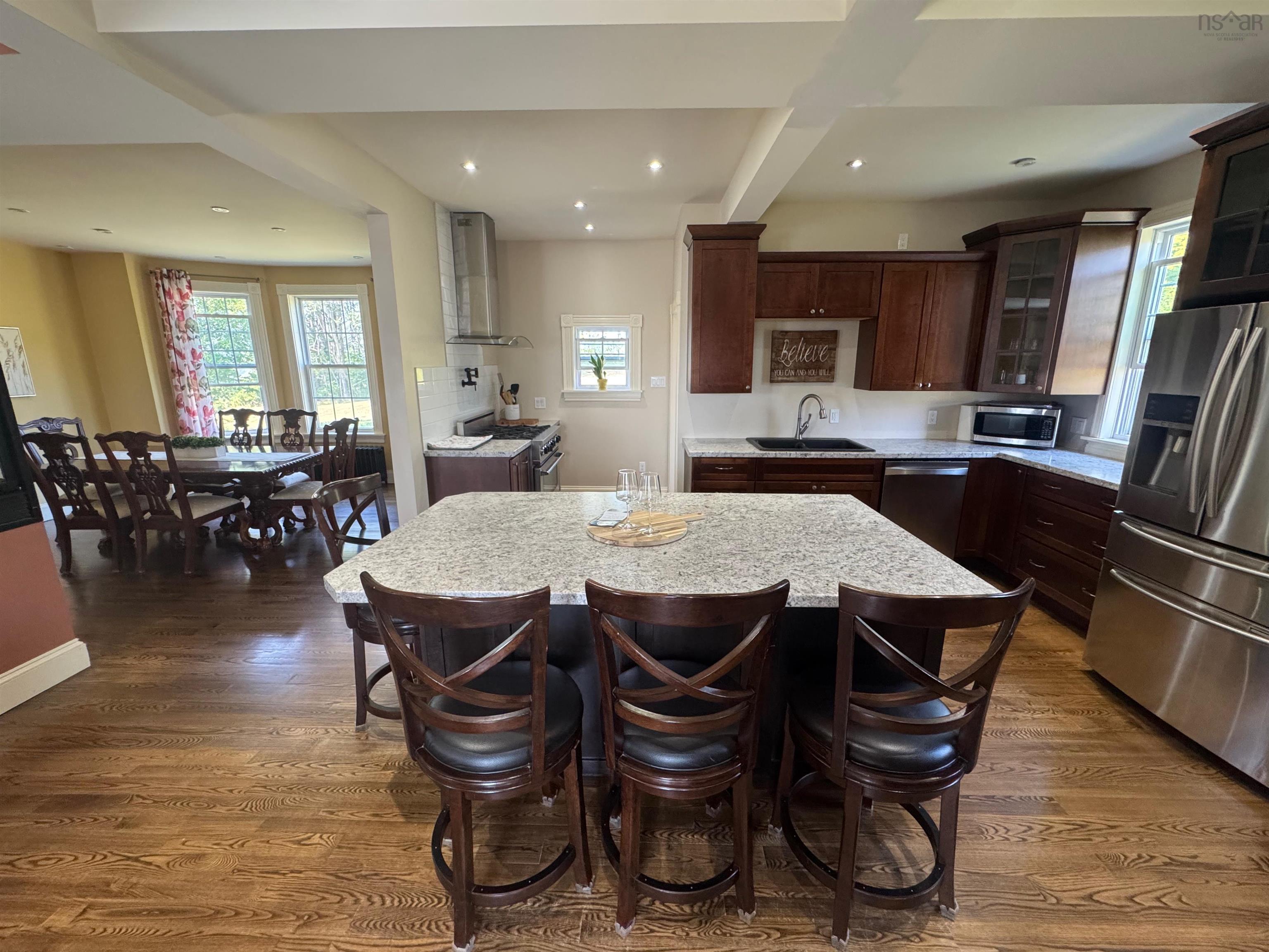 Welcome to your next chapter in beautiful Port Hood, where this thoughtfully updated four-bedroom home sits proudly above the harbour, offering panoramic ocean views and timeless appeal. Blending classic character with modern functionality, this spacious home has been carefully restored over the years, offering both comfort and charm. Step inside to a bright and practical entryway, complete with a powder room for added convenience. The heart of the home is the expansive kitchen, outfitted with premium appliances including a propane stove, double ovens, pot filler, and walk-in pantry—perfect for home chefs and entertainers alike. The adjacent dining room invites family dinners and special occasions with ease. Hardwood floors carry you through an open and sun-filled living space, where the family room and living room connect effortlessly. Large windows frame ocean views, while the front porch leads to a covered verandah—a peaceful place to sit back and enjoy a vibrant sunset or the gentle sea breeze. Upstairs, discover four well-proportioned bedrooms, an oversized laundry room, and a spa-like main bathroom featuring a double vanity, heated floors, and a generous walk-in shower. The primary bedroom offers a quiet escape, complete with double closets and a cozy electric fireplace. The full walkout basement remains unfinished, offering flexibility for storage or future development—an opportunity to truly make the space your own. Located just minutes from the town’s beaches, trails, and all amenities, this home is ideal for families, seasonal getaways, or anyone dreaming of a coastal lifestyle. Experience life at a slower pace, surrounded by beauty, comfort, and community.