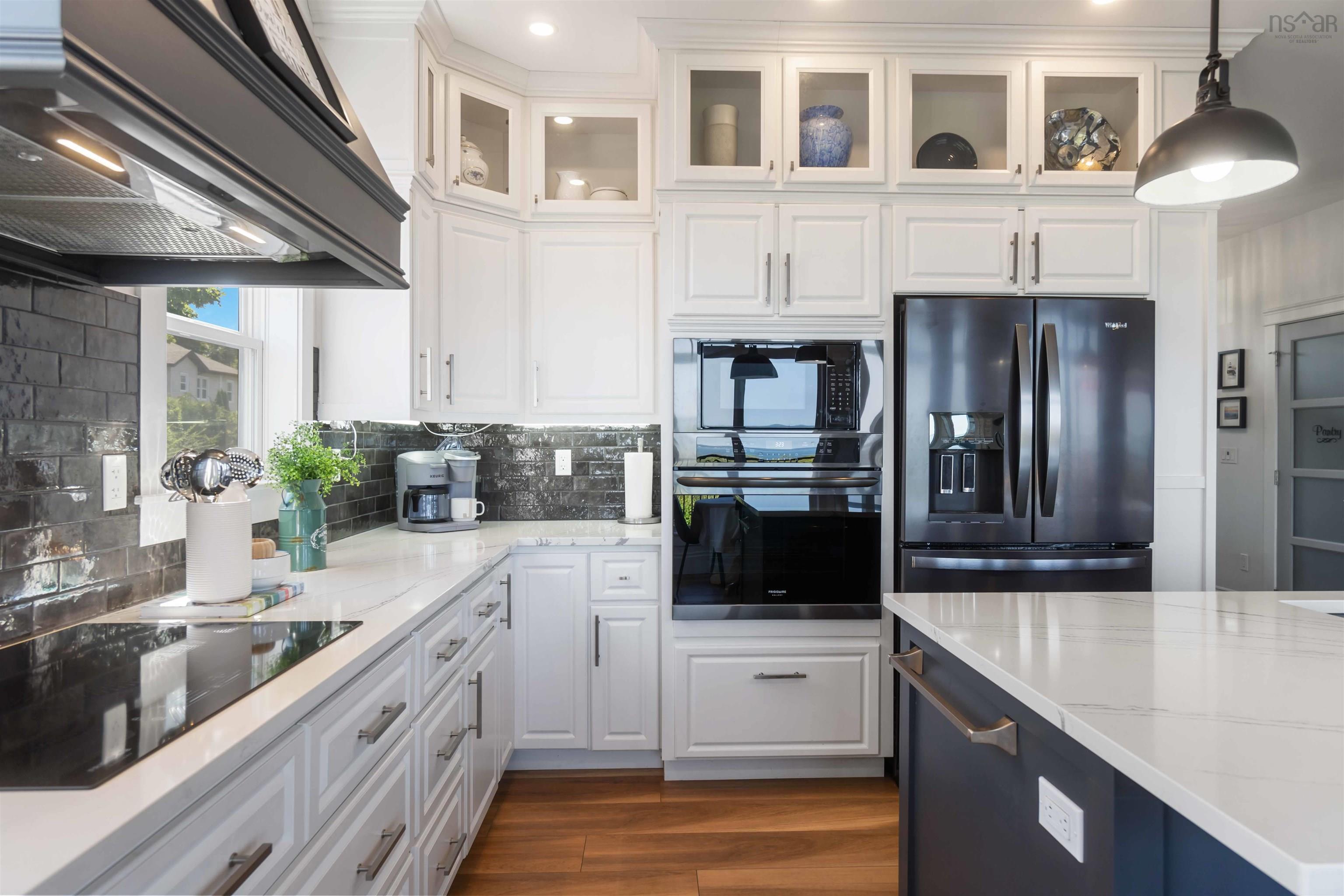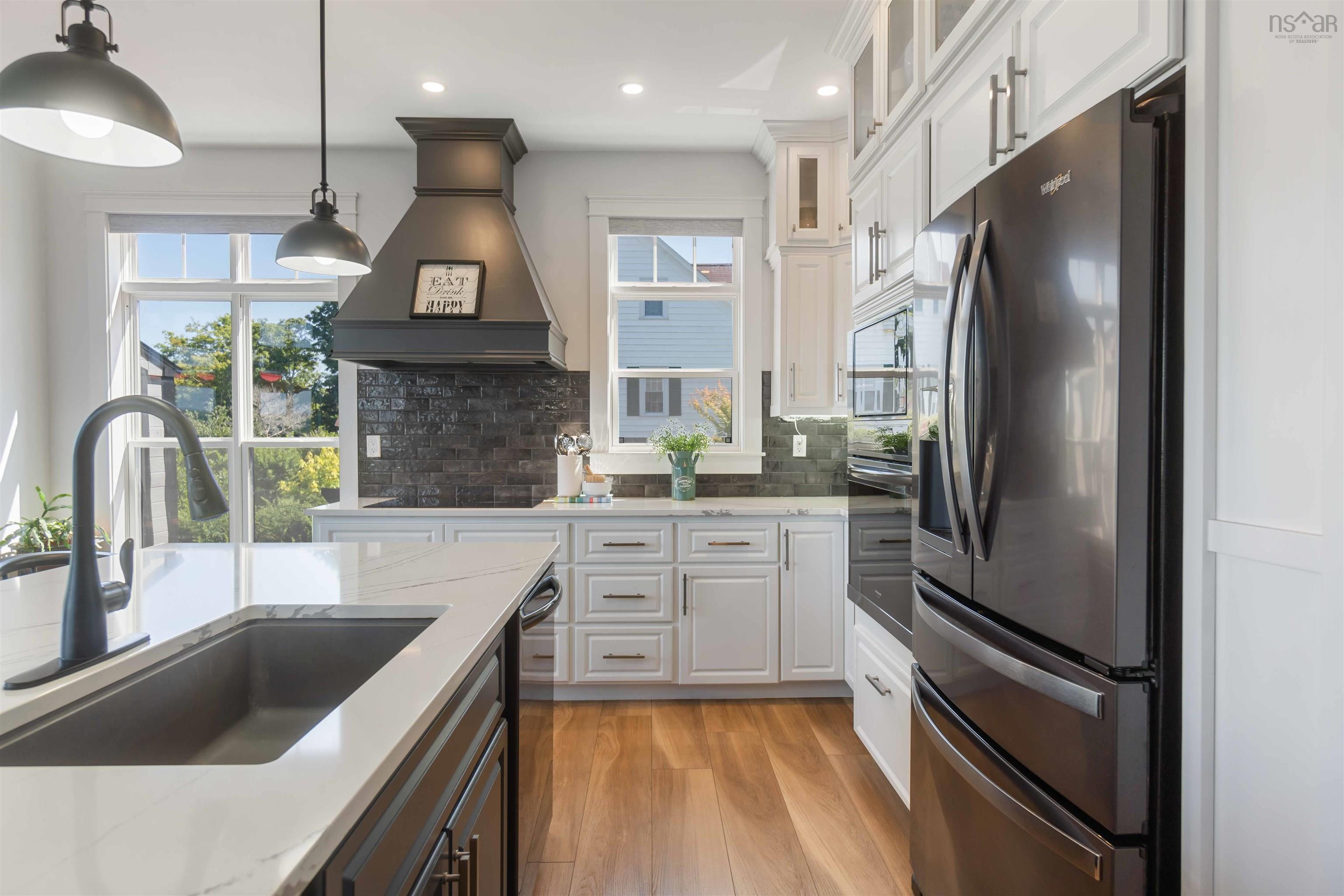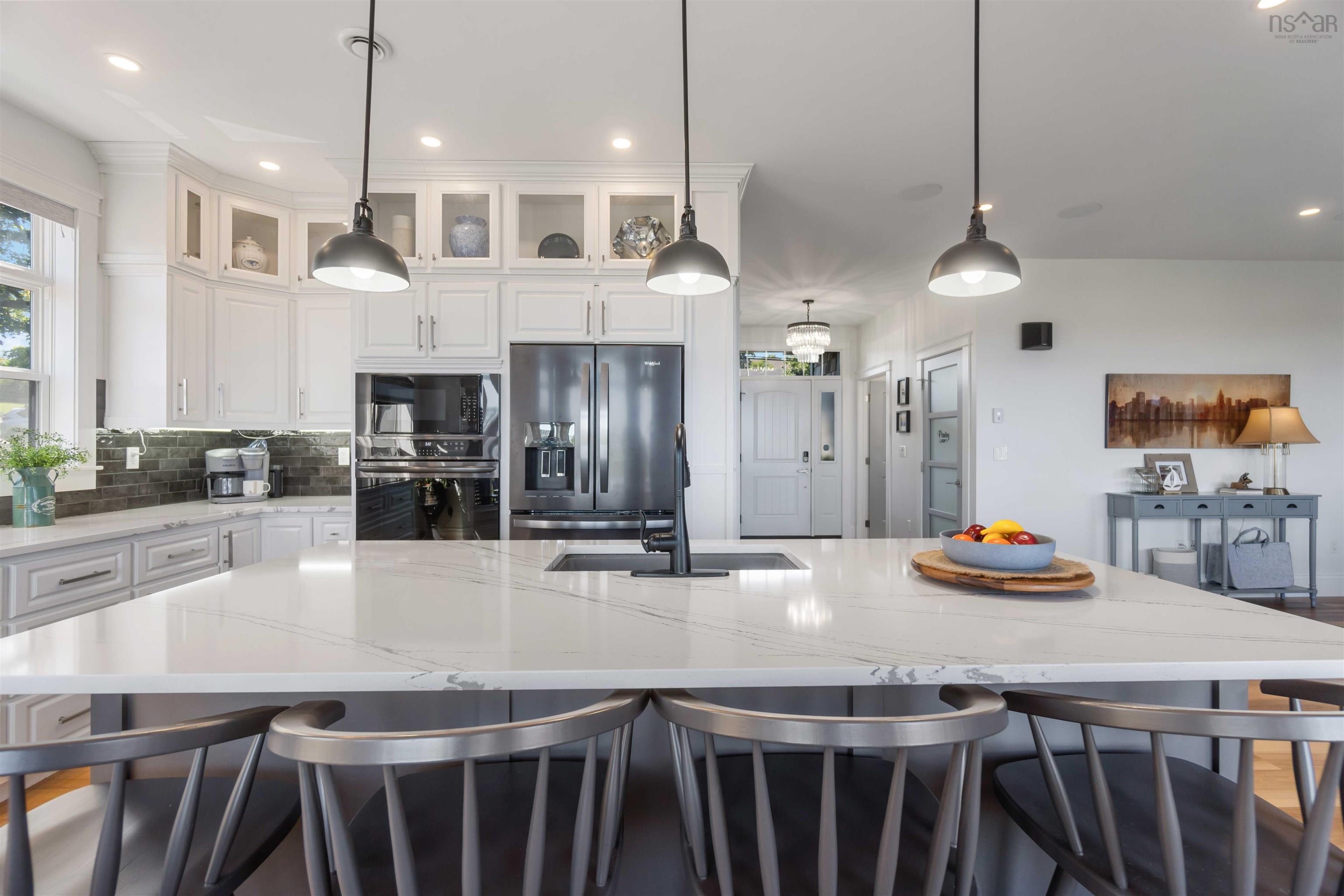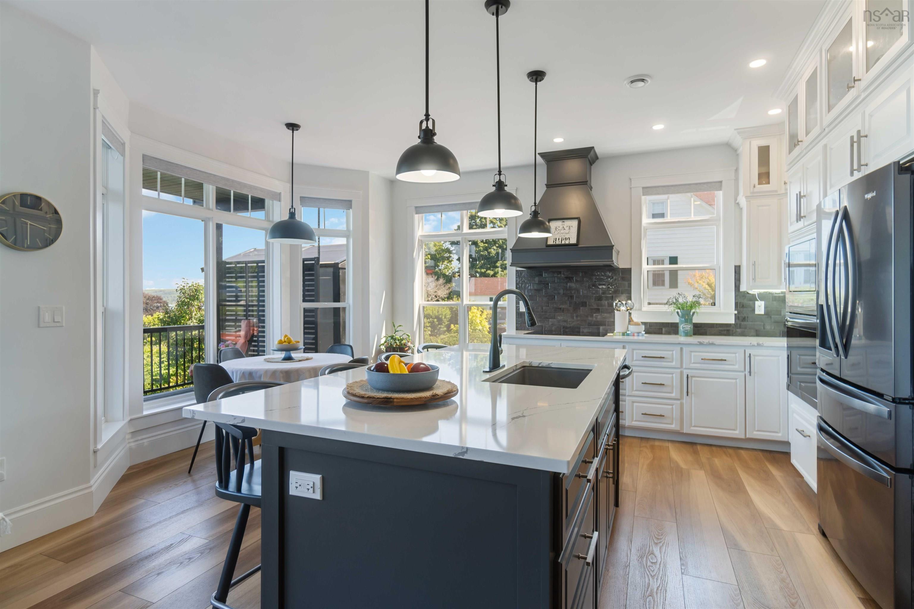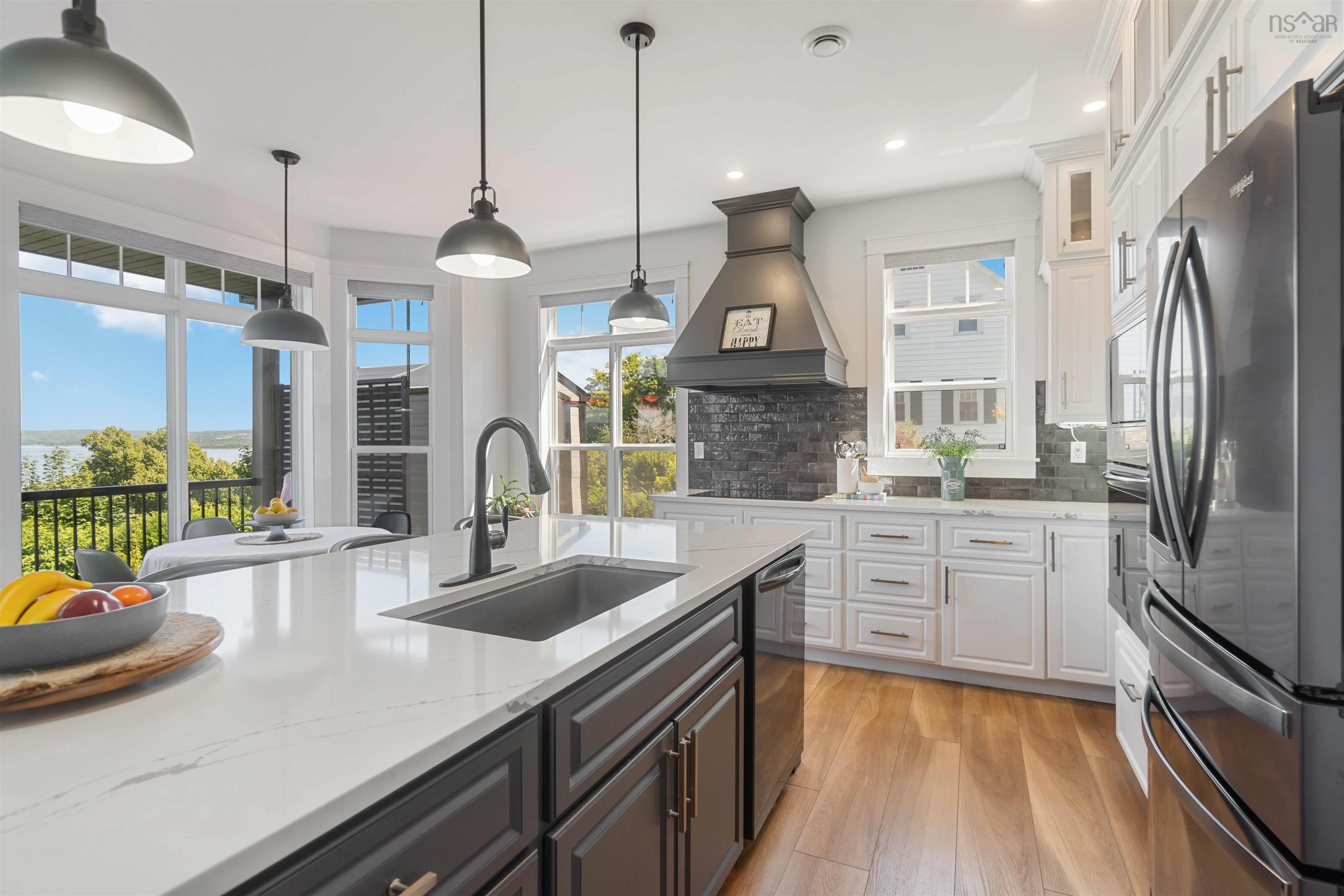 Welcome to luxury living in downtown Digby! This custom-built, one-level home is a smart oasis, equipped with Google automation systems throughout, providing ultimate convenience. Boasting a stunning 180-degree elevated view of the Annapolis Basin, enjoy panoramic vistas stretching from Digby Pines Golf Resort & Spa to Smith's Cove. Every day here feels like a retreat, with ocean views from the primary bedroom, living room, dining area, and kitchen. Step outside to the expansive 31' x 20' composite deck, perfect for hosting gatherings or simply relaxing in privacy while soaking in the Annapolis Valley sunshine. Whether unwinding with an evening cocktail or enjoying a cup of freshly brewed coffee in the morning, this deck will quickly become your favourite spot. The chef’s kitchen is a masterpiece, featuring sleek quartz countertops, built-in appliances, a custom rangehood canopy, and a large island with a built-in sink plus those spectacular ocean views. The open-concept living room is designed for relaxation, with a custom TV wall and electric fireplace. Throughout the home, 9-foot ceilings and in-floor heating add to the luxurious feel. The primary bedroom is nothing short of a dream, bathed in natural light and framed by large windows that perfectly capture the breathtaking view. Indulge in the spa-like ensuite, featuring an air jet tub, custom porcelain tile glassless shower, dual vanities, and elegant fixtures. The home also features a 790 sq ft 3-car garage, with radiant in-floor heating including a third bay currently finished as a custom home theatre—easily converted back to a third car bay if needed. A brand-new 10' x 12' shed with a 12' x 15' deck overlooking the Annapolis Basin adds even more charm. With landscaping updates and retaining walls added in July 2025, and just steps from downtown shops, restaurants, and the waterfront, this home offers the perfect balance of extravagance and convenience. Don't miss the opportunity to view this stunning home!