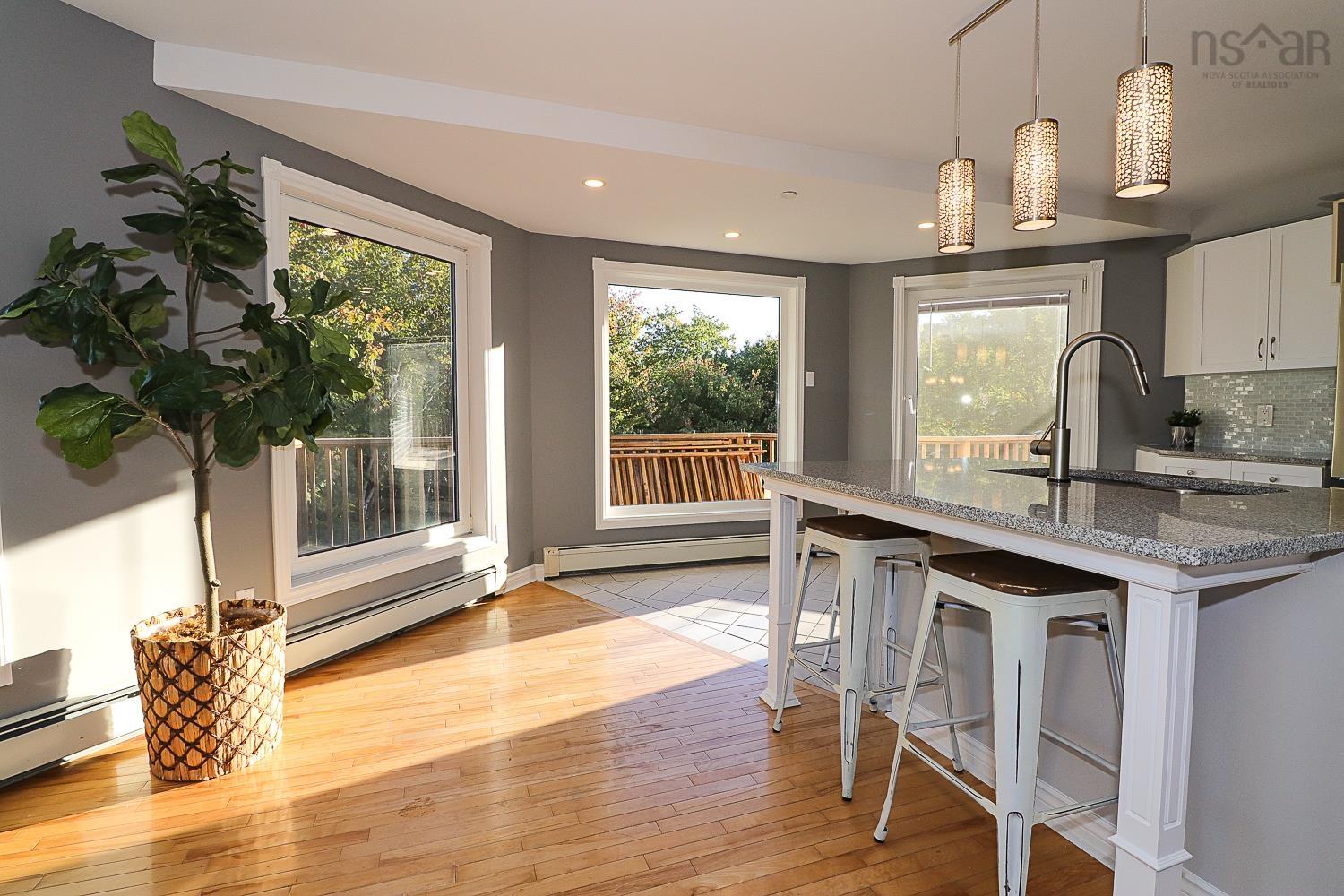 Looking for something totally unique that is on just over an acre lot surrounded by woods providing a private serene waterfront setting with gorgeous sunsets, and is actually two residences in one? Here is a raised bungalow duplex with no entrance stairs to either level making each wheelchair accessible - an interesting and unique arrangement where the home can be used as a single family home, a multi-generational home or a home with a full secondary suite apartment as a duplex providing you with short term or long term residual income. Stoney Beach Road in Whites Lake is just 15-20 minutes to Bayers Lake shopping, 25 minutes to downtown Halifax and 25 minutes to scenic Peggys Cove. Each level has almost 2000 square feet of carpet free living space with: 3 bedrooms that include a spacious primary bedroom with ensuite bath; open concept living dining areas with panoramic windows overlooking the water with wrap around decking; kitchen; laundry; and separate paved parking areas. Numerous updates have been done over the past 7 years that include paved driveway, roof shingles, solar panels, electrical panels, interior staircase, updated ensuite bathrooms, flooring, windows, custom blinds, decking, air exchangers and appliances. Features also include: separate NS Power meters; a detached 24’x29’ heated double garage with a studio that can be used as an art studio, workshop, or gym/yoga studio or even an office; and there’s a shed, a greenhouse and a path to a small wooden dock on the waterfront for launching your canoe/kayak to go to big Whites Lake.