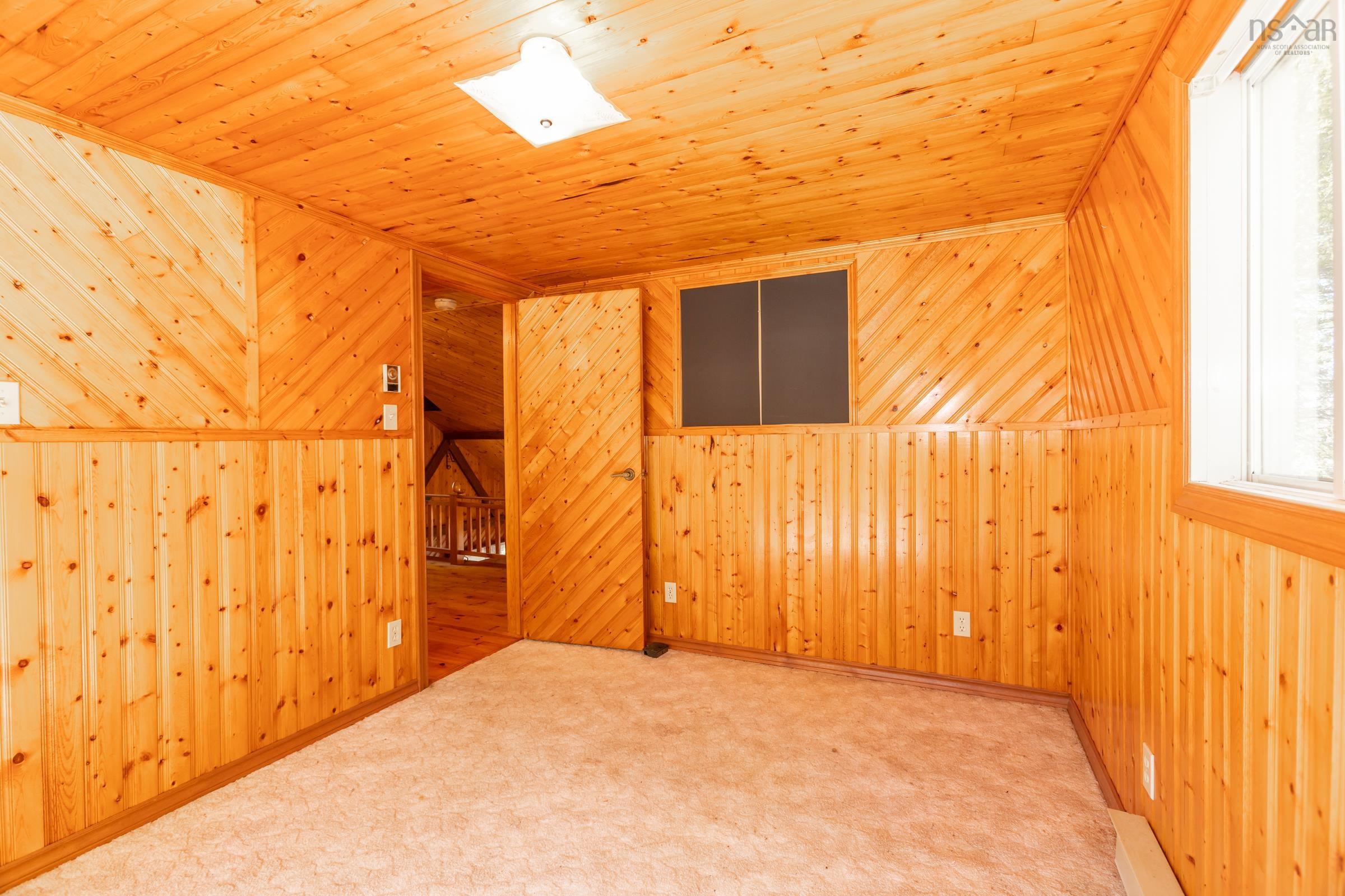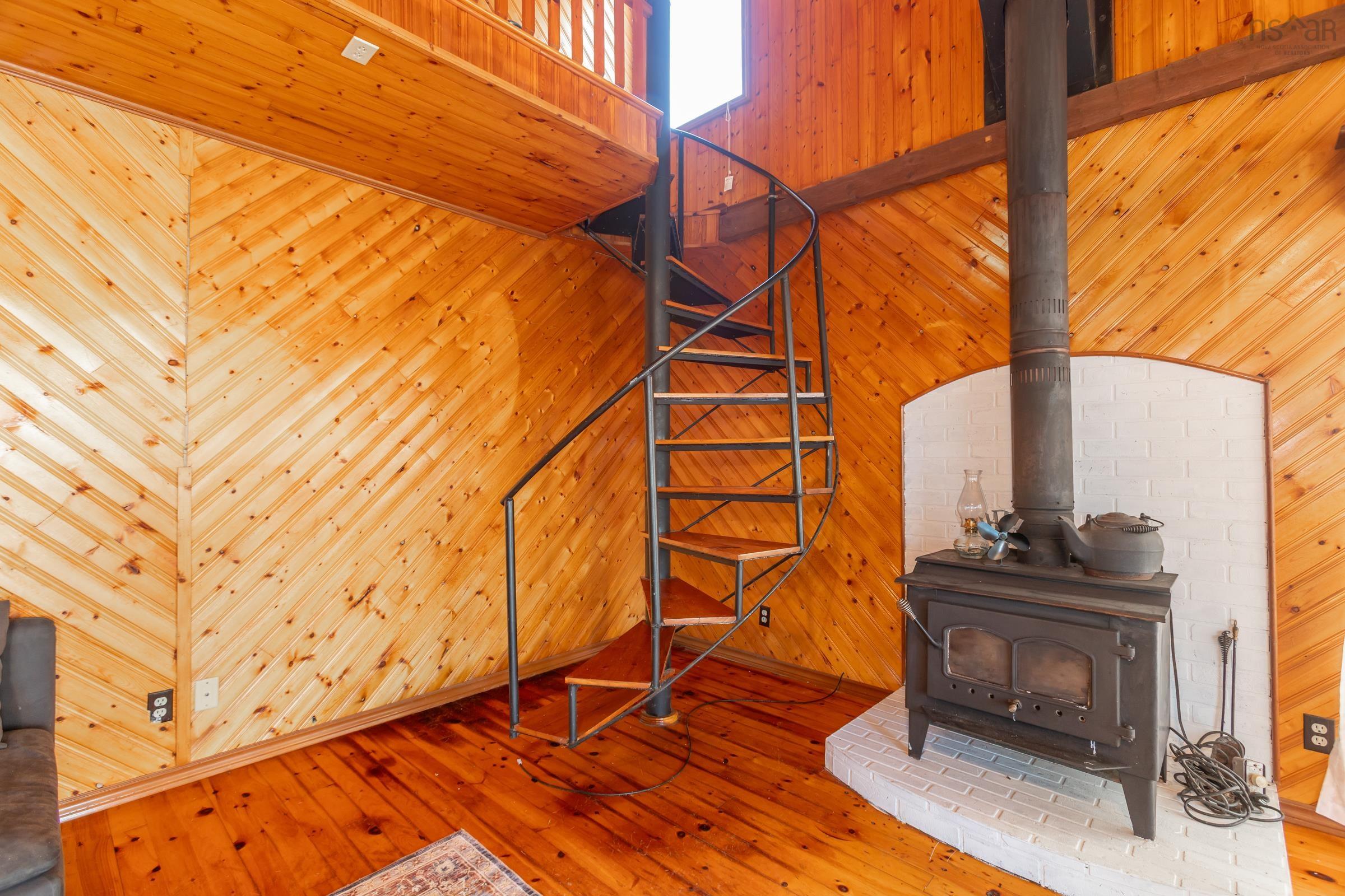 Idyllic riverside dream. Enjoy peace and quiet, privacy, fishing, boating, and swimming in this lovely 3 bedroom chalet. The main floor features a country kitchen, a great room full of windows, a cathedral ceiling and wood stove. Plus a large bedroom, beautiful bathroom and an office. Climb the spiral staircase and find two good size bedrooms and a large storage area. Outside is a full length front deck, a party sized deck overlooking the river and stairs to the water's edge. The yard has a large shed, and great potential for gardens or a garage. Don't miss this one, it won't last long.