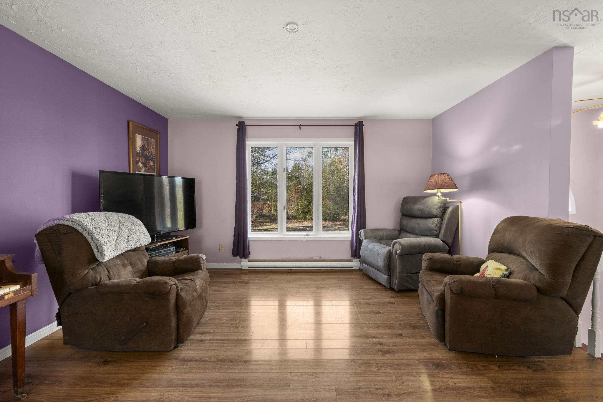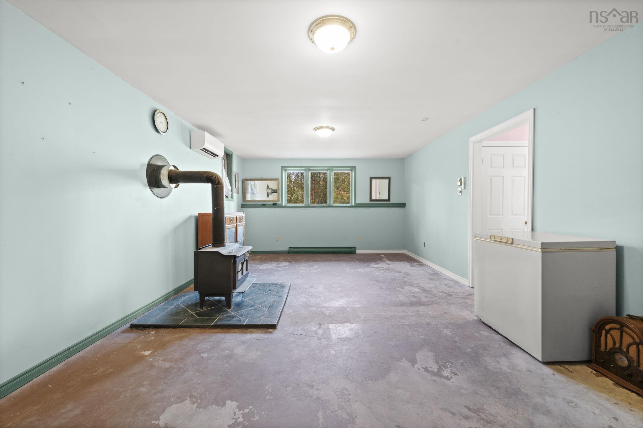 Sitting on just over 5 acres of peaceful countryside, this split-entry home offers space, comfort, and the perfect balance of rural living with easy access to town amenities. The main level features a bright, welcoming living room complete with a heat pump for efficient heating and cooling, a dining area with patio doors leading to a private back deck overlooking the forest, and a functional kitchen ready for your personal touches. Down the hall are two comfortable bedrooms - each with generous double closets - and a full bath. The lower level extends the living space with a large family room warmed by a wood stove and an additional heat pump, plus a dedicated office, laundry room, and a walkout workshop area ideal for hobbies or extra storage. Outdoors, you'll find two sheds - one previously used as a chicken coop (12'4 x 12'4) and another for tools (8'1 x 8'1) - along with existing fencing from a former dog run. A generator with cord is also included for peace of mind. Located on a quiet road just 20 minutes from Bridgewater and just over an hour to Halifax, this property offers the freedom of country living without sacrificing convenience.