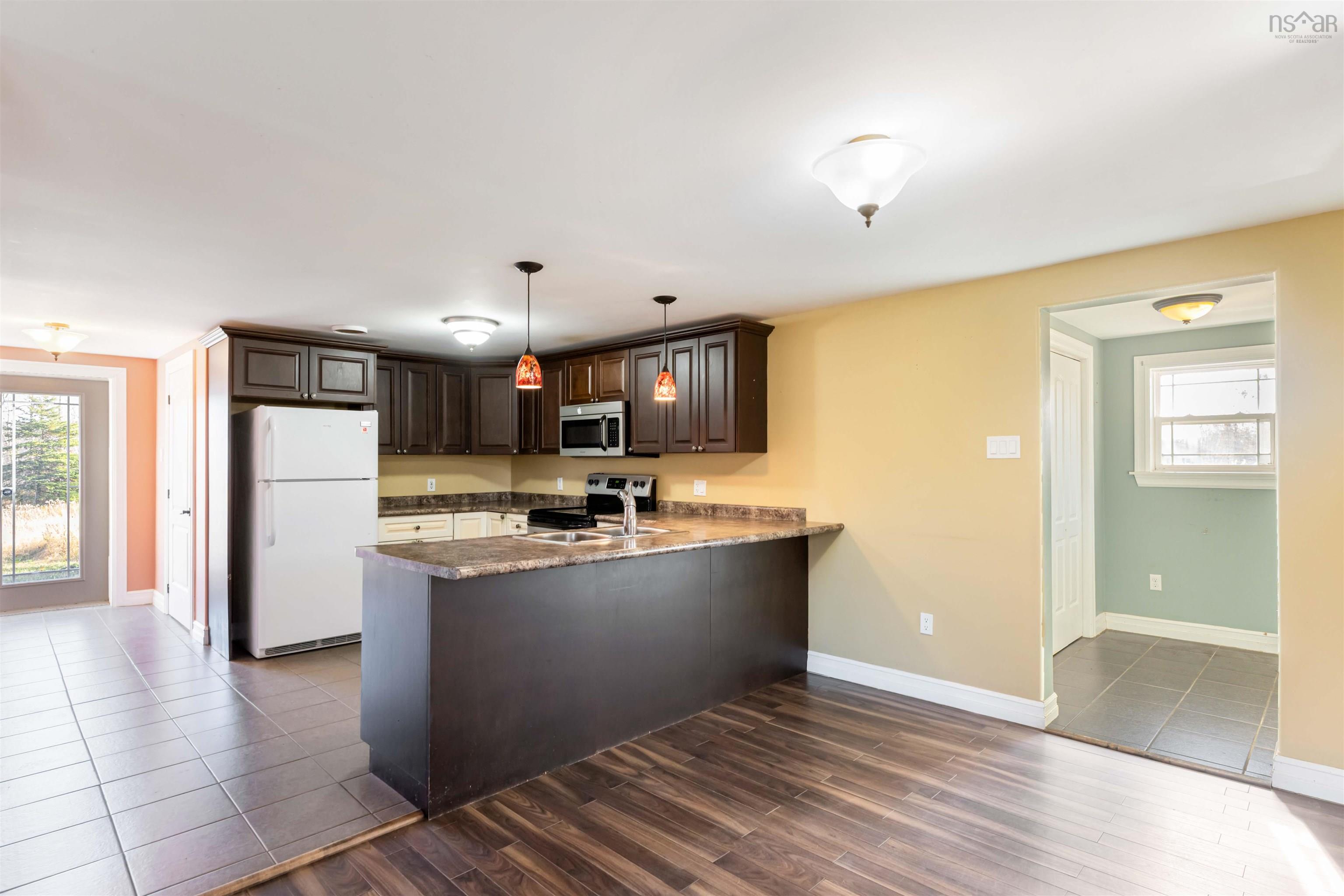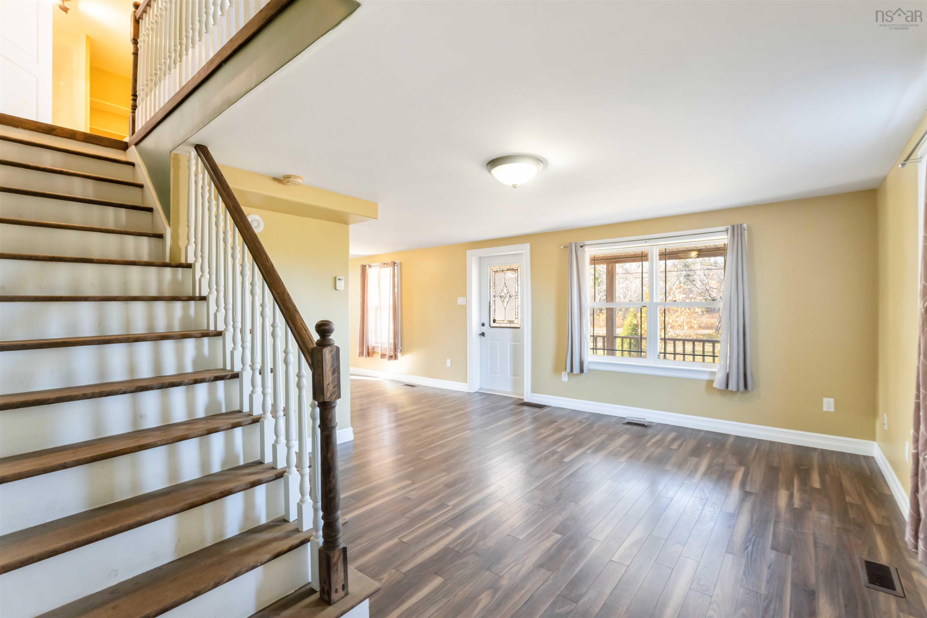 Discover a tranquil retreat just steps from nature and the mature trees of rural Nova Scotia at 11770 Highway 1 in Brickton. This beautifully maintained property offers the perfect blend of comfort, country charm and modern convenience.Step inside and be impressed by the complete 2014 renovation that transformed this home inside and out. Updates included new roof shingles, windows, insulation (R23 walls, R40 ceiling), all-new plumbing, septic, and well, ensuring low-maintenance living for years to come. The interior features tile flooring in the kitchen, entries, and baths, with laminate throughout the remaining rooms, blending durability with style.The main level offers a bright and spacious layout ideal for family living and entertaining, while the upper floor provides three comfortable bedrooms and a full bath. Outside, the property offers ample room for a horse or hobby farming, surrounded by nature and mature trees.Enjoy peaceful evenings on the 7’ x 36’ covered verandah, the perfect spot to relax and take in the countryside views. The backyard backs directly onto the Rails to Trails system, offering easy access to walking, hiking, ATVing, and snowmobiling right from your property.