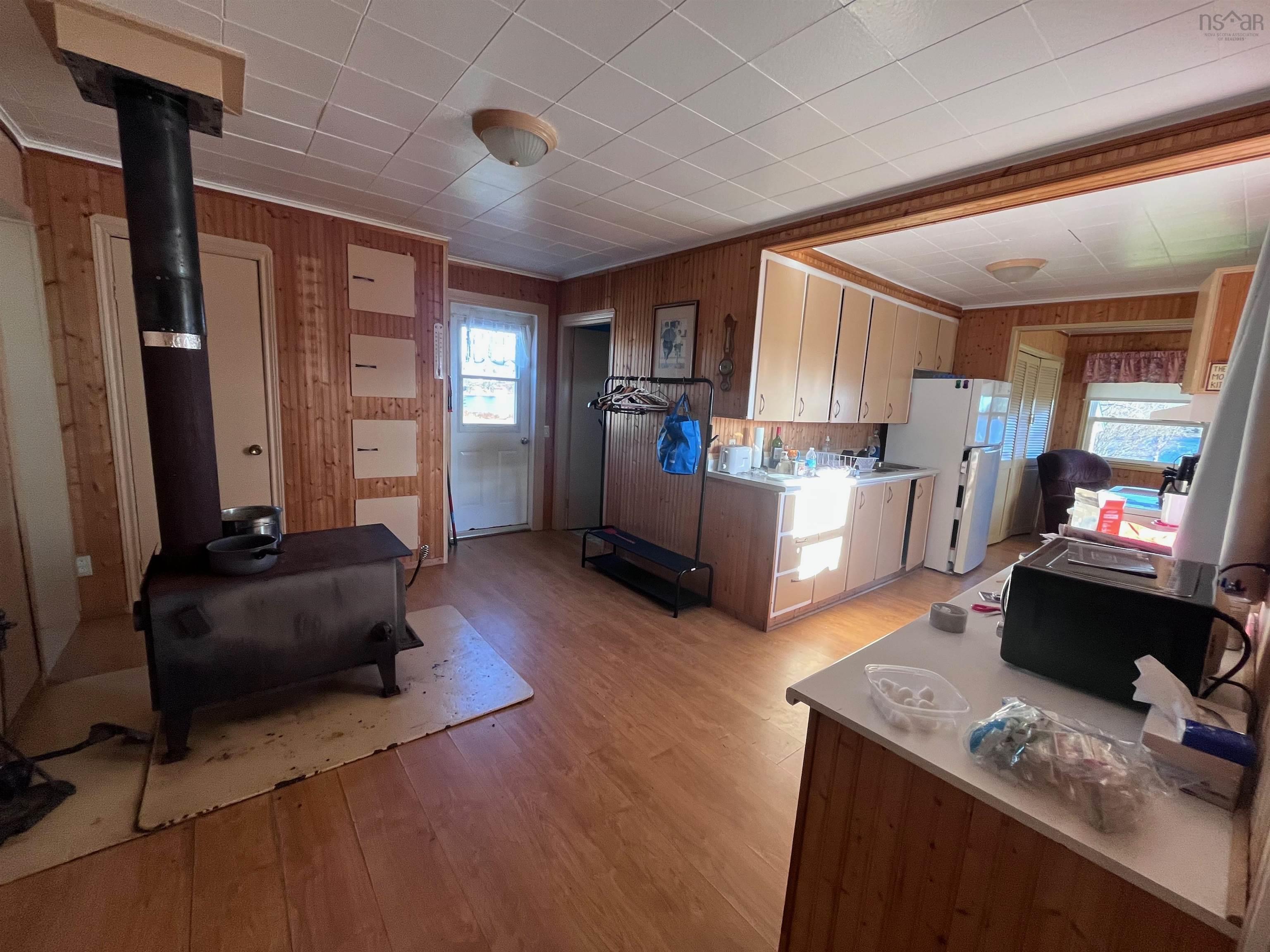 Discover this charming 3-bedroom bungalow nestled along the beautiful New Harbour River on Nova Scotia’s Eastern Shore. The home features a spacious living room filled with natural light, enhanced by French doors and the cozy warmth of a wood stove. The kitchen offers its own wood stove, a comfortable sitting area, and peaceful views of the river—perfect for slow mornings or relaxed evenings. Outside, the 2-acre property includes several useful outbuildings, highlighted by a 26' x 25' garage that makes an ideal workshop or storage space. With 240 feet of riverfront, there’s plenty of room to enjoy the outdoors, paddle, or simply take in the tranquil setting. Conveniently located just 25 minutes from amenities in Guysborough and only 10 minutes to the new École Belle Baie school, this property is well-suited as a year-round family home, a peaceful getaway, or an excellent income opportunity.