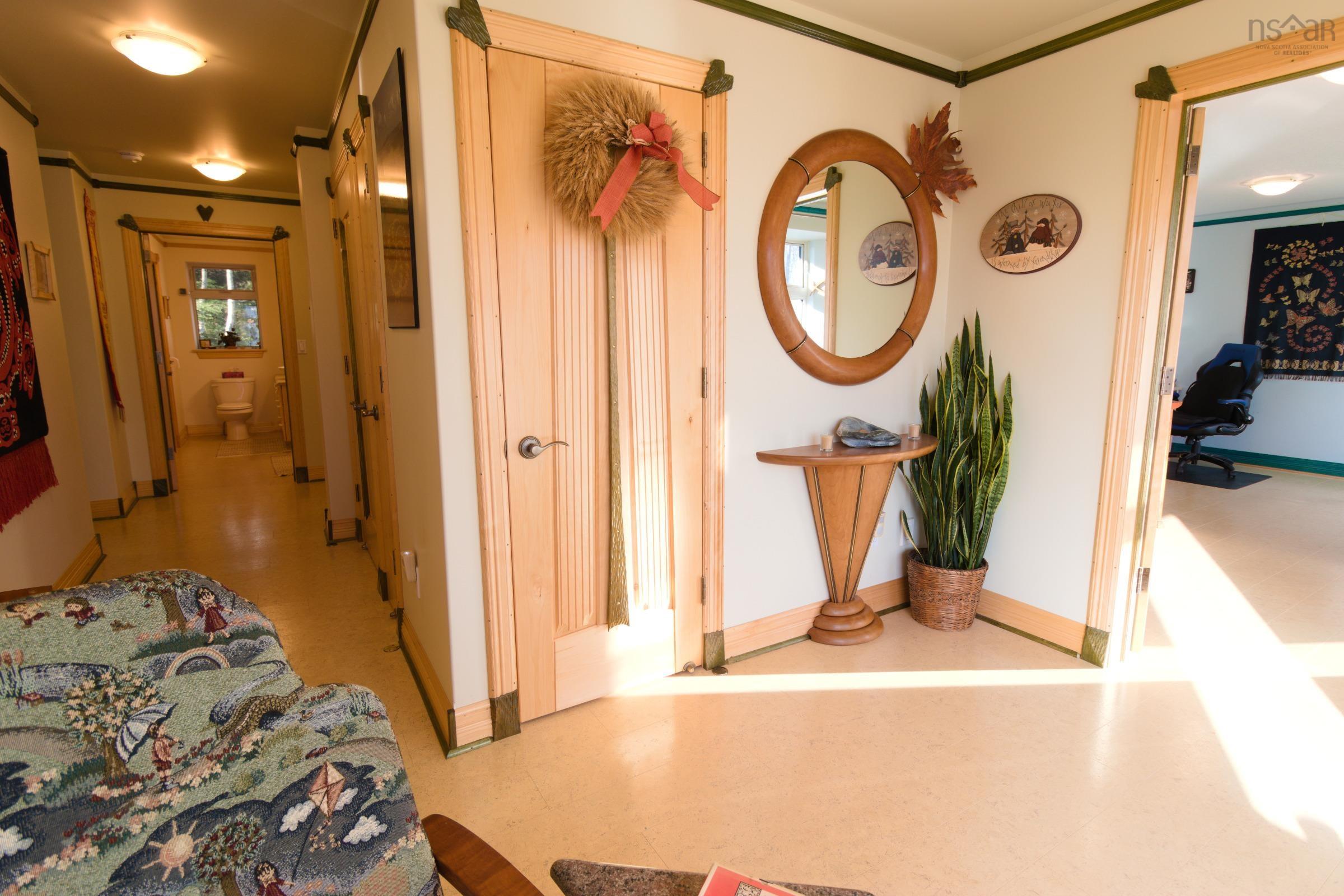 Visit REALTOR® website for additional information. This exceptional custom-built green home is designed for comfort, efficiency, and accessibility at its core. Set on a private, wooded 5-acre lot just 15 minutes from Kentville, this executive bungalow blends sustainable living with remarkable views of the surrounding forest, the Valley below, and spectacular sunrises and sunsets. Purposefully designed for wheelchair and mobility needs, the home features passive solar construction with south-facing triple-pane windows, extended roof overhangs, and high insulation levels that provide year-round comfort and impressively low energy costs. Inside, the bright and accessible layout offers 2 bedrooms a versatile room ideal for office, studio, or guest spaces. A large south-facing bonus room creates a beautiful second living area, perfect for a library, yoga room, or quiet retreat, while the spacious primary suite includes generous storage and a luxurious 6-piece ensuite. Custom cabinetry, doors, and trim crafted from Nova Scotia hardwoods bring warmth and character throughout, and a newly installed ductless heat pump (2025) further enhances efficiency. The property also includes an attached garage and carport, a large attached woodworking shop with a private entrance suitable for creative pursuits or a professional office, a dedicated cold/preserves room, Cape Cod siding, a durable steel roof, a fenced organic garden, and a serene pond. With a little clearing, the land could easily be transformed into a charming hobby farm. 516 Burgess Mountain Road offers exceptional accessibility along with a rare opportunity to embrace eco-conscious living in a tranquil, private setting—an ideal retreat for those seeking sustainability, comfort, and connection with nature.