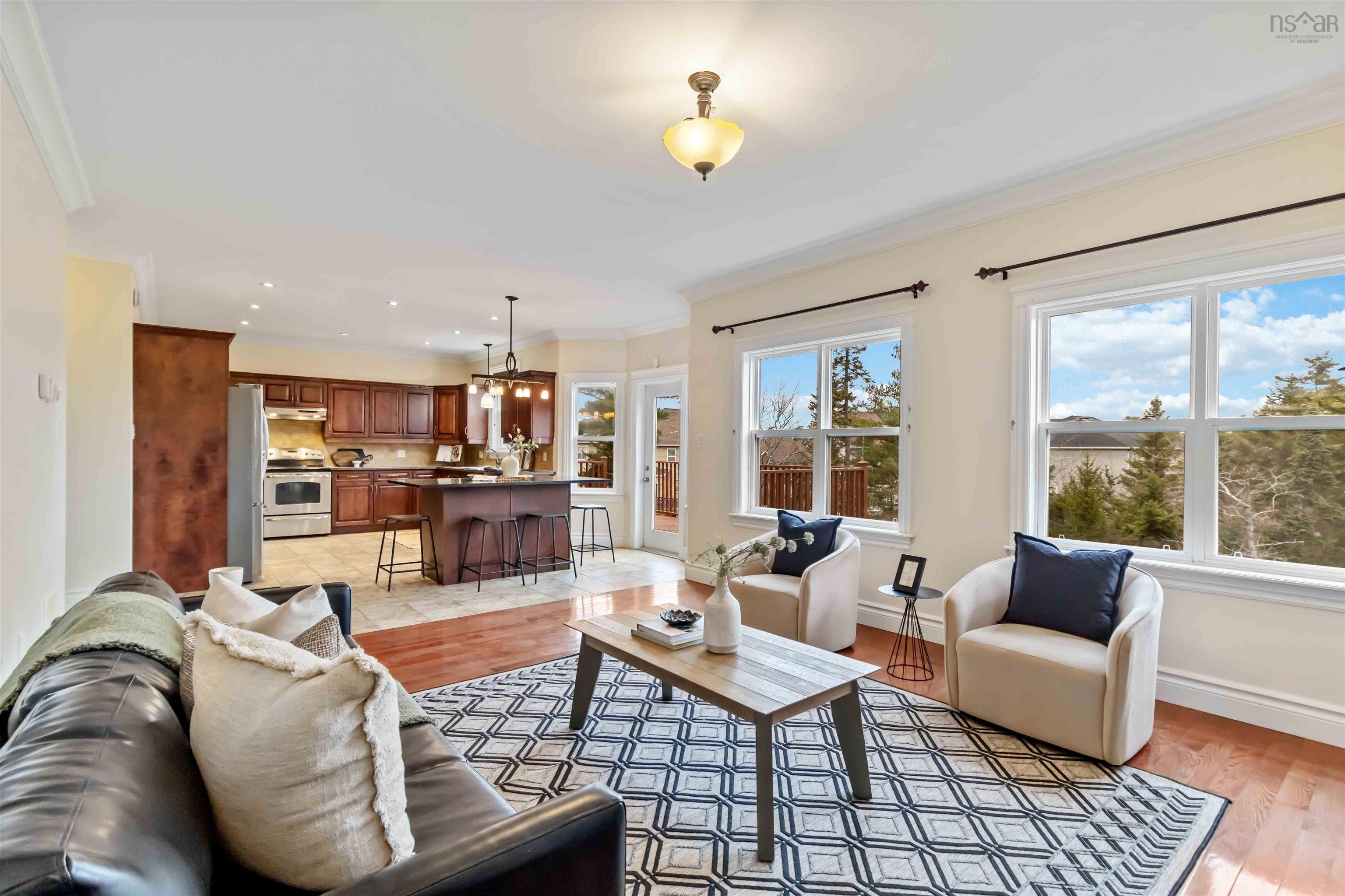 Welcome to 167 Ravines Drive—an elegant, expansive 5-bedroom, 4-bathroom home in one of Bedford’s most sought-after neighbourhoods. Built in 2008 and offering nearly 3,500 sq. ft. of finished living space, this three-level home blends timeless finishes with thoughtful upgrades, including fresh paint throughout, a ducted heat pump, and a 2020 hot water tank. Step inside to a warm and inviting main floor featuring hardwood flooring, a spacious open-concept kitchen and living room, and a cozy propane fireplace. A formal dining room and a bright sitting room create the perfect layout for both family living and entertaining. Hardwood stairs lead to the upper level, where you’ll find four generous bedrooms and two full bathrooms, including a well-appointed primary suite with a large walk-in closet and an ensuite bathroom featuring a soaker tub. To top it off, you have an upper level laundry room on this second level so no need to walk downstairs to do your laundry! With plenty of space for a growing family, this level is designed for comfort and functionality. The walkout basement adds even more living space, featuring a media room, a spacious fifth bedroom, and a full bathroom—ideal for guests, teens, or extended family. Outside, the property backs onto a peaceful green belt, offering added privacy and a natural backdrop. The attractive brick exterior and the attached double garage complete the home’s strong curb appeal. Located on a quiet, established street in The Ravines—a community known for its beautiful homes, excellent schools, and family-friendly atmosphere—this is a rare opportunity to own a well-maintained, move-in-ready home in a premium Bedford location.