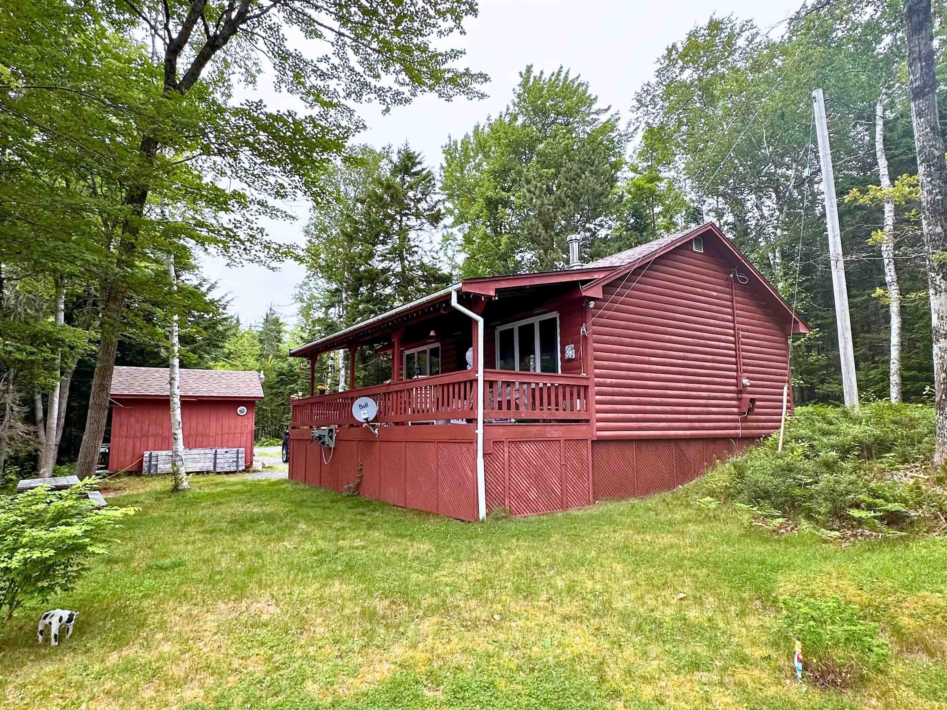 Tucked away in a quiet, serene setting above the shores of Dean Lake, this charming 2-bedroom, 1-bath log-sided cabin offers the perfect blend of rustic comfort and natural beauty. Set on 1.93 private, wooded acres with over 275 feet of lake frontage, this well-built retreat is your opportunity to embrace the peaceful rhythm of lakeside living. A huge covered deck to sit back, relax, take in the water views—ideal for morning coffee, outdoor dining, or evenings spent listening to the loons call. Dean Lake is great for canoeing, kayaking, & fishing. Paddle downstream to McGowan Lake or explore upriver to Albany New—both routes offering a true back-to-nature experience right from your shoreline. A wired shed with attached carport, provides ample storage for ATVs, boats, & other outdoor gear. There's also a wood shed, generator shed & even though not needed the original working privy(wired with lights), a nod to the property’s history. Located far from the hustle and bustle, this property is a haven for wildlife watchers, outdoor enthusiasts, or anyone seeking quiet privacy with access to nature at its finest.