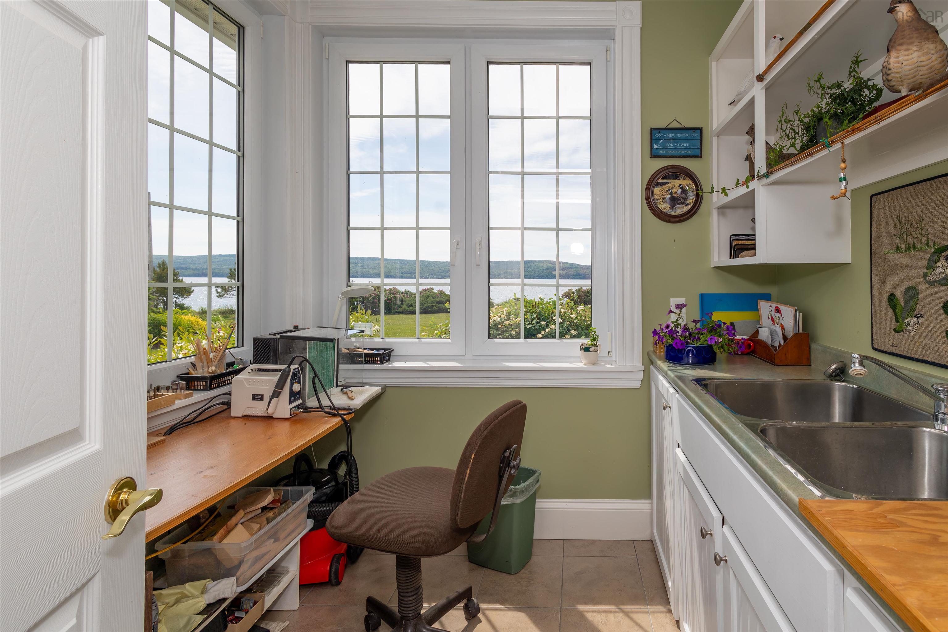 WATERFRONT RETREAT!! FOREIGN BUYERS WELCOME!( $1.15 Million US as of January 2026) This Cape Breton estate is without a doubt one of the most outstanding properties located on the famous Bras d'Or Lake boasting 540 feet of prime level waterfrontage! Three minutes to the picturesque village of Baddeck with shopping, fine restaurants, a major hospital, Bell Bay 18 hole golf course, a large marina and the Graham Bell museum. A one hour scenic drive to Inverness will take you to the world famous golf courses at Cabot Cliffs & Cabot Links. Some of the homes outstanding features include a stunning 23 foot high great room with expansive views of the Lake, propane fireplace and an Aladdin electric lift brass chandelier! Geothermal furnaces for heating & cooling; wake up to lake views in your primary main floor bedroom with its 5 piece bath, 2 walk-in closets & a fireplace. A main floor private office, formal dining room and a large modern kitchen with 2023 high end appliances plus a dining area with lake views and a fireplace; conveniently located off the kitchen is a 3pc bath and laundry room. Accessed from the kitchen is the 26x26 attached garage,100% finished including ceramic floors, makes for an awesome party room or children's play-land! (of course cars are allowed too!) On the second floor there are two private guest bedrooms with bathrooms, a den, plus a kitchenette leading to a private balcony with expansive lake views. Also on the 2nd floor there are loads of closets and a private family, games room or a 4th bedroom. Down at your level private beach area you have your own wharf and boat mooring. A separate 1600 square foot barn is on the property for all your toys or extra vehicles, a walk up loft and a main floor heated workshop area. A private viewing is a must if you are considering building to appreciate that you can't replace all that this property has to offer for the listed price!