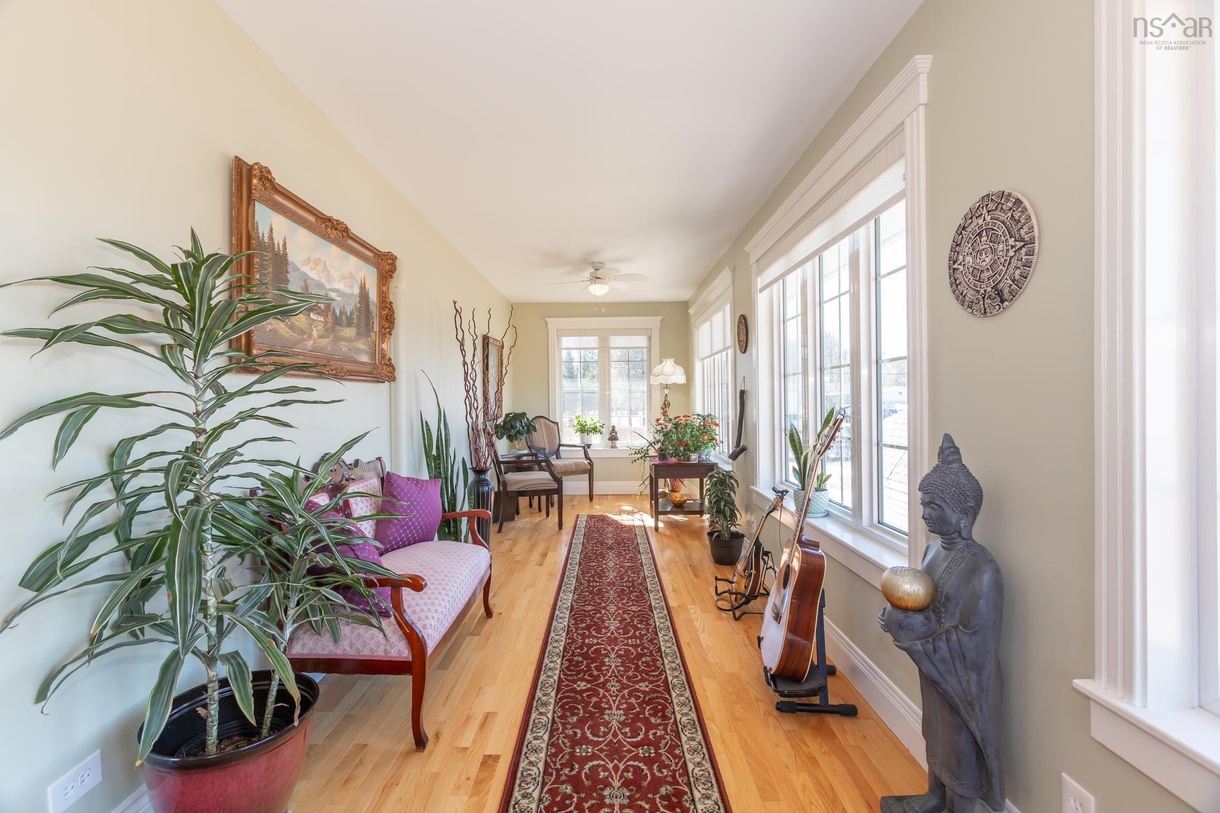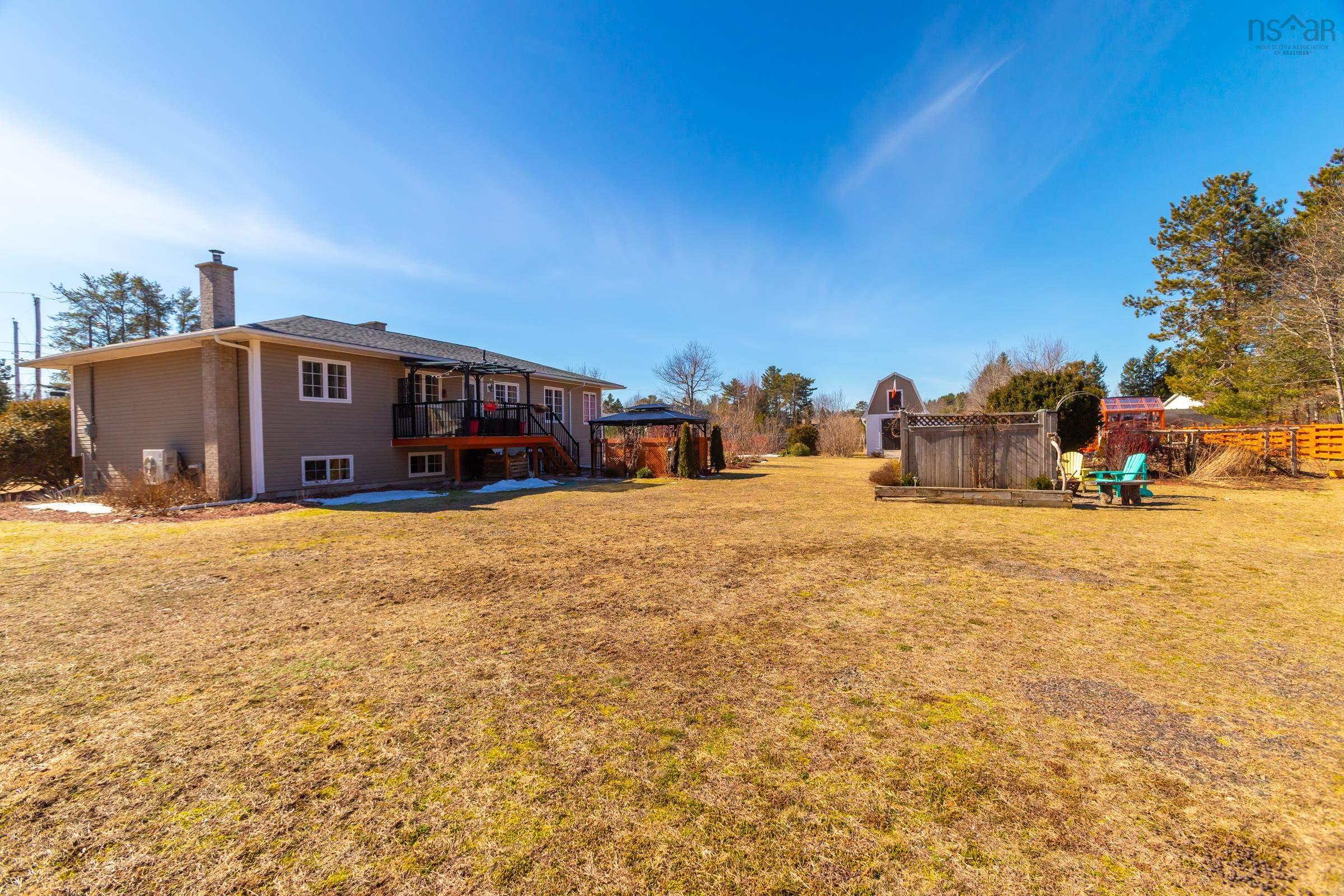 Luxury, space, and resort-style outdoor living come together in this exceptional family home. Located in the sought-after Jefferson Pines subdivision, this beautifully maintained 5-bedroom, 2-bathroom home sits on nearly an acre of landscaped property, just minutes from Greenwood and 14 Wing Greenwood—an ideal setting for families looking for space and comfort. The bright, open main level features a modern kitchen, spacious living and dining areas, and well-sized bedrooms. The fully finished walkout basement is designed for entertaining, offering two large gathering areas ideal for hosting, relaxing, or creating separate spaces for media, games, home office or guests. Year-round comfort is ensured with three energy-efficient heat pumps, a wood stove, and an electric fireplace. Outside, enjoy a private backyard retreat with a hot tub under a covered gazebo, large entertaining deck, lush gardens, greenhouse, garden shed, and an impressive two-storey barn offering endless possibilities. A rare blend of elegance, space, and lifestyle in one of Meadowvale’s most desirable neighbourhoods.