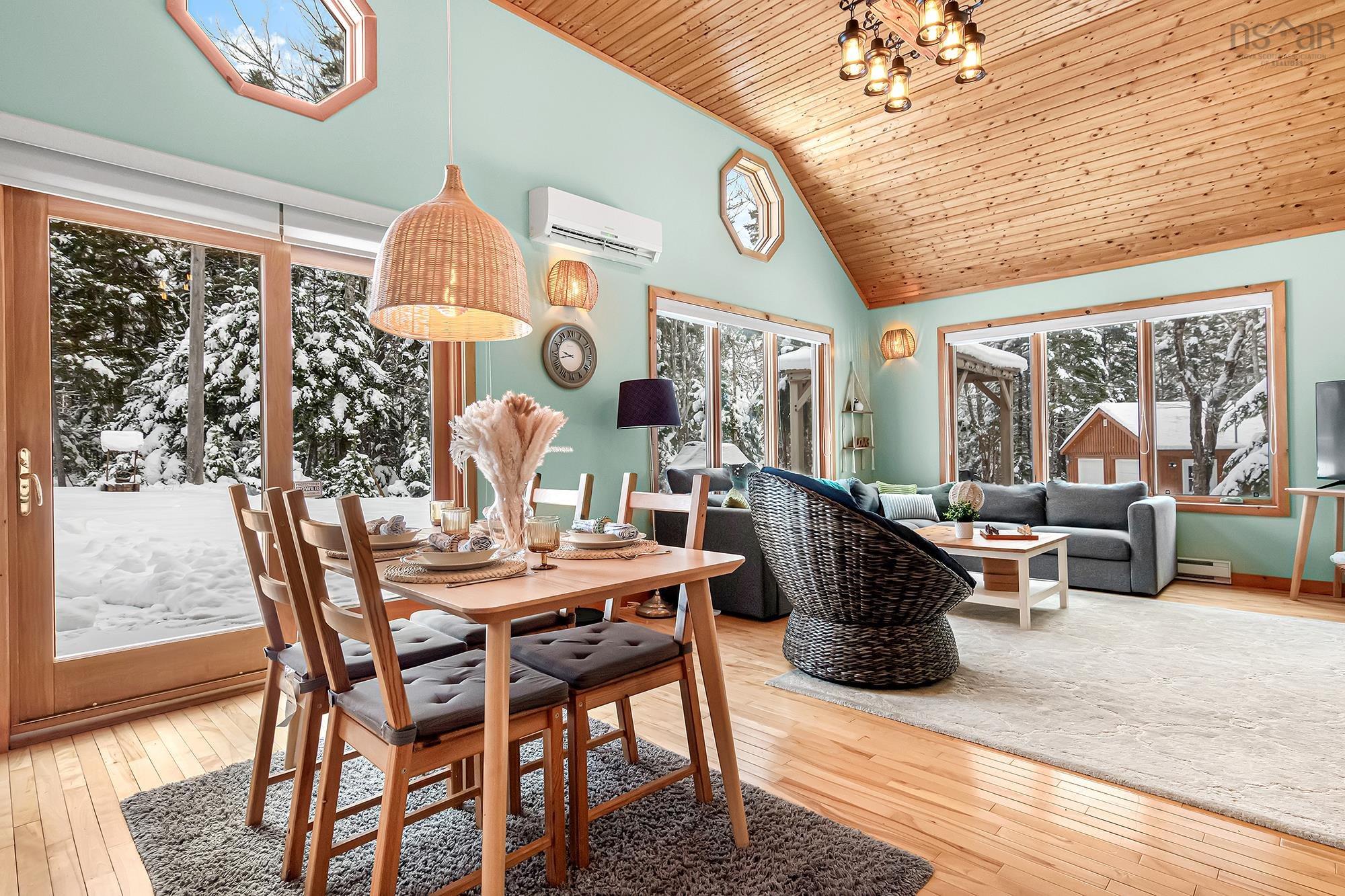 Welcome to cottage country living in this highly sought-after community—so desirable that many choose to call it home year-round. This well-appointed three-bedroom, slab-on-grade bungalow offers exceptional versatility, whether you are seeking a full-time residence or a spacious seasonal retreat. The bright, open-concept living and kitchen area is highlighted by beautiful vaulted pine ceilings, creating a warm and inviting atmosphere. Electric heat is efficiently supplemented by a ductless mini-split system providing both heating and air conditioning for year-round comfort. Outdoor living is enhanced by two newly constructed decks, offering ample space for entertaining or relaxing, along with a private hot tub—perfect for unwinding after a day of outdoor adventure. Additional features include a detached, wired double-car garage, a 10’ x 14’ storage shed, and convenient access to the popular Falls Lake—ideal for swimming, paddling, and outdoor enjoyment. Located just 20 minutes from Windsor, the area offers an abundance of recreational opportunities, including lakes and streams, provincial parks, hiking trails, and nearby skiing. This is an excellent opportunity to enjoy the best of relaxed living with easy access to amenities. Book your private viewing today.