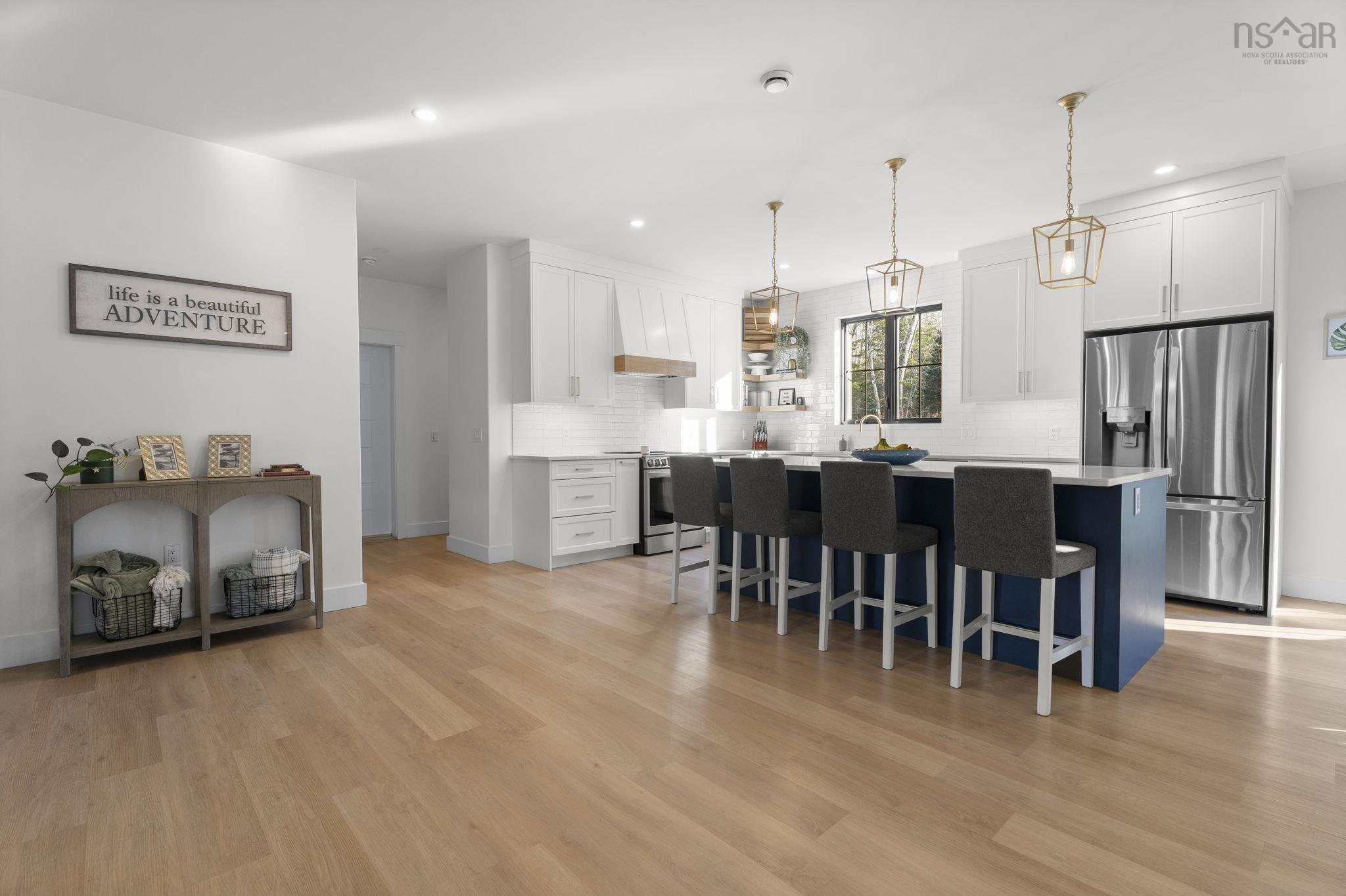 Welcome to 106 Edward Drive — a modern masterpiece where craftsmanship, comfort, and sustainability meet. Tucked away on a quiet private lane just steps from Grand Lake, this custom-built home offers the serenity of lakeside living with refined contemporary style. Every detail, from the hand-hewn 200-year-old fireplace mantel to the home’s impressive EnerGuide rating of 62 GJ/a (66.6% better than code), showcases quality and innovation. Inside, radiant in-floor heat flows beneath open, light-filled living spaces framed by south-facing Low-E Argon windows. The chef’s kitchen is both beautiful and functional, featuring quartz countertops, a custom range hood, LG appliances, a plumbed RO water fridge, and a walk-in pantry with an Acacia Chevron butcher block. The dining and living areas connect seamlessly, ideal for gatherings or quiet nights in. Upstairs, each bedroom offers a custom walk-in closet and plenty of natural light. The luxurious primary suite features a 14-foot shower with dual rain heads, a deep soaking tub, and a separate water closet.Outdoors, the nearly 18,000 sq. ft. treed lot includes a stamped concrete patio (14x25), electrical rough-in for a hot tub or pool, and a 960 sq. ft. attached garage—perfect for vehicles, storage, or a workshop. Built for efficiency and comfort, the home includes a ductless heat pump on the main level, ducted system upstairs, and solar-ready roofing (up to 23 kW potential). With private deeded lake access just 450 metres away, 106 Edward Drive is more than a home—it’s a forward-thinking retreat designed for modern living.
