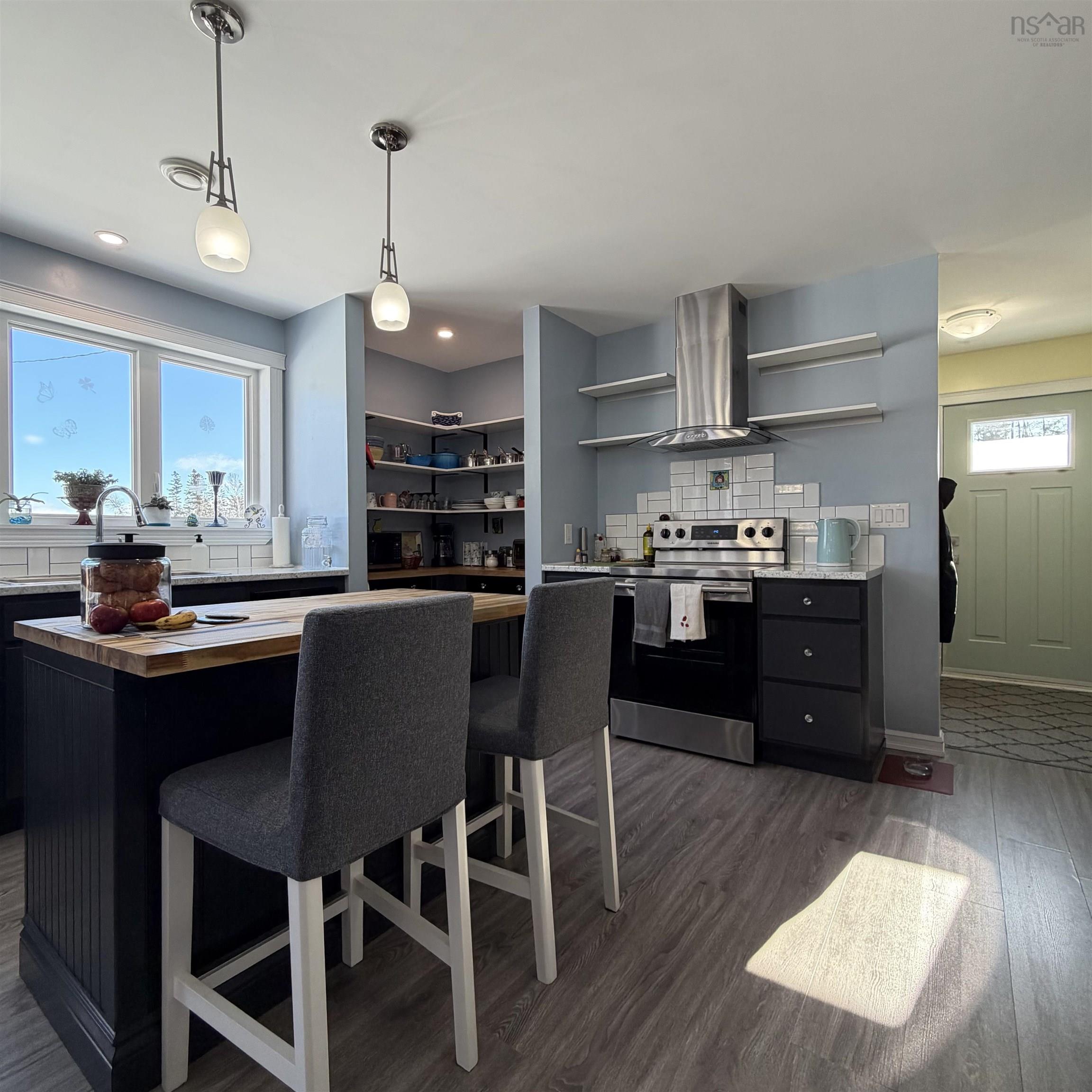 Completed in 2021, this 2 bedroom, 2 bath home is set on approximately 2.2 acres of peaceful countryside, offering space to enjoy the outdoors while still being within a convenient drive to local services and Masstown Market. The property features a pond and a welcoming outdoor setup with a deck that leads to a covered pavilion, creating a comfortable place to relax or entertain. Your 24x24 garage is heated by a heat pump and has plenty of room to work on your car or hobby, or just store extra things around the home. Inside, the layout is bright and practical, with an open main living area designed for everyday living. The kitchen includes a central island and flows easily into the dining and living spaces. The living room is accented with built-in shelving and an electric fireplace for added comfort. A side entry provides access near the laundry area, a helpful feature for busy households. The primary bedroom looks out over the backyard and includes its own ensuite bath with a tiled walk-in shower. A second bedroom and a full main bathroom offer flexibility for family, guests, or workspace needs. Generator panel for power outages will keep your home running, a newer front deck, and large shed in the rear of the property are additional highlights. This property offers the benefits of modern construction and country living.