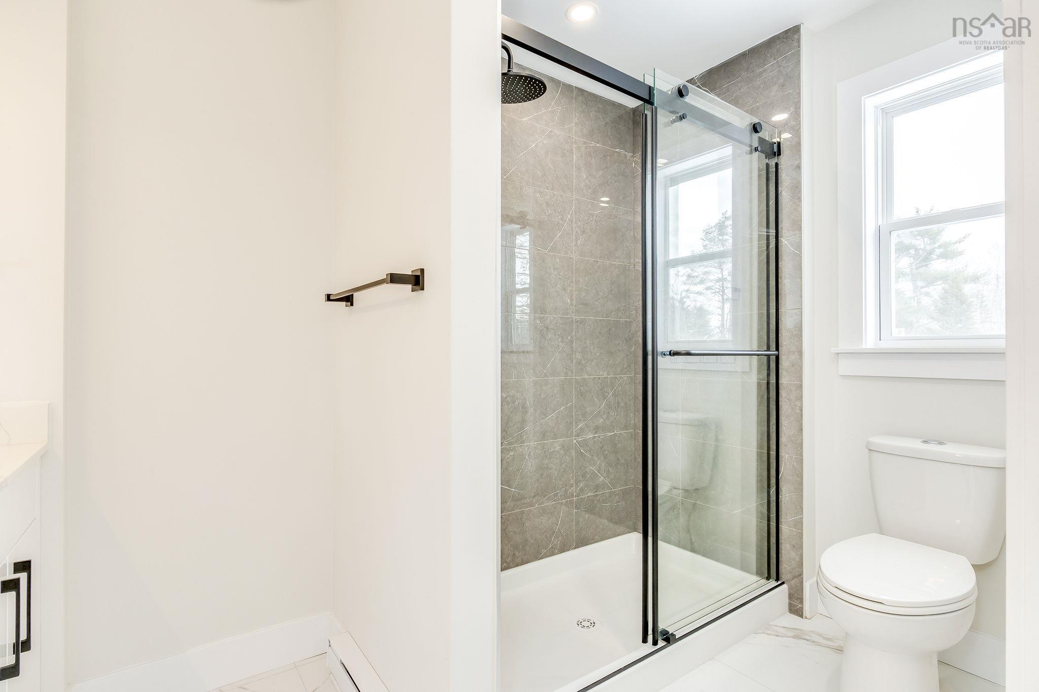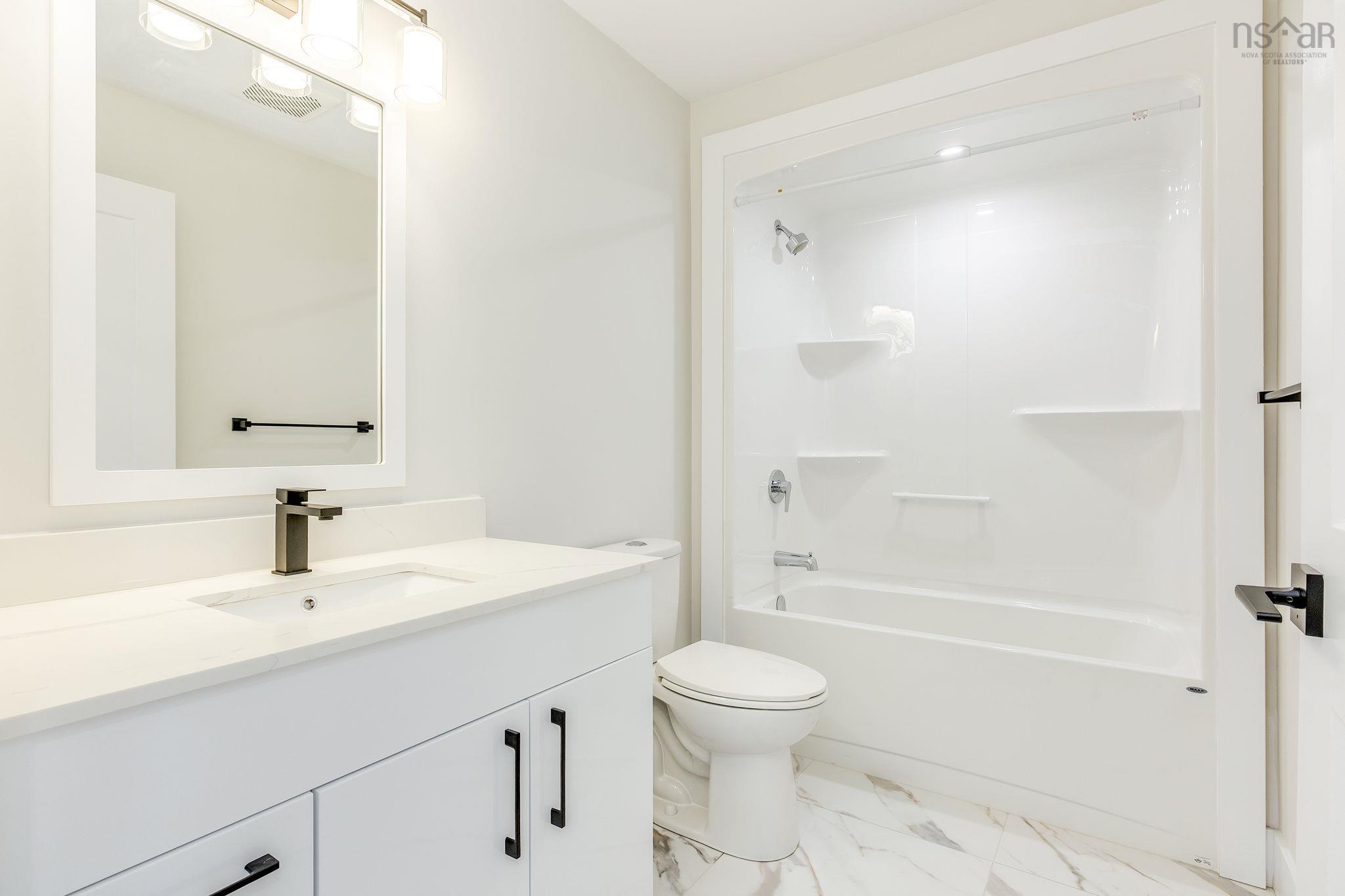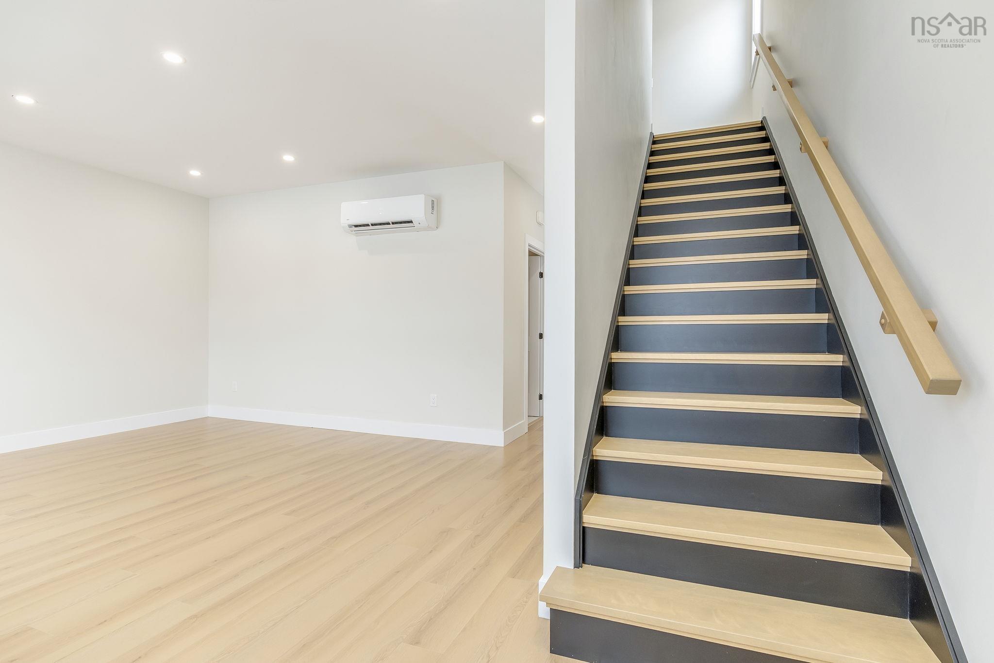 This quality-built 2-storey semi-detached home is located in a quiet area of Elmsdale, just 20 minutes from the city. The main level features a spacious living room and an eat-in kitchen with island, built-in pantry, and quartz countertops, plus a 2pc powder room. Upstairs offers a large primary bedroom with ensuite, two additional bedrooms, and a 4pc bath. The lower level includes a single-car garage, rec room, and 4pc bath—perfect for guests or extended family. Heated with electric baseboard and a ductless heat pump, with laminate flooring throughout. Close to schools, shopping, recreation, and all Elmsdale amenities.