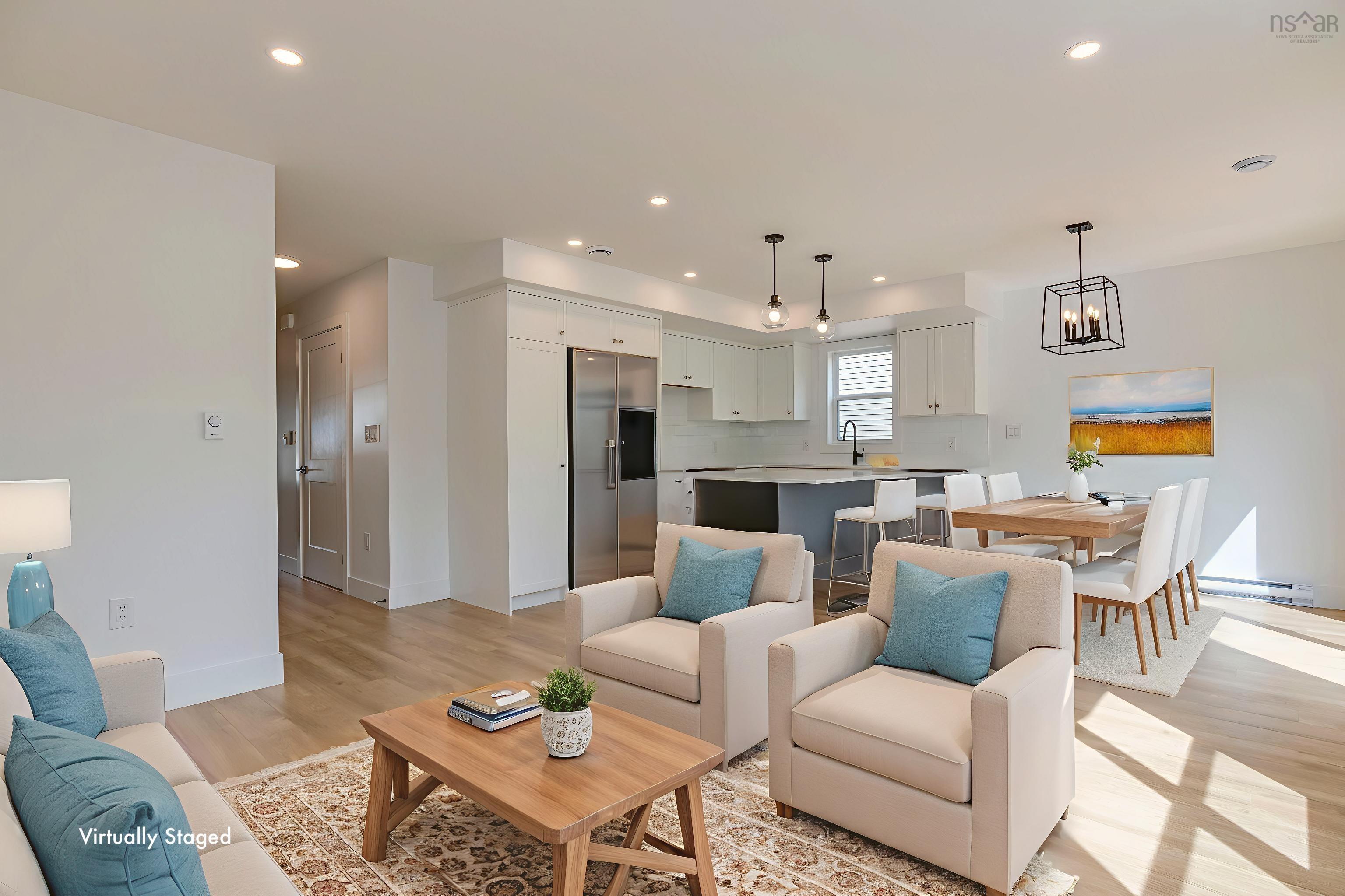 Move in ready! Meet the "Katie" model located in Carriagewood Estates, Beaver Bank Halifax Nova Scotia. This thoughtfully designed 3-bedroom, 4-bathroom 2-storey home, finished on all three levels and packed with incredible value. With nearly 2,000 sq/ft of living space, this home is now ready! This home starts at $629,900, this model includes upgrades such as flooring, trim and more! Finished on all three levels. The main level includes a bright, open-concept layout with a powder room discreetly placed off the entryway. Upstairs, you'll find the three bedrooms, a full main bathroom, and a primary bedroom with an ensuite bathroom & walk-in closet. The walk-out lower level offers a versatile recreation room, a second powder room, and ample storage. Situated on a city-serviced lot (no well or septic to maintain) and backing onto plenty of greenery, this home is located just minutes from Lower Sackville, Bedford Commons, and Highway 102 access. This is an incredible opportunity to own a quality new build in a hidden gem of a community.