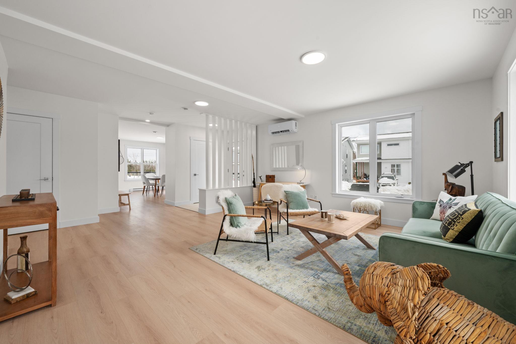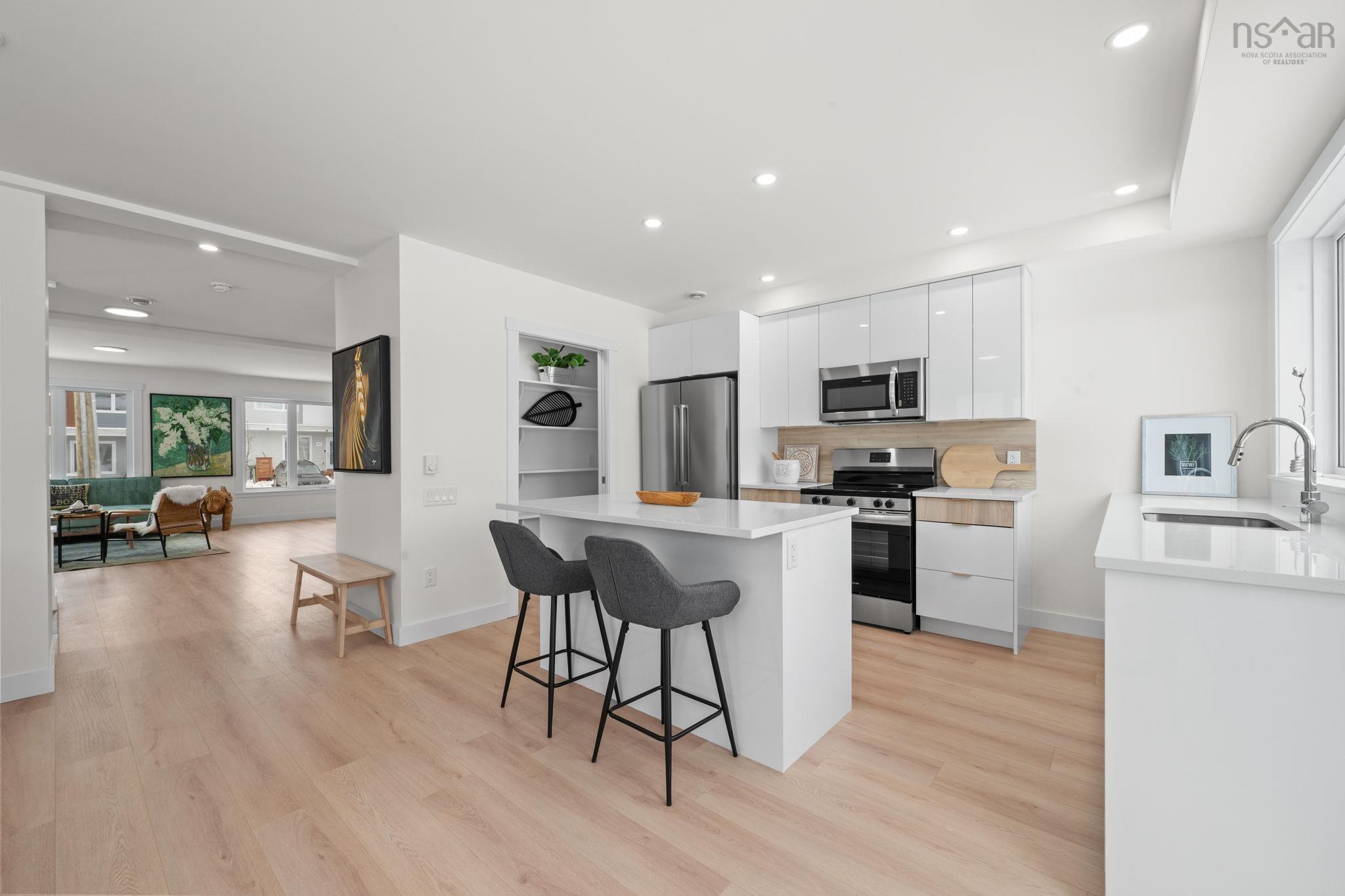 Corner lot with private side entrance and double paved driveway! This very large, super bright, brand new semi-detached home is 2520 sqft. The unique corner lot gives the appearance of being a large detached home from the street. Enter the inviting front porch to a lovely foyer with designer tile flooring. Large kitchen and dining area feature exceptionally large windows for a welcoming space for the family to gather in. White gloss cabinets with wood accent details & quartz countertops, a massive fixed kitchen window bringing in so much light, a walk in pantry and fabulous island to gather around make this a chef's & entertainer's dream. The living room is a grand and a discrete powder room is ideal for guests. Comfort of a ductless heat pump on this level. Up the solid hardwood stairs you'll find a large master retreat with walk in closet and ensuite featuring a double vanity and shower. Two additional nice sized bedrooms up, upper floor laundry, and a 4 pc main bath complete this level. All hardsurface countertops in bathrooms. The basement is finished with a rec room that walks out to the yard, wet bar, good sized separate den/bedroom, and full bath. Carpet free with quality ceramic and laminate floors throughout. Located in the fabulous new Birchdale subdivision on the edge of Halifax/Herring Cove near the supervised beach at Long Pond and within 20 minutes to downtown Halifax. Come visit the furnished model home! Tremendous value in these Provident homes. Additional lots & layouts to choose from. Photos and Virtual tour are of the same layout for reference as facsimile.