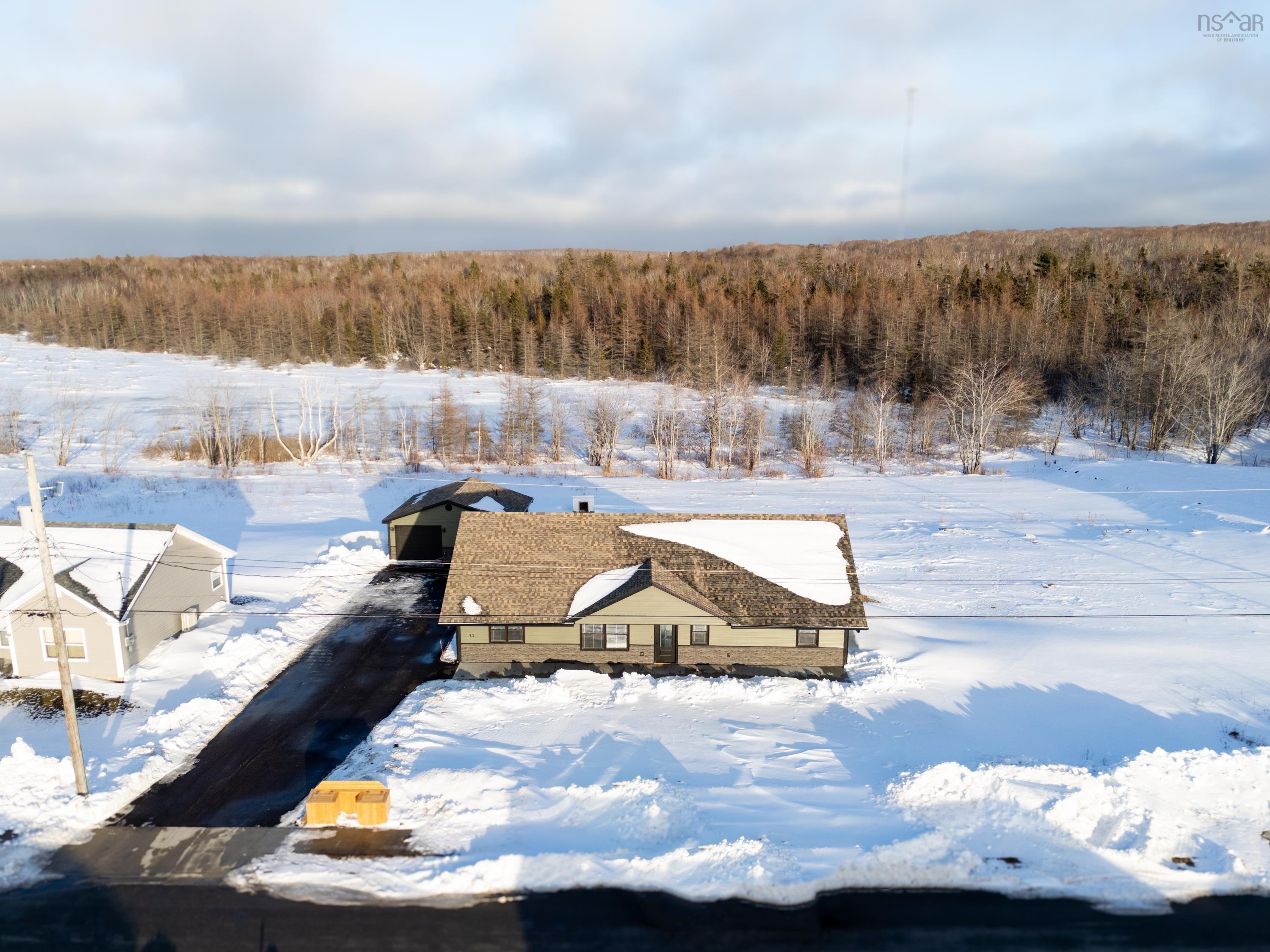 Don’t miss this rare opportunity to own a newly constructed home in one of Sydney’s fastest growing subdivisions! Located at 73 Michael Street, this 1,904 sq ft home is just minutes from all amenities, and within walking distance to shopping areas and bus routes. Step inside to a bright, open concept living and dining area highlighted by soaring 12-foot ceilings and a heat pump for year round comfort. The modern kitchen impresses with contemporary cabinetry, a walk-in pantry, breakfast bar, recessed lighting, and plenty of workspace. Enjoy electric in-floor heating throughout the entire home. The main level also features a stylish 4pc bath with a double vanity, a laundry room tucked behind a custom barn door, and four spacious bedrooms. The generously sized primary suite offers a walk-in closet, private ensuite, and its own heat pump for added comfort. Outside, the landscaped yard showcases decorative stonework on both the home and the impressive detached garage. The fully finished garage includes a 3pc bath and laundry, making it ideal for additional living space. Front and rear concrete patios plus a double-wide paved driveway complete the package. Call your Realtor today for more details and to book your showing.