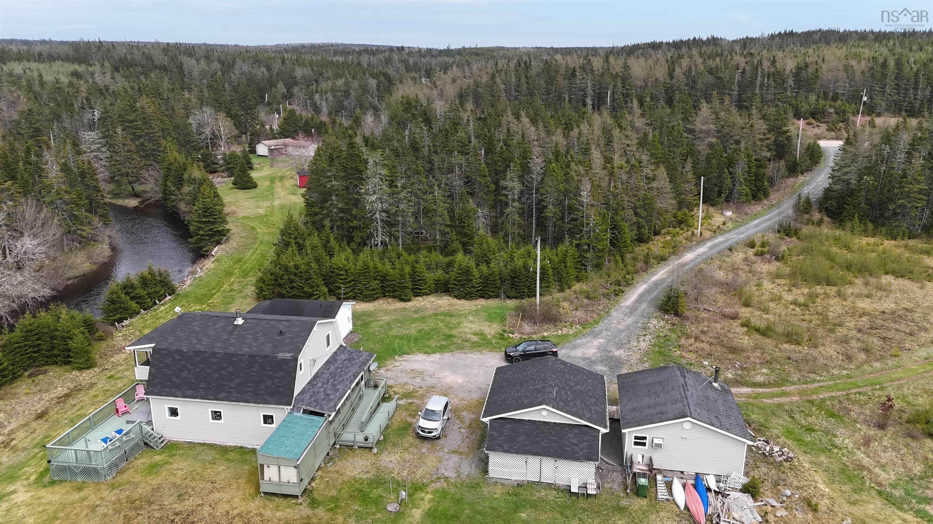 Discover this beautifully maintained two-story home on almost five acres along the scenic Grand River. Offering privacy, comfort, and natural beauty, this property is ideal for family living, outdoor enthusiasts, or those seeking a peaceful retreat. The home is highly accessible, featuring a ramp, wide doorways, and an accessible shower. Inside, the open-concept kitchen and living room with a cozy wood stove create a warm, inviting space, complemented by a generous pantry. The main floor includes two bedrooms and a large bathroom, while the second floor boasts a versatile large room perfect as a primary bedroom or recreation space, a 3-piece bathroom, and a balcony overlooking the river. Outside, enjoy expansive decks with a hot tub overlooking the water, along with two screened porches for shaded outdoor living. The manicured yard attracts many birds, creating a peaceful, nature-filled setting, and a trout-stocked fish pond adds to the tranquility. With direct river access, you can enjoy kayaking or relaxing river walks. The property features two detached garages; one is a true retreat with a bar, woodstove, and a sauna—great for entertaining or hobbies. A charming fully-equipped one-bedroom cottage, once a highly-rated 3-star rental, offers additional space for guests, family, or income, with its own private deck and sunroom and cozy living area. This estate combines country charm with modern comforts and stunning natural surroundings. Don’t miss this rare opportunity—contact an agent today to schedule a private tour.