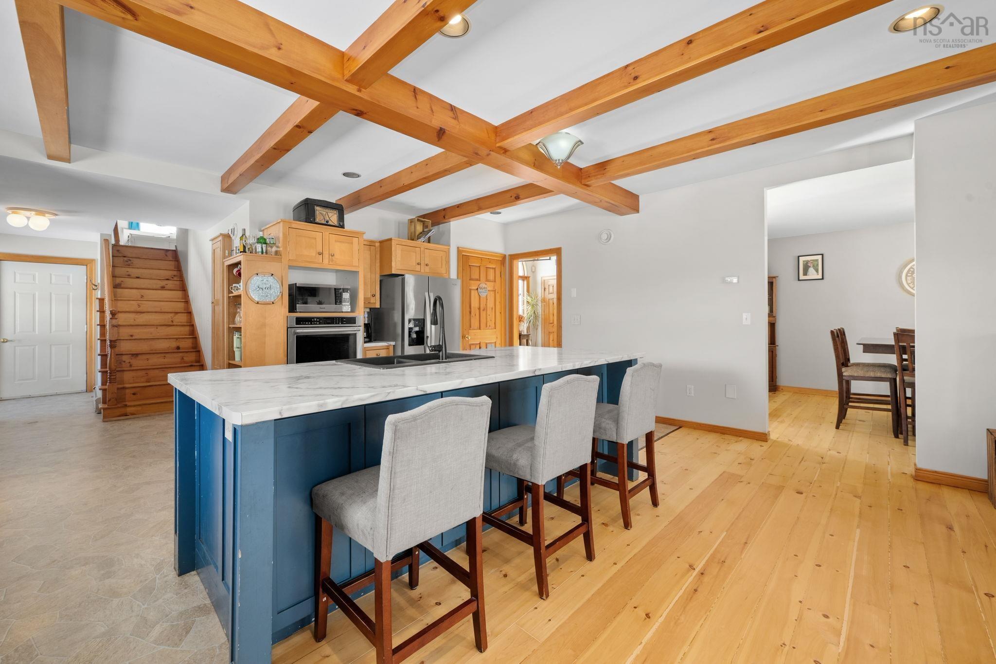 Welcome to this beautifully appointed home in sought-after Bonavista Estates, offering the ideal blend of comfort, function, and family-focused desig and just one minute to Highway 101 for an easy commute to CFB Greenwood, New Minas, Wolfville or Halifax. Thoughtfully designed for growing or multi-generational families, this home offers 4 bedrooms, 4 bathrooms and a private loft suite above the garage complete with its own 3-piece bath, perfect for teens, guests, or extended family seeking their own space. The heart of the home is the open-concept kitchen and living area, featuring a stunning kitchen island with breakfast bar, fresh paint throughout, and beautifully refinished hardwood floors. Whether hosting holidays in the formal dining room or enjoying relaxed evenings on the back deck and new hot tub, this home offers exceptional spaces to gather and unwind. Main-level laundry and a spacious primary suite with walk-in closet and 4-piece ensuite provide everyday comfort and convenience. The fully finished lower level creates the ultimate family zone, complete with a large games/rec room and bar, full bathroom, bonus room, workshop, cold room, and extensive storage capacity designed to support an active household. With interior, exterior, and basement access to the wired and heated double garage, the layout is ideal for busy households, hobbies, or home-based work. Set on a landscaped lot with a double concrete driveway and nicely treed backyard for added privacy, this is a home designed to grow with your family while offering the elevated lifestyle Bonavista Estates is known for.