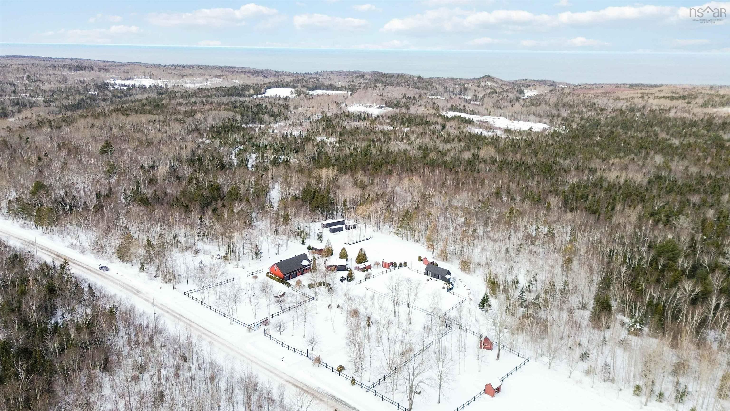 Looking for a reasonably priced equestrian property? Look no further, this unique rural estate property in Forest Glade NS offers exceptional value. Boasting 40 acres of level land including several cleared acres with 4 separate paddocks, a watering post, and kilometres of riding trails throughout the property which would also make great ATV trails. The property includes 9 buildings plus 3 shipping containers. The living space is a modern and cozy 1 bed 1 bath “barndominium” loft above the 46’ x 26’ heated garage. Downstairs is currently configured as a double car garage with additional storage or flex space where the former horse stalls once stood and are still framed in, so the space can easily be converted back to stalls if needed. There is a separate single car garage with an attached workshop, as well as 3 sheds, a chicken coop, 2 animal shelters, and a black barn. The cleared land has been beautifully landscaped and thoughtfully developed, including a large u-shaped driveway with black iron gates, a separate access road, plus compacted areas for parking or trailer storage including an RV pad with a power and water supply. Combine all that with the location and this one is hard to beat! Just a 7-minute drive to the scenic coast of the world-famous Bay of Fundy, a 12-minute drive to town with all the necessary amenities, and only 18 minuets to CFB Greenwood. Note, the adjacent 40 acre PID to the east can also be purchased for an additional amount.