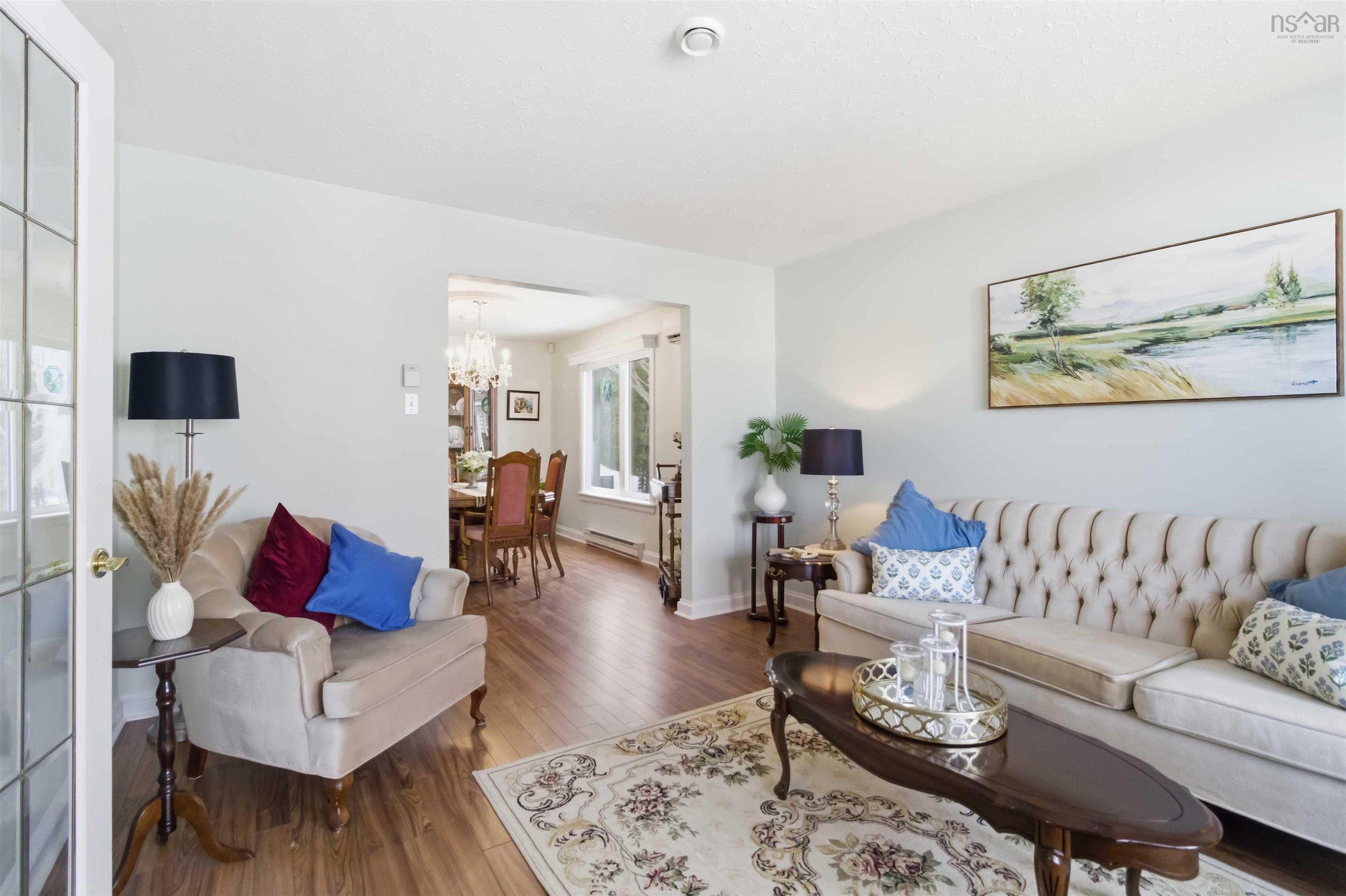 Welcome to 98 Portland Estates Blvd. W, a lovingly maintained 4-bedroom family home offering 2,710 sq ft of comfortable living space in one of Dartmouth’s most desirable neighbourhoods. The main level features a bright living room, formal dining room, spacious eat-in kitchen with patio doors to a large deck with shade structure, and a sun-filled family room with skylight and propane stove. Upstairs, you will find three generous bedrooms, including the primary suite with a private ensuite bath, while the additional bedrooms share a full main bathroom. The fully finished lower level offers excellent additional living space with a cozy rec room, 4th bedroom, full bath, extra-large laundry room, spacious utility room, and convenient walkout access. This pristine home features neutral décor, beautiful hardwood flooring, economical electric heat, and two heat pumps for year-round comfort. An attached single garage and double-wide driveway provide ample parking and storage. Enjoy outdoor living with a covered front porch and a large private tree-lined backyard backing onto forest. Located just steps from walking trails, Birches Park playground, tennis/pickleball and basketball courts, Morris Lake public boat launch and beach, Portland Estates Elementary School, Woodlawn Library, and all nearby amenities. A perfect home for families or those who love to entertain.