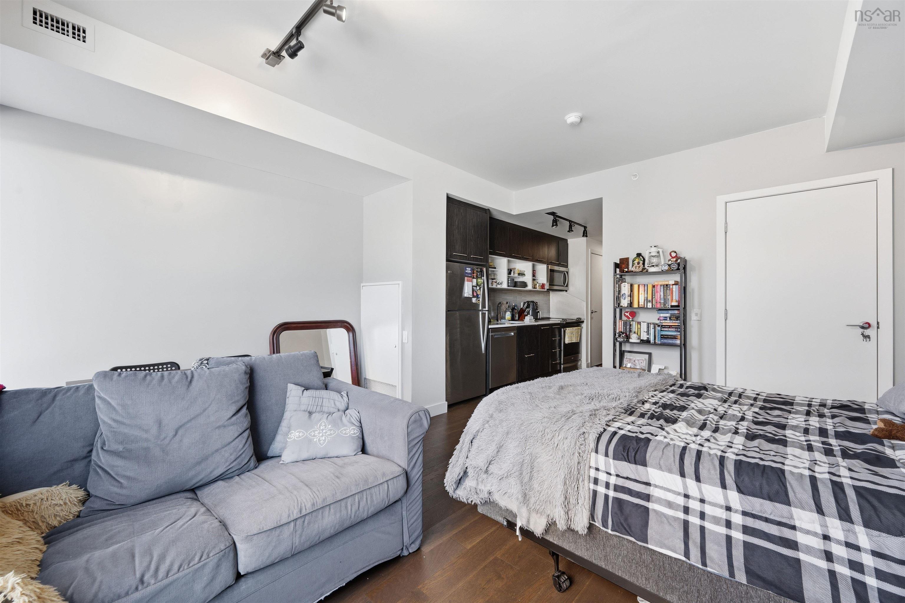 Ideal starter condo in the heart of South End Halifax, steps from universities, Central Library, Hospitals, Dining, Transit & Parks! Nestled in the most walkable part of Halifax you'll find this almost-new studio-style unit in building with luxury amenities (outdoor lap pool, gym, common study lounge, concierge, etc.) backing onto a large urban green space (Gorsebrook Park) making it ideal for summer exercise, walking dogs & more. Unit features a large Galley kitchen (high-end cabinets & quartz counters), a large bath w/soaker tub/shower combo, in-unit laundry, huge bright windows on a quiet side of the building, multiple closets, & large studio space that can accommodate sleeping, studying, working & living. With very affordable condo fees, air conditioning, and the security of a full-time concierge, this unit is ideal for students & young professionals who can walk to school and work with ease. Check out the 360 tour, watch the videos, and check it out for yourself!