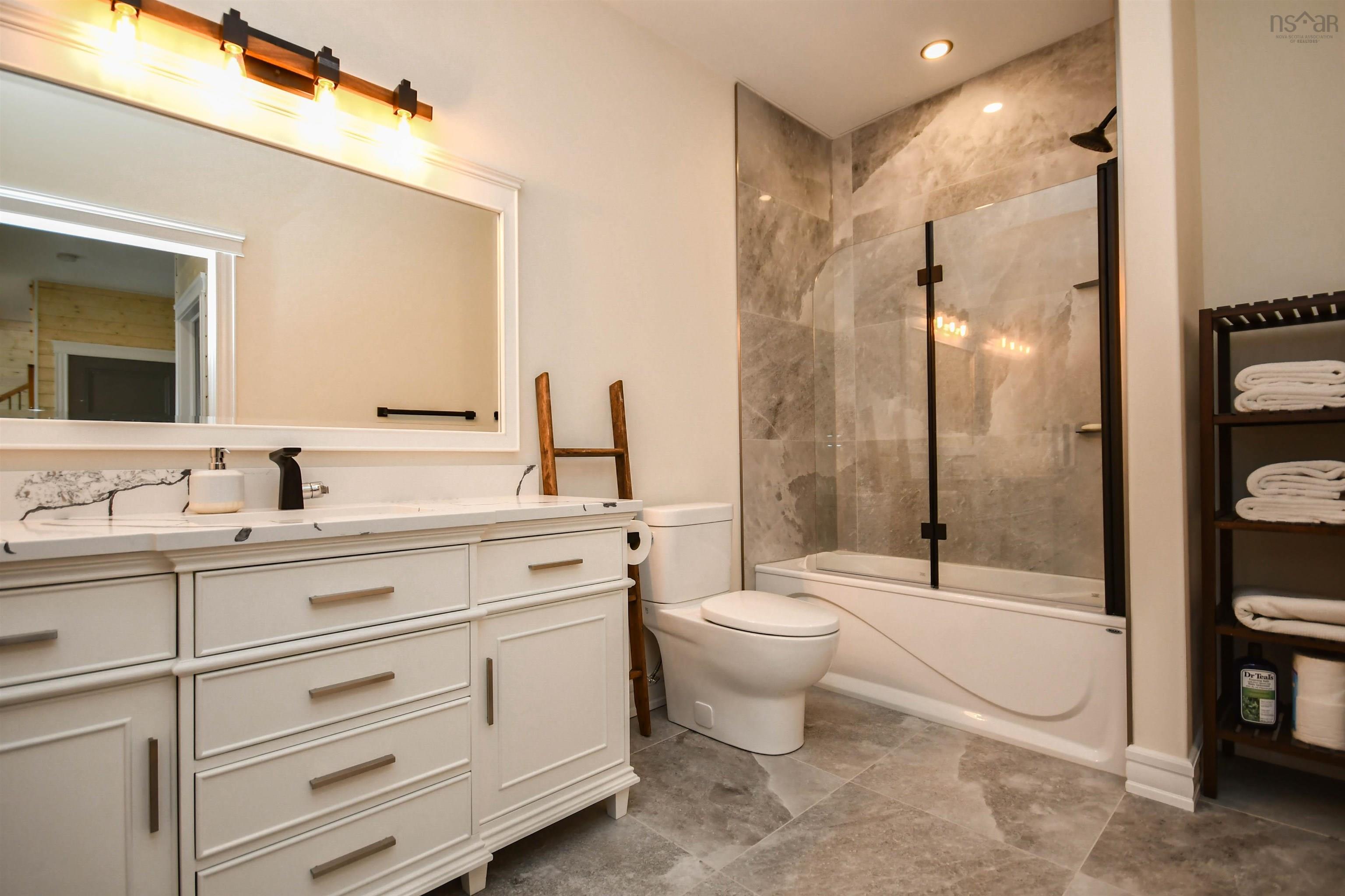 Home Welcome to a view like no other , 1907 Nova Scotia 329 . Expansive and breathtaking views of st Margaret’s bay and the Peggy’s cove lighthouse in the distance. Marine life and lobster fishing boats beautiful sunrises and soaring eagles . Let the sound and smell of the sea air lull you to sleep. An abundance of privacy with over 360 feet of shoreline . This Like new 3 year old home built right with insulated concrete foundation and metal roof with all high end finishes . 3000 feet of living space with heated floors in bathrooms and thomasville kitchen. Top of the line birch wide plank hardwood floors ,Porcelain tile and quartz counters in kitchen and all bathrooms . Large side yard for play or pet and two large decks to enjoy the outdoors . The home is pretty much wheelchair accessible With very low maintenance in and out. Lower level deck is a very large 50 by 20 Large utility room and storage with two very large bedrooms on lower level Main level master with two way fireplace to great room which can be electronically closed for privacy or left open .built in safe . Large island in kitchen open to a large dining room and great room beside . Vaulted ceiling on main floor to 18 feet and 9 feet on lower level walk out. Water softener and air exchange with two heat pumps for heating and air conditioning . Back up electric baseboard heat which owner says they never used . Outdoor gas hook up for bbq or fire pit . Also has assigned electric panel for power outage and plug outside for a generator, has gfi for hot tub already in place on lower deck . Paved driveway with 8 by 12 shed for storage . Garage is approved if desired up to 26 by 30. 10 minutes to all amenities like grocery gas pharmacy hardware restaurant and liquor store in Hubbards Walking or biking trails in Hubbards . 30 minutes to Halifax on new divided highway Tastefully finished with an abundance of comfort and pride in this home Don’t miss seeing this , It will not disappoint .