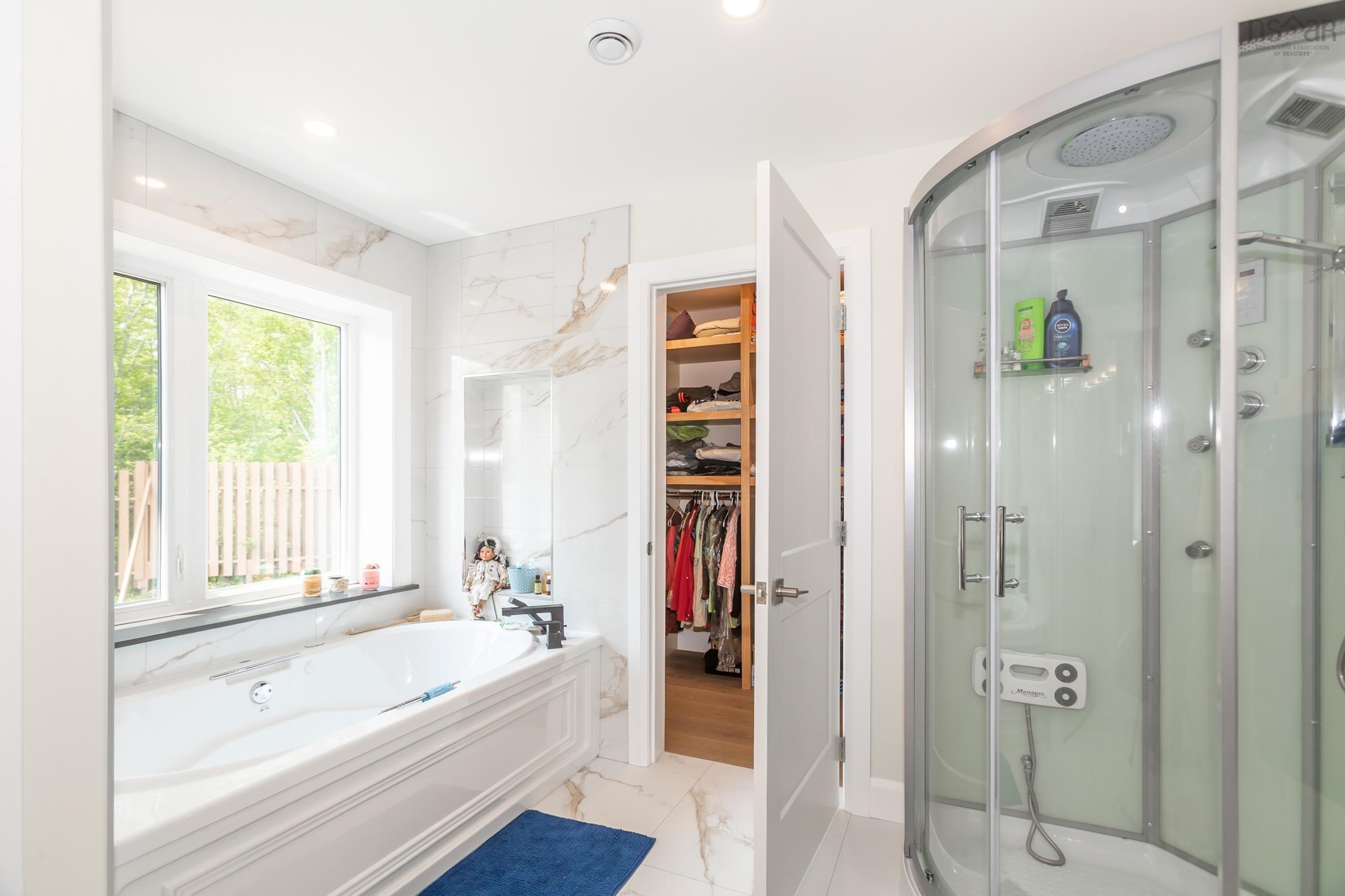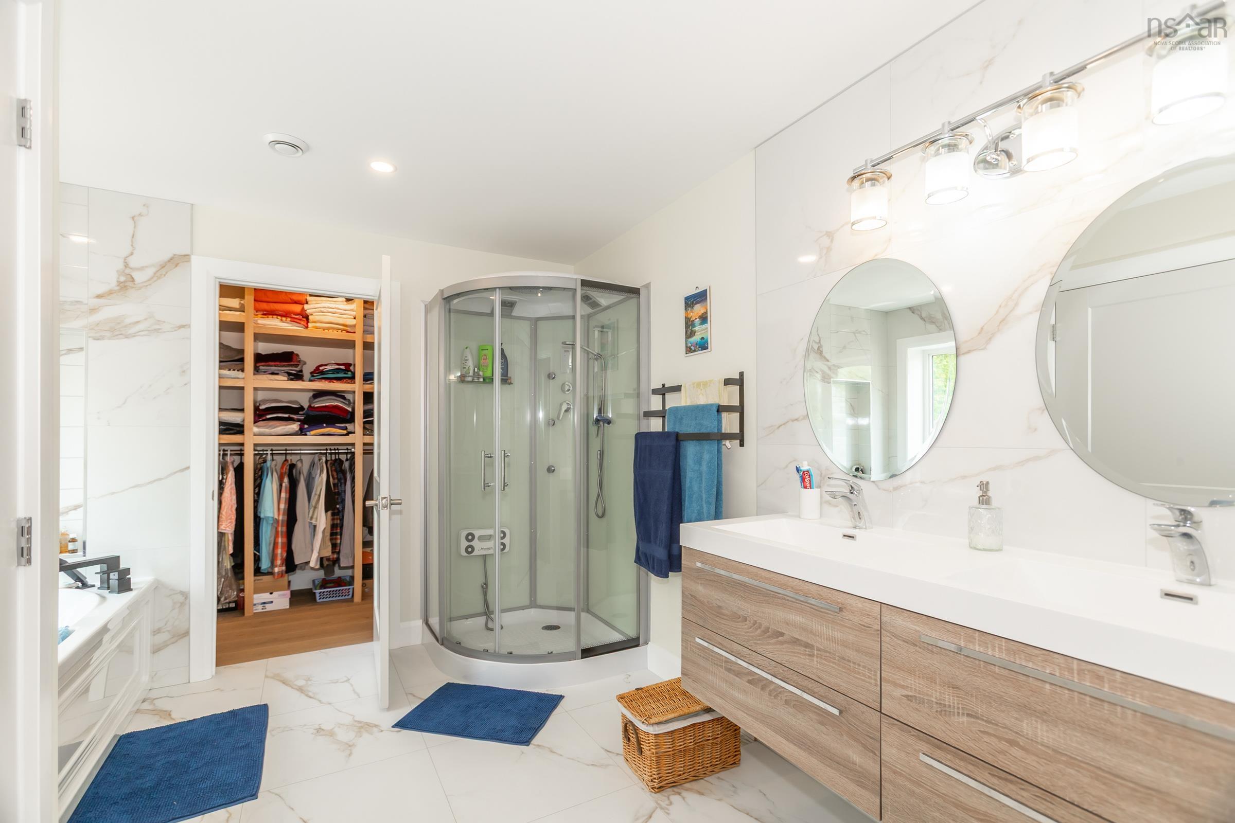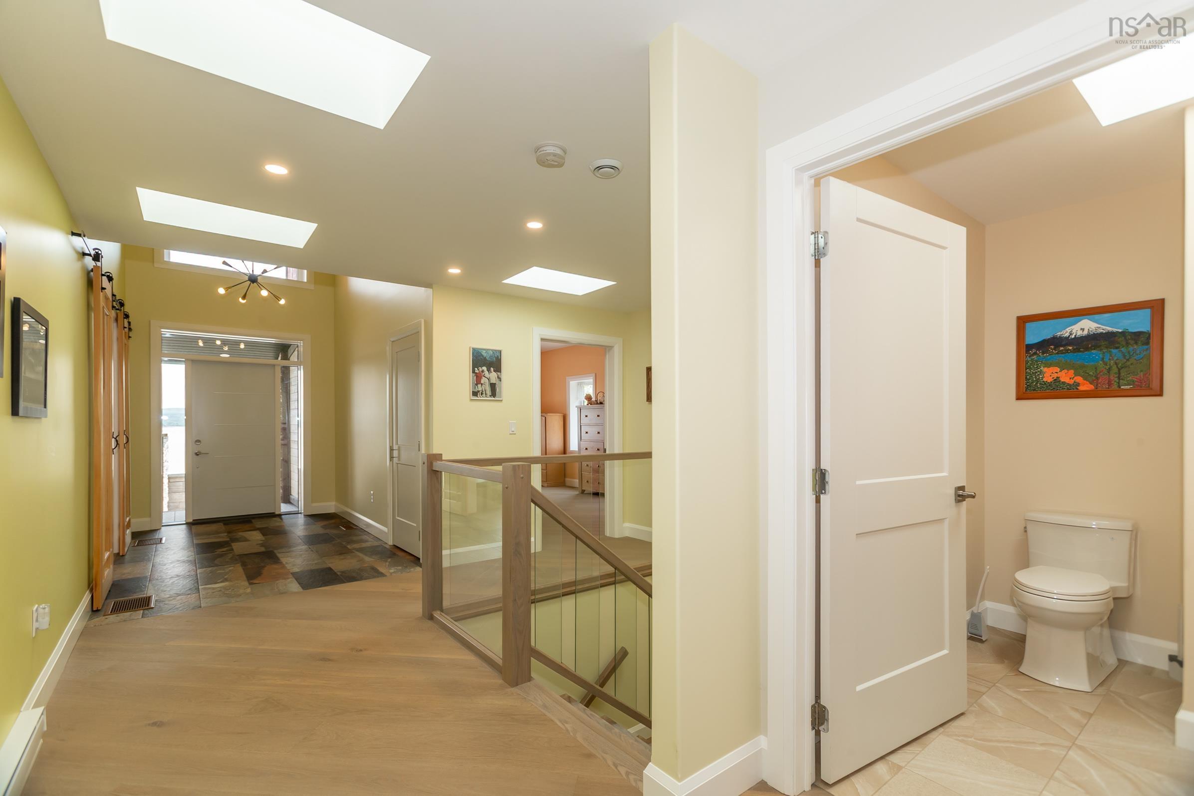 Built to endure and designed with care, this oceanfront home pairs exceptional materials with lasting quality, offering peace of mind for decades to come. Set on 2.2 acres with 270 feet of accessible shoreline and views of Goat Island, the property is just 15 minutes from Annapolis Royal yet feels a world apart. Constructed in 2022 with ICF to the top of the windows, triple-glazed glass on the ocean side, spray foam insulation in the garage ceiling and roof, soundproof interior walls, and underground wiring, the home's envelope is as efficient as it is resilient. Cape Cod siding, cultured stone, architectural shingles, composite decking, and concrete retaining walls reflect quality in every detail. Drainage, grading, and hardscaping were professionally designed because the foundation of a great home is what you don't see. Inside, natural light pours through skylights and oversized windows, highlighting engineered hardwood laid on the diagonal and slate tile in entryways and baths. The kitchen, dining, and living room all frame ocean views, as does the primary bedroom. The kitchen features quartz countertops, soft-close cabinetry, under-cabinet lighting, and a seamless connection to the open layout. Vaulted ceilings add height and airiness throughout. The primary suite includes an air-jet tub, multifunction shower with audio features, and a custom walk-in closet. A second oversized bedroom offers space for lounging or work, while a third bedroom, main-floor laundry, and 1.5 additional baths complete the level. Below, a large rec room with water views leads to double and single garages, ideal for workshop use or future suite potential. Twenty-seven solar panels cover nearly all electrical needs. Heating is high-efficiency wood and electric. A 13,000-watt generator and 200-amp service ensure comfort and reliability. A hot tub has been added, positioned for ocean views and stargazing. Built to last and thoughtfully designed, this is a place to live well by the water.
