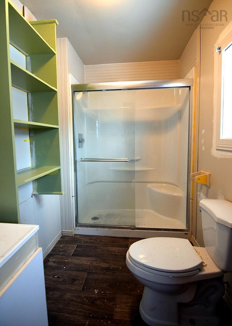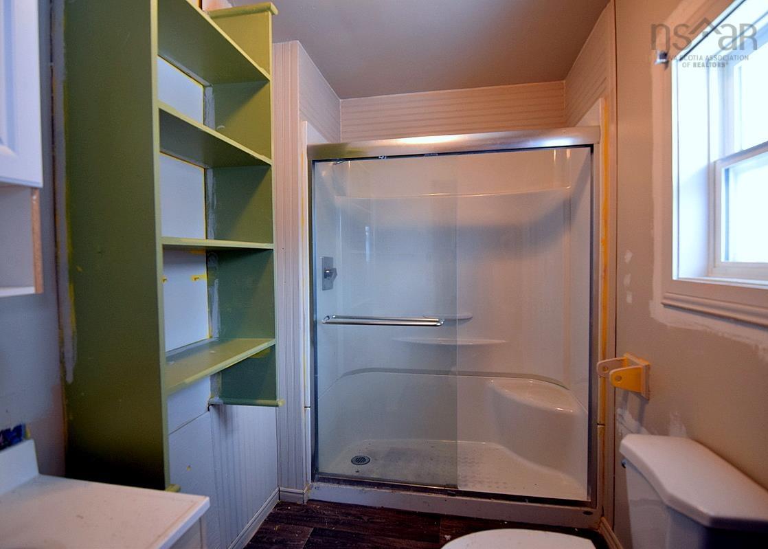 Large semi detached home very close to Cabot Links Golf Course . This home has many additions over the years so there is a large kitchen, dining room area. Main floor 3 piece bathroom with shower and large den with lovely ocean view . There is another large room that can be a office space. The living room has a woodstove with a small storage area off the living room. The living room flows to a hallway with 3 bedrooms : one large bedroom with heat pumps with again, an ocean view. There are 2 more bedrooms off this hallway another heat pump in one of the bedrooms.There is also a laundry area off the den and furnace / storage area as well near the laundry room. The upstairs area has large 11 * 8 ft landing , 2 more bedrooms and another 3 piece bathroom. The yard has many trees and a large shed ( needs TLC)