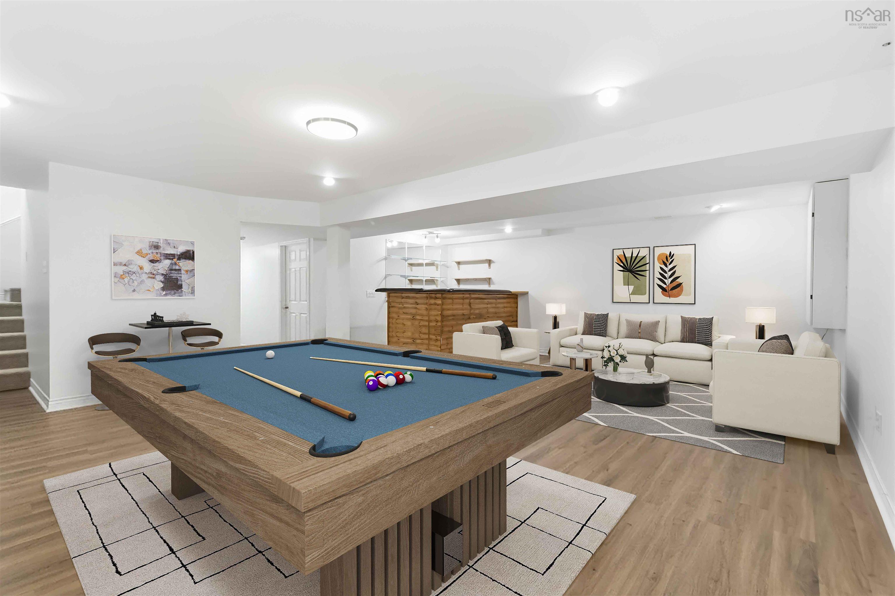 Spacious 3-bedroom bungalow with a 1-bedroom apartment in an ideal location in Porters Lake, just minutes from all amenities. Offering over 3,000 sq. ft. of finished living space, this freshly painted home is vacant and ready for immediate occupancy. The main level features a bright, open layout with recently refinished hardwood floors in the living room, a beautifully updated kitchen with granite countertops, newer cabinets (5 years old), and updated appliances including washer and dryer, and access to a large wraparound deck and oversized patio deck with barbecue area—perfect for entertaining. The large primary bedroom includes a walk-in closet and an ensuite bath with a relaxing whirlpool tub. Two additional bedrooms and a full 4-piece bath complete the main floor. Downstairs, you’ll find a spacious rec room with pool table, a convenient half bath, and durable laminate flooring throughout. The lower level also includes a separate 1-bedroom apartment with its own 3-piece bath, offering excellent potential for extended family or rental income. Recent upgrades include a ducted heat pump (furnace/air handler is 2 years old, condenser is 10 years old), 60-gallon hot water tank (2 years old), and wraparound deck (5 years old). Outside, enjoy a double detached wired garage, double driveway, and a fenced area in the front yard. A fantastic opportunity to own a spacious home with income potential in a sought-after Porters Lake location.