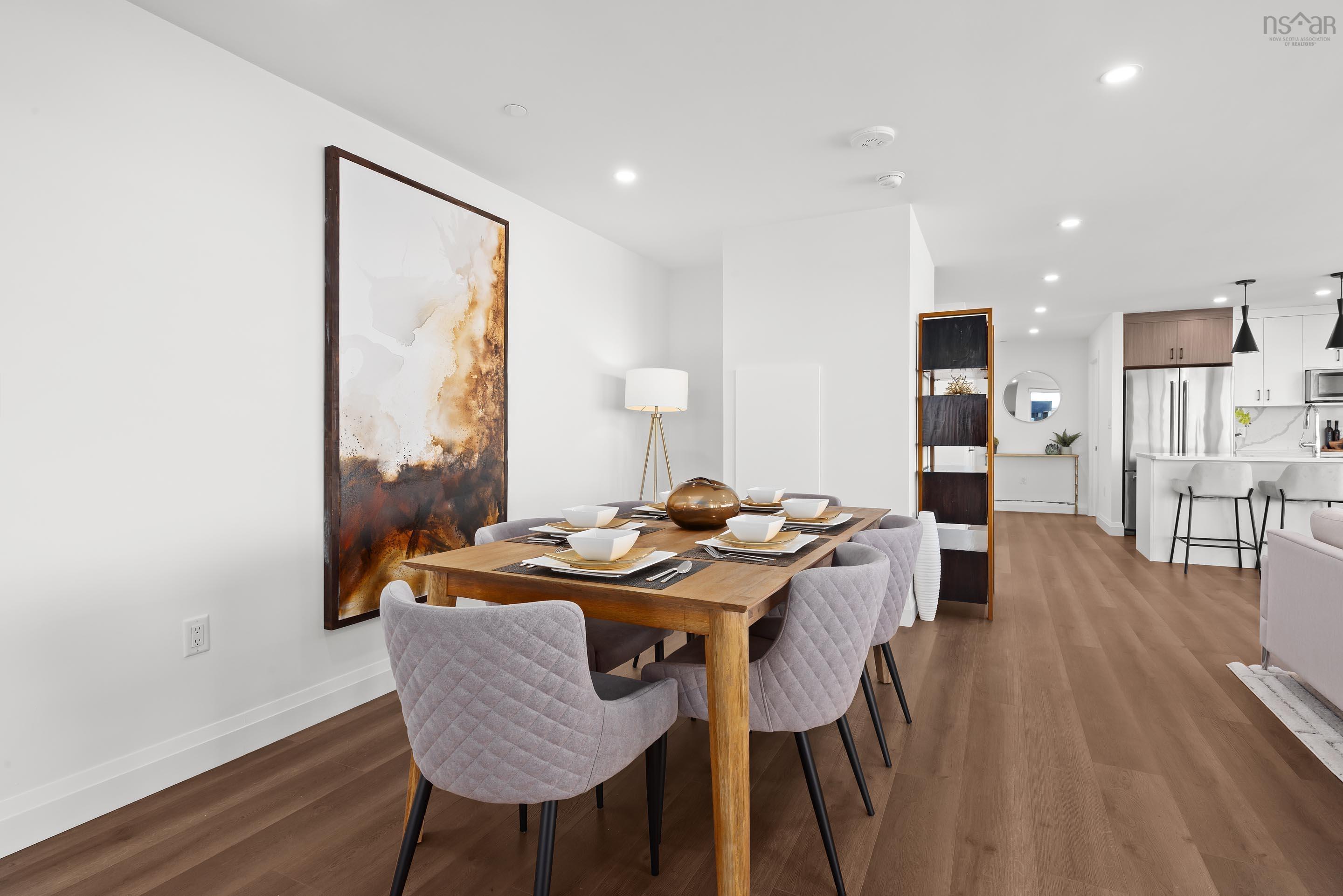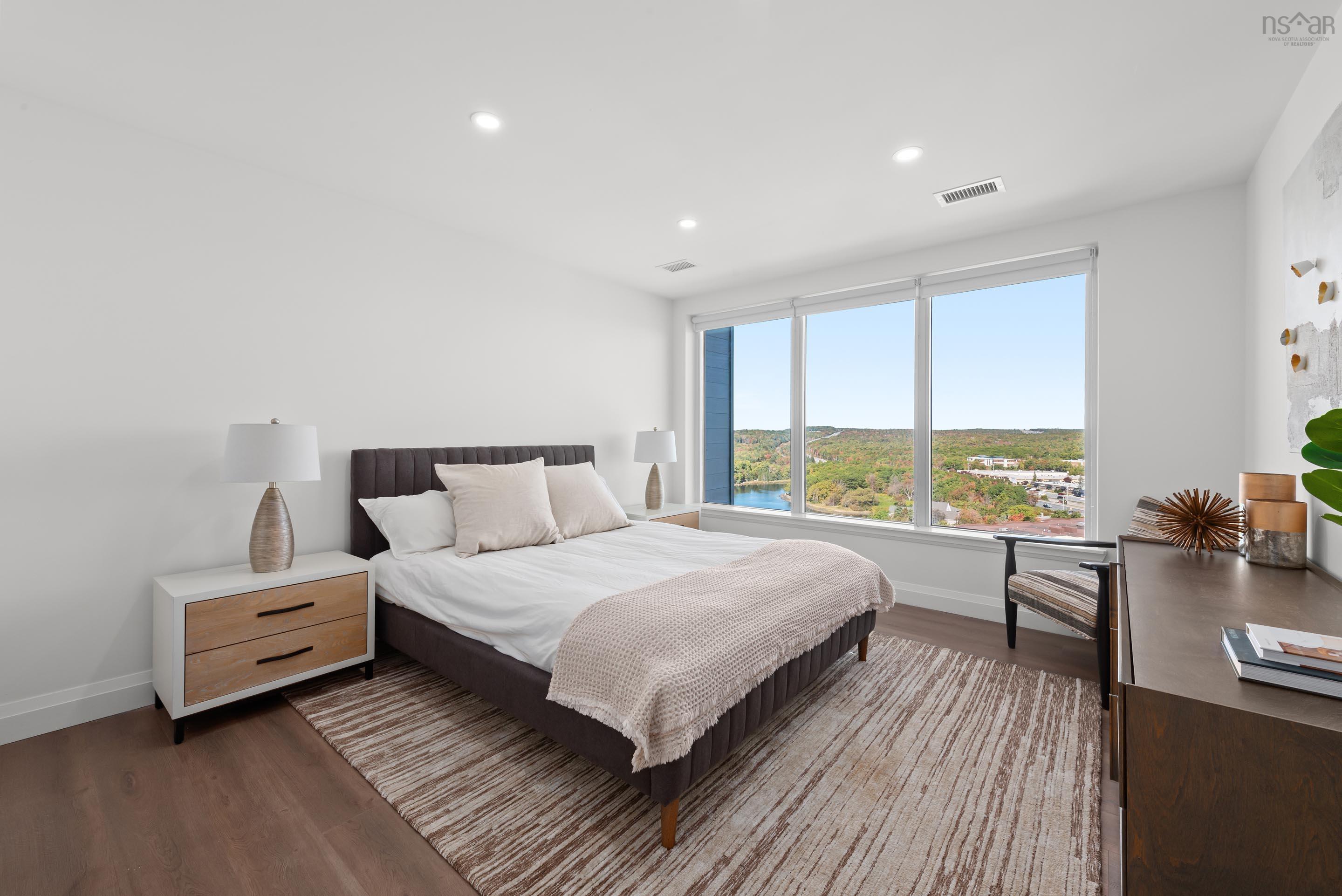 Welcome to Penthouse 1703 at Seapoint Condos, where luxury meets the sea! Perched atop one of Dartmouth’s most coveted waterfront addresses, this fully furnished 2-bedroom + den residence offers 1,658 square feet of refined living and a spectacular 588 square foot terrace overlooking the Bedford Basin. Floor-to-ceiling windows flood the space with natural light, framing panoramic views that stretch down the Bedford Basin; the kind of view that defines East Coast living. Inside, you’re greeted by an expansive open-concept living and dining area, anchored by engineered hardwood floors and a chef-inspired kitchen with high-end finishes and stainless steel appliances. The primary suite is a true retreat, featuring terrace access, a sleek electric fireplace, a walk-in closet, and a spa-like ensuite with a soaker tub, double vanity, and custom tile shower. The second bedroom sits at the opposite end for added privacy, complete with its own walk-in closet and stunning Basin views. A glass-enclosed den offers the perfect sun-soaked workspace or solarium, while a bonus flex room off the laundry adds extra versatility and storage space. With 4 underground parking spaces and 4 storage lockers, convenience is unmatched. Residents enjoy access to a fitness centre and elegant social lounge, all within minutes of Dartmouth Crossing, Burnside, and Downtown Dartmouth and Downtown Halifax. Rarely does a penthouse of this scale, design, and location come to market. Your coastal sanctuary awaits on the top floor of the Seapoint Condos!