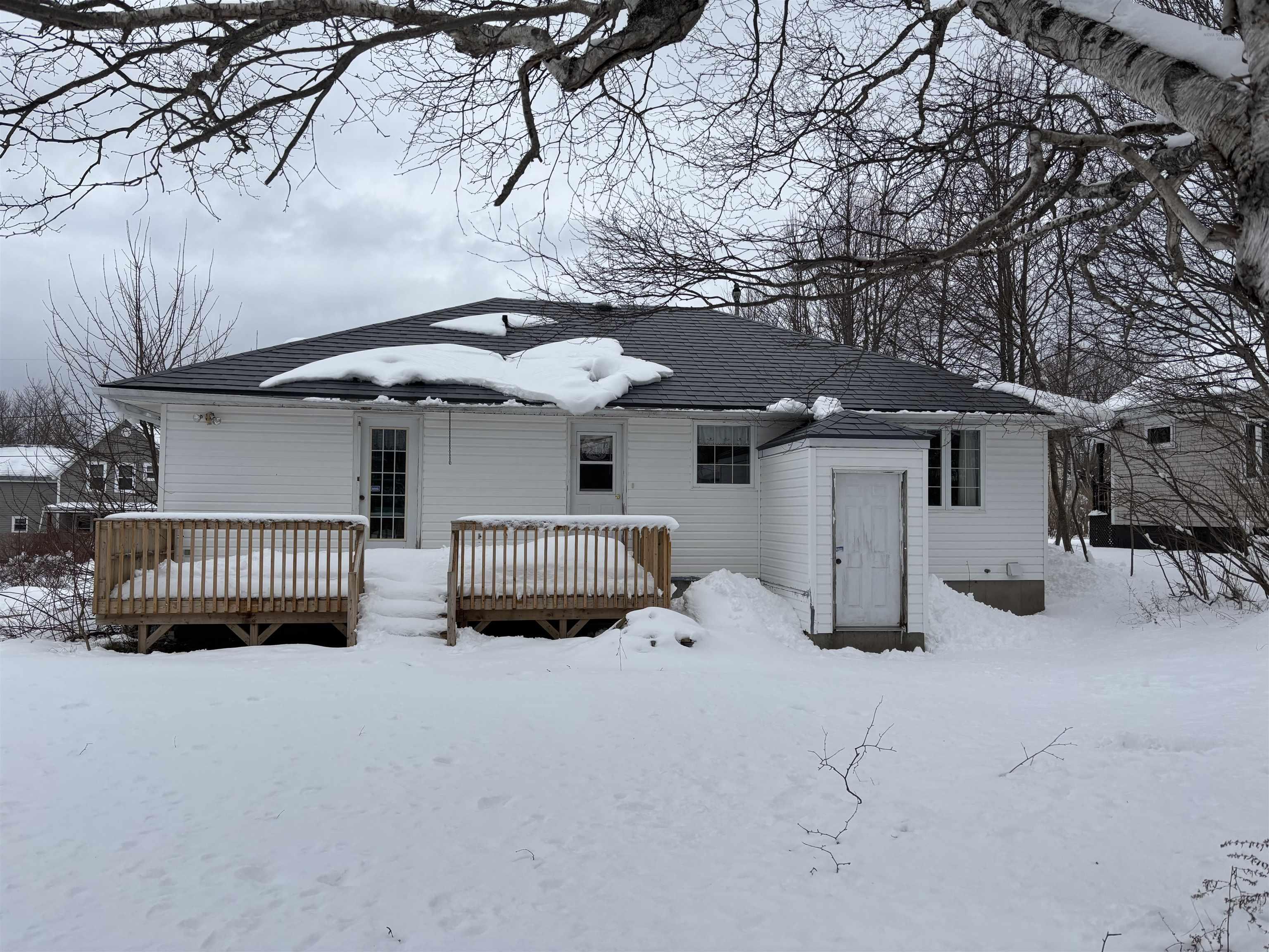 This unique bungalow with metal roof, new back deck, attached heated garage with new overhead door, shed with metal roof, large back yard and paved driveway is centrally located close to all amenities. Park your vehicle inside the garage and enter the kitchen from inside the garage or through the front door entrance with double closets and access to basement. The living room is accessed through the large kitchen, as is the bath with shower on the opposite side of the kitchen. The bathroom also flows through to the primary bedroom with access to the new back deck. The primary bedroom is very spacious and features double closets and a skylight. At the front of the home is the second bedroom. Uses for the second bedroom and living room could be switched according to personal preference. The basement is insulated, plumbed for a bathroom and features a walk out to the back yard, allowing easy access for a separate living space if desired. Schedule your private viewing today.