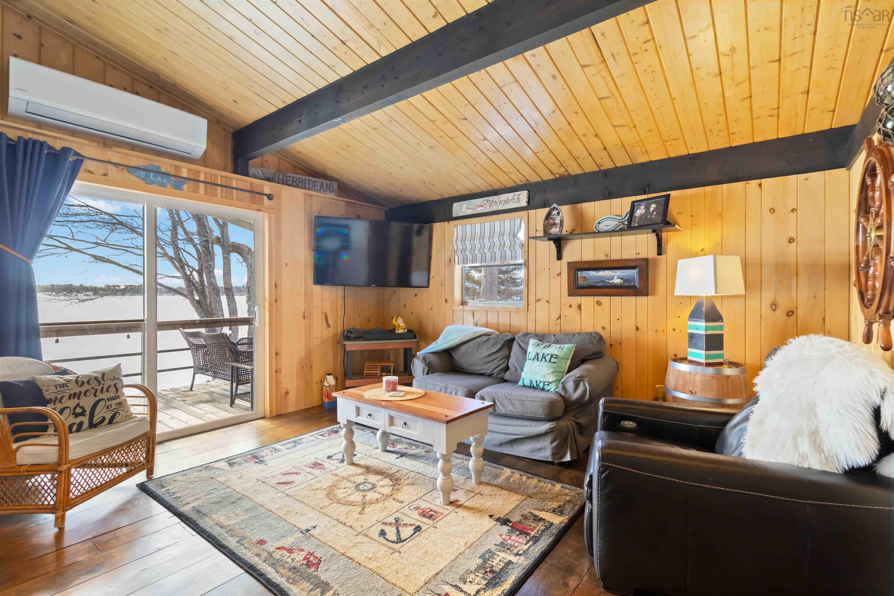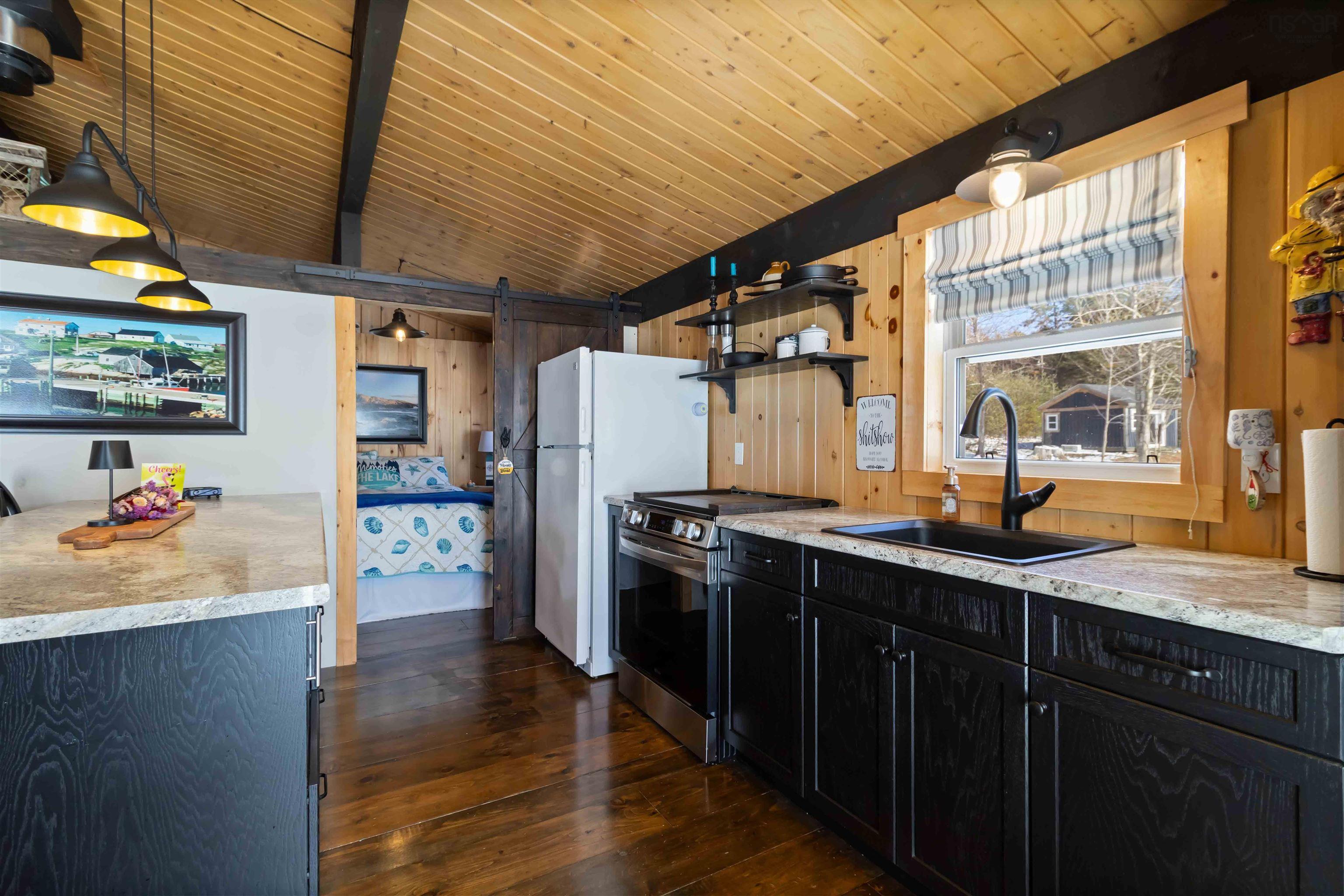 This charming two-bedroom cottage rests along the shores of one of Nova Scotia’s most sought after South Shore lakes; Big Mushamush, offering an exceptional blend of privacy, natural beauty, and future potential. Set on a beautifully landscaped 17,424 square foot property with over 200 feet of pristine waterfront, the property features a smooth, sandy beach and crystal clear waters. perfect for swimming, boating, and soaking in unforgettable sunset views. Inside, 121 Dauphinee Rd. welcomes you with a bright, open-concept living space. Expansive windows frame stunning lake vistas, while the dining area flows seamlessly into a thoughtfully designed kitchen with ample cabinetry. Two inviting bedrooms with built-in beds provide comfort and efficiency, and the warm pine finishes paired with elevated ceilings create an airy yet rustic atmosphere. Step outside to a generous deck, perfect for entertaining, enjoying quiet mornings, or simply taking in the peaceful surroundings. A dock provides easy access to the lake, making it ideal for swimming, playing on lake toys, or fishing. This is lakeside living at its finest; peaceful, private, and full of possibility.