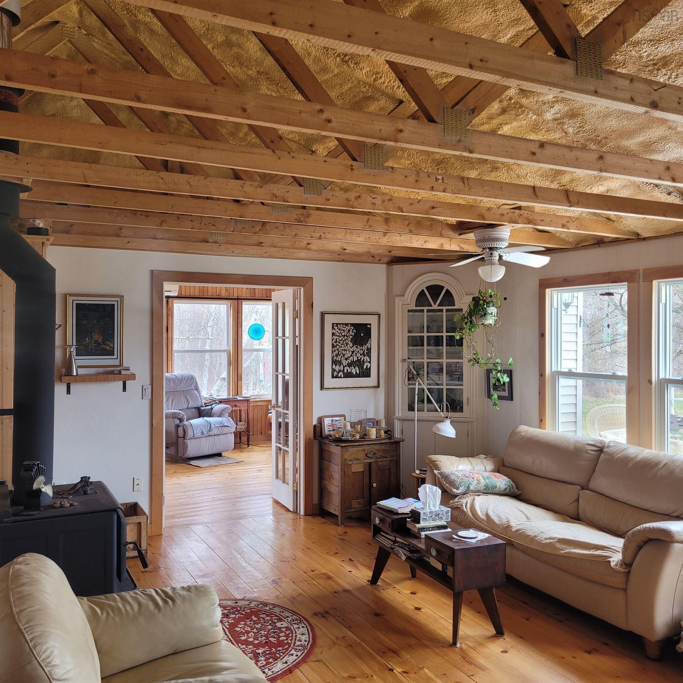 Welcome to your dream escape! Nestled on 1.27 beautifully landscaped acres this truly unique property offers privacy, charm, and views of the Northumberland Strait. Whether you're seeking a peaceful year-round residence, a charming vacation home, or an income-generating retreat, this home offers it all.Step inside the home and experience a bright, open-concept layout.The spacious living area features a cozy woodstove and an eat-in kitchen with stainless steel appliances all designed to take full advantage of the view. Just beyond the living area, step out onto the deck the perfect spot for morning coffee or evening sunsets. The home includes two bedrooms and a recently upgraded 3-piece bathroom. On the side you'll find a spacious sunroom wrapped in windows, and flooded with natural light. Patio doors lead from the sunroom to a newer side deck, creating a seamless indoor-outdoor flow. Recent upgrades include some new windows and doors, spray-foam insulation in both the ceiling and underneath the home, and the entire structure has been lifted and is now resting on solid concrete footings offering improved durability, energy efficiency, and year-round comfort. Heating options include electric baseboards, a heat pump, and a cozy wood stove, with a generator backup to give peace of mind. Outside, the property is equally impressive. A circular driveway welcomes you in, surrounded by beautiful perennial gardens, grape vines, and 3 large sheds for additional storage or workspace. Multiple decks offer peaceful spots to relax and listen to the sounds of the sea. An amazing bonus? The upgraded bunkie is fully equipped with its own fridge and eating area .With a modern 3-piece bath and a private deck, it’s the it’s the perfect guest retreat, or income-generating rental. Located in a highly sought-after, quiet area with private beach access and just a short drive to the quaint village of Pugwash, this property is absolutely amazing and a truly charming retreat .