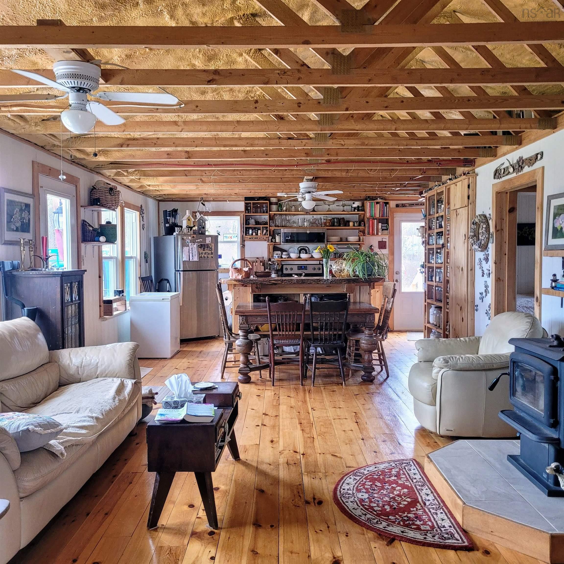 Welcome to your dream escape! Nestled on 1.27 beautifully landscaped acres this truly unique property offers privacy, charm, and views of the Northumberland Strait. Whether you're seeking a peaceful year-round residence, a charming vacation home, or an income-generating retreat, this home offers it all.Step inside the home and experience a bright, open-concept layout.The spacious living area features a cozy woodstove and an eat-in kitchen with stainless steel appliances all designed to take full advantage of the view. Just beyond the living area, step out onto the deck the perfect spot for morning coffee or evening sunsets. The home includes two bedrooms and a recently upgraded 3-piece bathroom. On the side you'll find a spacious sunroom wrapped in windows, and flooded with natural light. Patio doors lead from the sunroom to a newer side deck, creating a seamless indoor-outdoor flow. Recent upgrades include some new windows and doors, spray-foam insulation in both the ceiling and underneath the home, and the entire structure has been lifted and is now resting on solid concrete footings offering improved durability, energy efficiency, and year-round comfort. Heating options include electric baseboards, a heat pump, and a cozy wood stove, with a generator backup to give peace of mind. Outside, the property is equally impressive. A circular driveway welcomes you in, surrounded by beautiful perennial gardens, grape vines, and 3 large sheds for additional storage or workspace. Multiple decks offer peaceful spots to relax and listen to the sounds of the sea. An amazing bonus? The upgraded bunkie is fully equipped with its own fridge and eating area .With a modern 3-piece bath and a private deck, it’s the it’s the perfect guest retreat, or income-generating rental. Located in a highly sought-after, quiet area with private beach access and just a short drive to the quaint village of Pugwash, this property is absolutely amazing and a truly charming retreat .