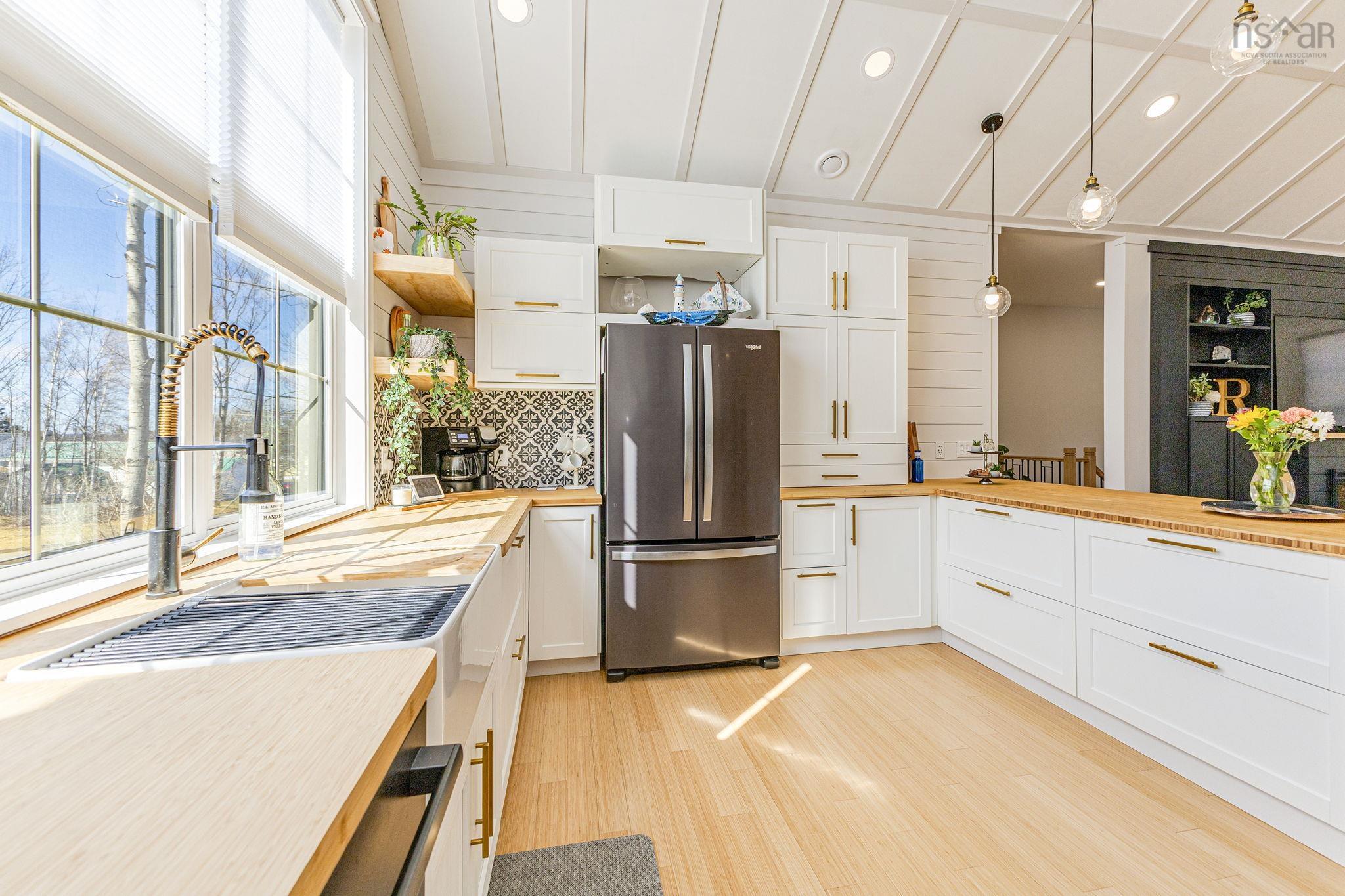 This custom built home delivers undeniable wow factor! Blending modern luxury with everyday comfort while showcasing custom detailing throughout with no corners cut. The open concept layout is anchored by a stunning kitchen and wine bar, with sleek black and gold finishes carried through the living spaces. The main living area features impressive vaulted ceilings and expansive windows, enhancing the sense of space while filling the home with natural light. Quality cabinetry and a striking design flow seamlessly throughout the bright, inviting interior. Offering 2 bedrooms and 2 bathrooms, the private primary suite is a true retreat with a walk in closet, spa like ensuite and patio doors leading to an expansive deck with hot tub. The lower level offers exceptional potential with a bedroom already roughed in, a third bathroom plumbed, large windows, and two separate exterior entrances. Ideal for an in law suite, rental or additional living space. Complete with an attached garage, ample parking, and a peaceful, tree-lined backyard, this one of a kind home delivers style, function, and future opportunity!