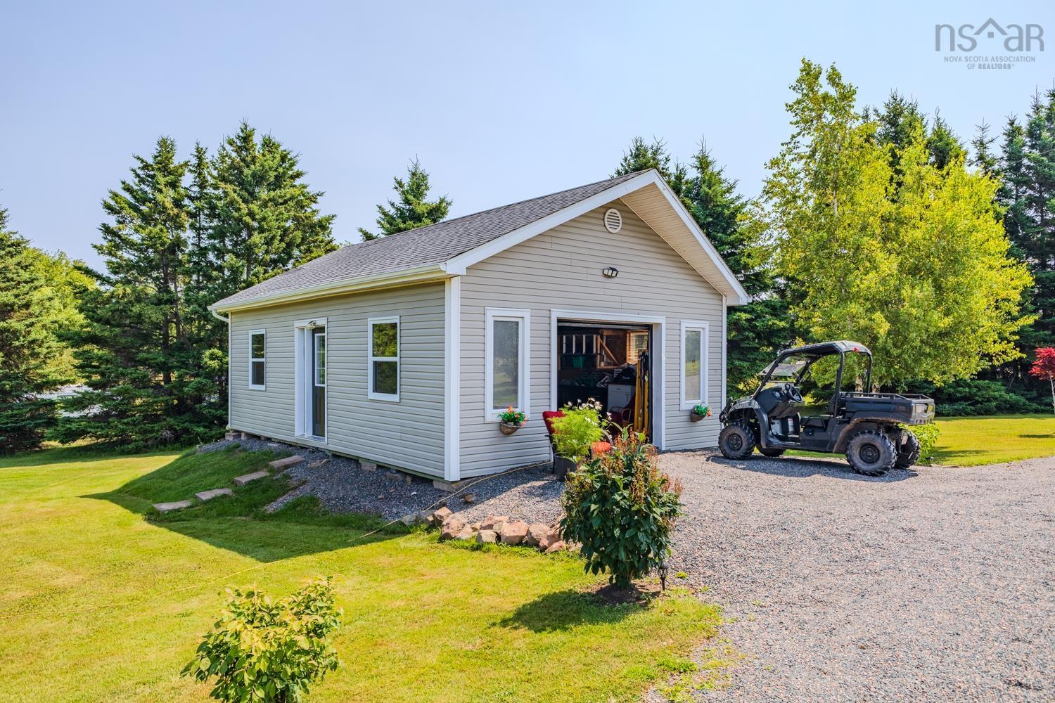 Nestled just minutes from the prestigious Fox Harb’r Resort, this charming 1.5-storey A-frame home blends comfort and character in a peaceful coastal setting. With sandy shorelines just a short stroll away and the ability to walk the sand bars out to Oak Island, this property offers the perfect balance of relaxation and adventure. Step inside and feel instantly at home with a warm and inviting layout. The main floor features a cozy living room with wood stove (ready for cooler weather), dining area, and a functional kitchen ideal for family meals or entertaining friends. A secondary bedroom which is currently used as a den includes a pantry and laundry area, while the bright 3-piece bath is spacious and accessible on the main floor. Enjoy the sunshine year-round from the sunroom porch with pull-down shades or the screened solarium, perfect for quiet mornings or summer evenings. Upstairs, the primary bedroom offers a peaceful retreat with its own balcony and a laminate walk-in closet. A heat pump keeps the home comfortable in every season, complemented by an electric fireplace with mantle for added charm. Appliances have been updated, including recent additions of stove, dishwasher, and washer within the past year. The property also includes a 16x16 heated and wired bunkee, perfect for adding another room for visiting family, friends, or a private workspace. A 24x30 wired garage (220 amp, ready to connect) and 8x10 shed provide plenty of storage for tools, toys, and seasonal gear. The home sits on an insulated 4 ft frost wall foundation and has a french drain system to offer durability and peace of mind. With its inviting spaces and thoughtful updates, this property is ideal for those looking for a seasonal getaway or a cozy year-round residence close to beaches, golf, and amenities.