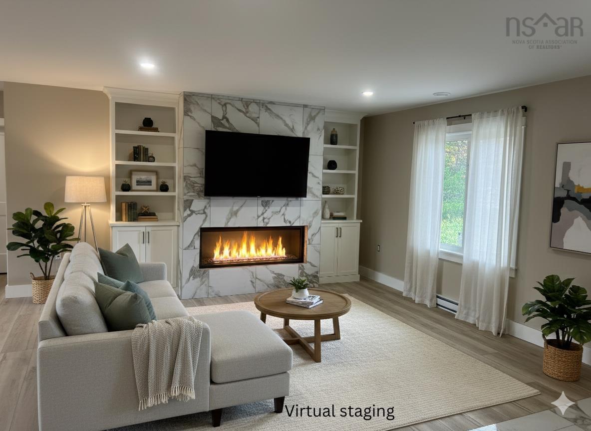 Welcome to luxury in this BRAND NEW custom-built 1-level bungalow!! The eye-catching exterior of this home is highlighted with a decorative light-colored vinyl brick accenting a stunning front deck that contrasts beautifully with the modern black trimmed windows, black exterior doors, and black garage doors that provide amazing curb appeal. The roof line extends nicely over the ground level 8.8’ x 33’ concrete deck, providing a comfortable place to sit and relax. Another ground-level 9.7’x 13.5’ concrete deck in the backyard provides the ideal area to set up your BBQ. A paved driveway will allow for additional parking. The hub of the home is the open-concept kitchen/living room/dining room. The kitchen features a 6-foot-long kitchen island, quartz countertop, backsplash, and under-cabinet accent lighting, with fresh white cabinetry. A stunning ceramic-faced built-in entertainment wall features the warmth of an electric fireplace, is ready to accommodate your big screen TV, and is beautifully bracketed by additional storage cabinets that will be on full display in the living room. An energy-efficient cassette-style heat pump is smartly placed in the ceiling of the main living area, and an additional wall-mount heat pump unit in the primary bedroom will help offset those NS Power bills. A large private primary bedroom with a large walk-in closet and a 3-piece ensuite is sure to be on your must-have list. Pot lights and luxury vinyl click flooring will flow throughout the home. A main-level laundry with extra storage and two additional bedrooms with a second full bath make this the perfect layout. Underground electrical service will extend from the main line to the home, and an Olympic Hot water tank adds to the value of the home. Situated on an approximately .69-acre lot, located adjacent to the ever-popular Ravenwood subdivision, with quick access to Hwy 1 and in close proximity to ATV and walking trails, make this the ideal location. Available for a quick closing.