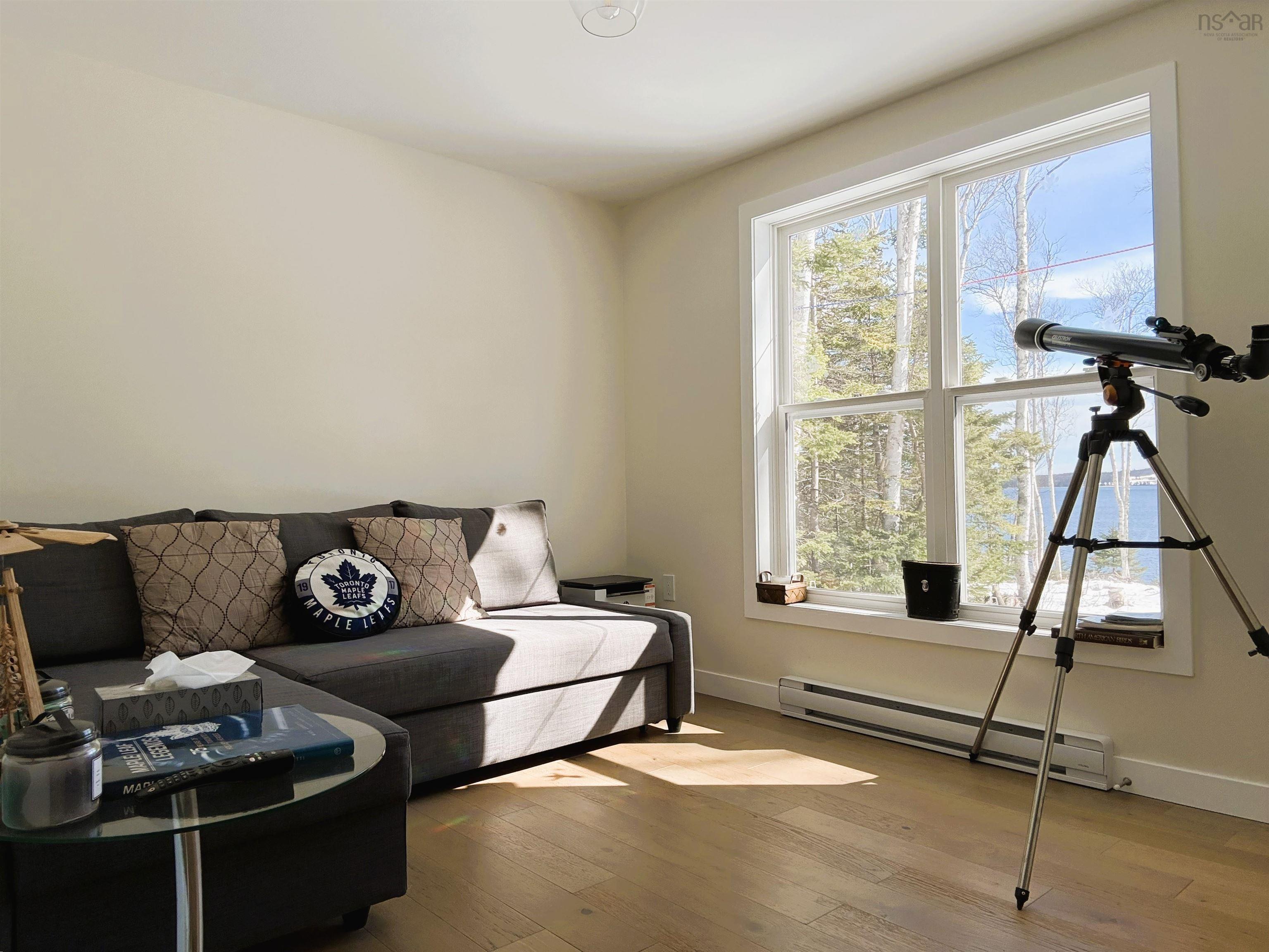 Beautiful, like new mini home perfectly situated on the Bras D'Or Lakes in the peaceful community of West Bay Marshes. The property offers both exceptional privacy along with breathtaking views of the water and local wildlife. This is a thoughtfully designed home featuring a bright open main living area with expansive windows that frame the lake and visiting birds. A centrally located wood fireplace adds charm and warmth to create a cozy atmosphere in the cooler months. Ideal as a permanent residence or as a relaxing lakeside getaway, the layout features a spacious kitchen with dedicated pantry while the primary offers a spacious room complete with ample closet space and well appointed ensuite bathroom & updated lighting fixtures. The property itself is stunning with plenty of space for gardening and hardwood trees with potential for further development. Additional features include ductless heat pump, water filtration unit, 20 x 8 ft sea can container,30 yr architectural shingles, Generac generator offering peace of mind. Furniture included. This property is located to nearby post office and is conveniently located 20 Minutes from Port Hawkesbury & 15 Mins to Marble Mountain.