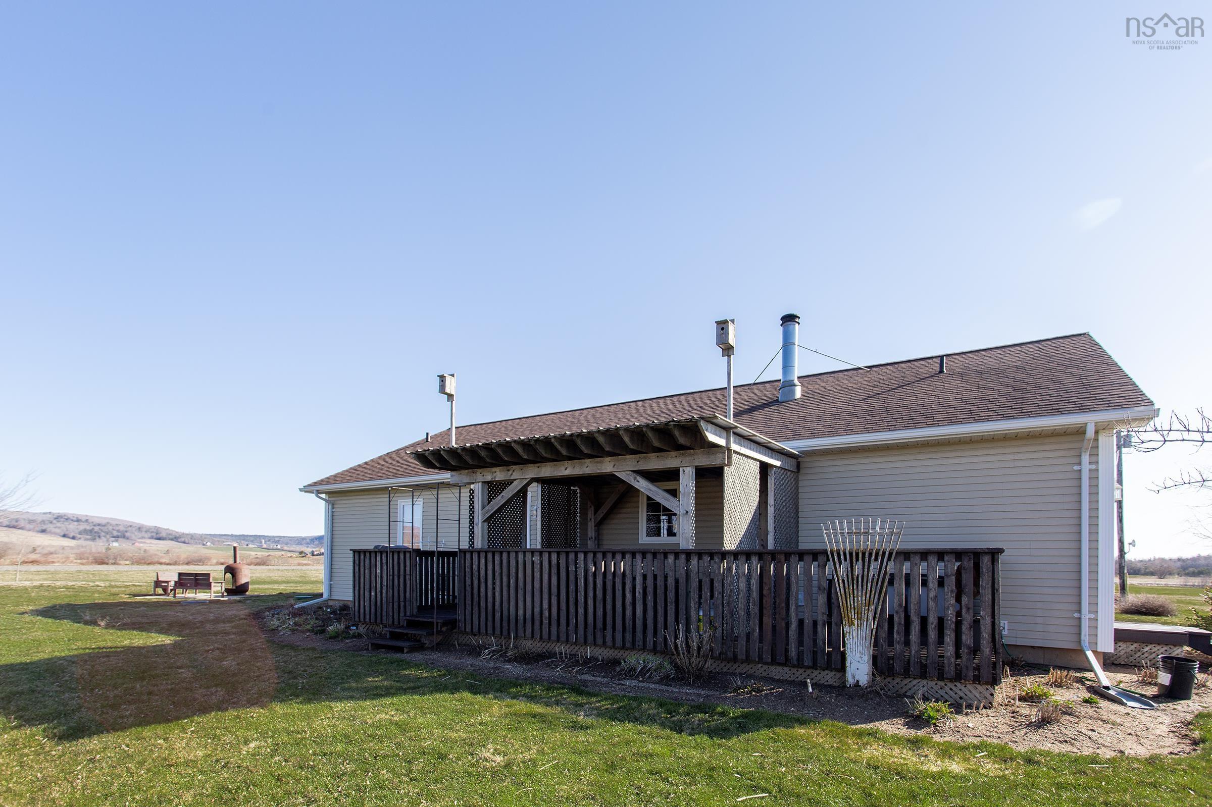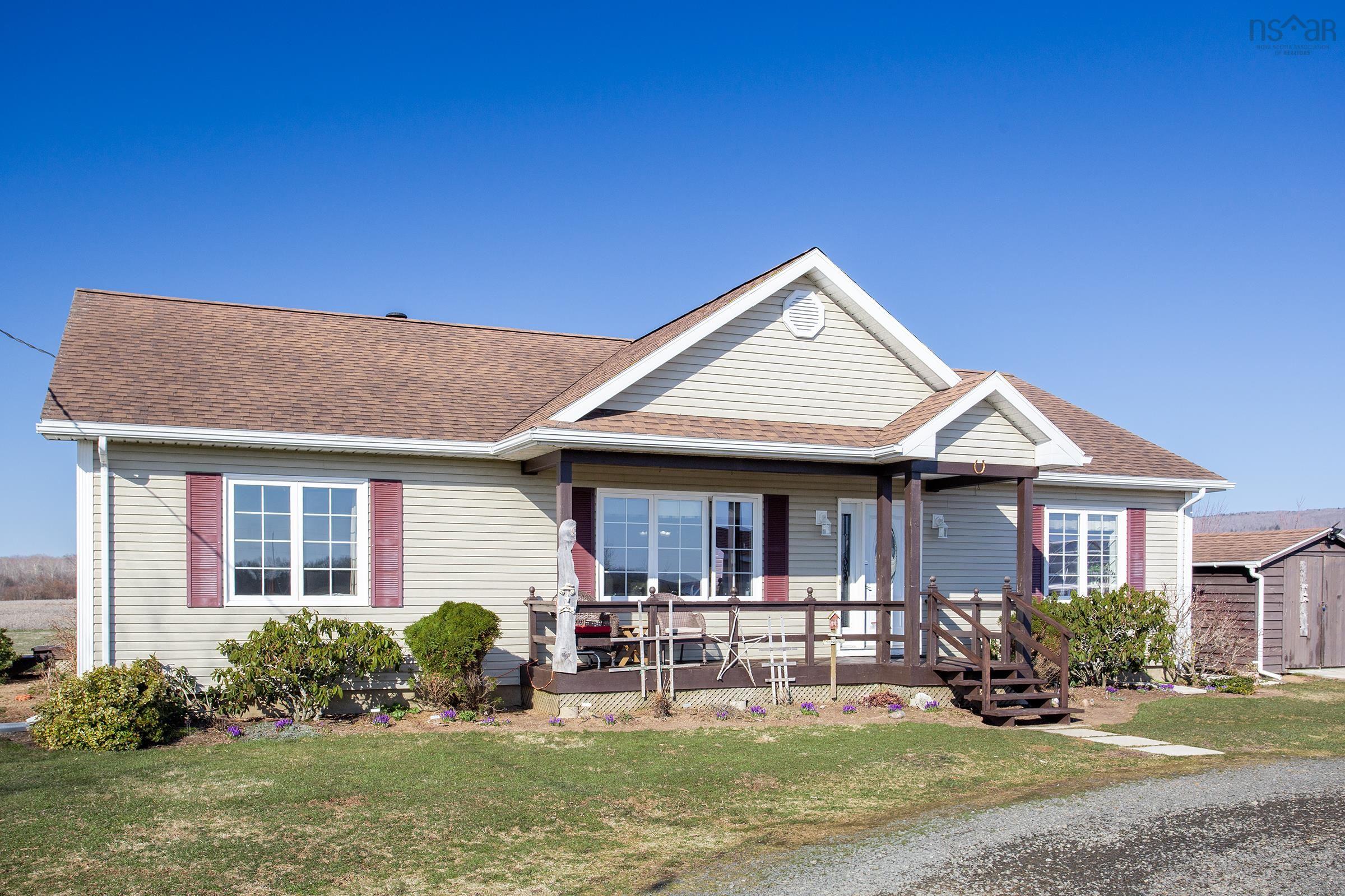 This immaculate 2/3-bedroom, 2-bathroom bungalow sits on 19.58 surveyed acres in a pastoral setting with lovely views of mountains and pastures, a brook at the back of the property, and perennial gardens that add charm throughout the seasons. Original owners - first time on market! Built in 2008 to a standard that well exceeded code, the home has been exceptionally maintained and shows pride of ownership at every turn. The main floor offers oak hardwood floors, a cathedral ceiling, ceiling fans throughout, a bright living room, main floor laundry, and a den that converts easily to a third bedroom. The primary bedroom features a 4-piece ensuite, and a second full bath serves the rest of the home. Covered front and rear decks make outdoor living easy, with a circular drive completing the curb appeal. The full-height basement is partially finished and currently used as a home gym, with plenty of room to expand living space further. Heating is efficient and versatile - the wood furnace keeps it cozy with only 2 cords per year, supplemented by a heat pump and electric baseboard throughout, plus an HRV for air quality. Built with R40 attic insulation and R30 in walls, casement windows, 200 amp panel, drilled well, water softener, and modern septic. The cleared, level acreage is ideal for hobby farming or animals. A detached 20x12 garage, greenhouse, and large shed round out the outbuildings. Fresh paint throughout. Bell high speed internet. Minutes to Middleton and Bridgetown amenities, with CFB Greenwood a short commute. Hard to beat this combo at only $549,000!