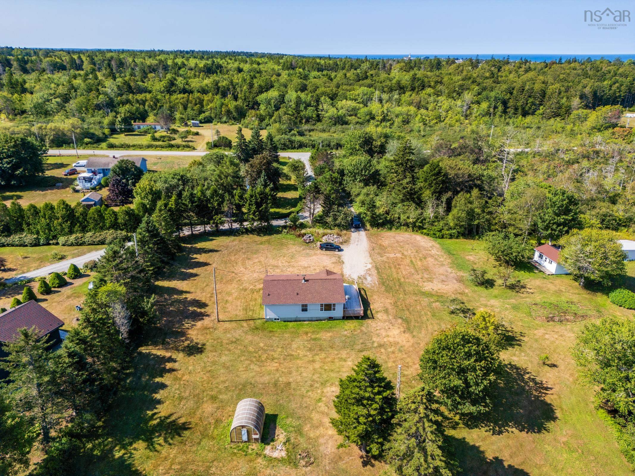 Set well back from the road on 8 acres of land, this two-bedroom, two-bathroom bungalow offers comfort, privacy, and modern updates. A large deck stretches along the home, perfect for enjoying the peaceful surroundings. Inside, fresh paint brightens every room, while the open-concept kitchen and dining area create a welcoming first impression. To the left, the cozy living room offers a comfortable space for both everyday living and entertaining. Beyond the kitchen lies the master bedroom complete with a spacious ensuite, along with the second bedroom and another full bathroom conveniently located together. Most windows and the skylight have been recently replaced, adding light and efficiency. The very spacious unfinished basement offers excellent storage with the potential to be finished into additional living space, a workshop, or a rec room and now includes a recently installed pellet stove, along with a brand new washer and dryer, contributing to improved heating efficiency and everyday convenience throughout the home. A right of way ensures convenient access to the property, where extensive work has already been completed, making it move-in ready. Adding to its appeal, a small brook runs through the property, enhancing the natural setting. The shed and garage feature durable steel roofs for long-lasting protection. With its generous acreage, thoughtful improvements, convenient location, and tranquil surroundings, this move-in ready bungalow presents a strong opportunity for those seeking space, comfort, and a quiet country setting. Book your showing today!