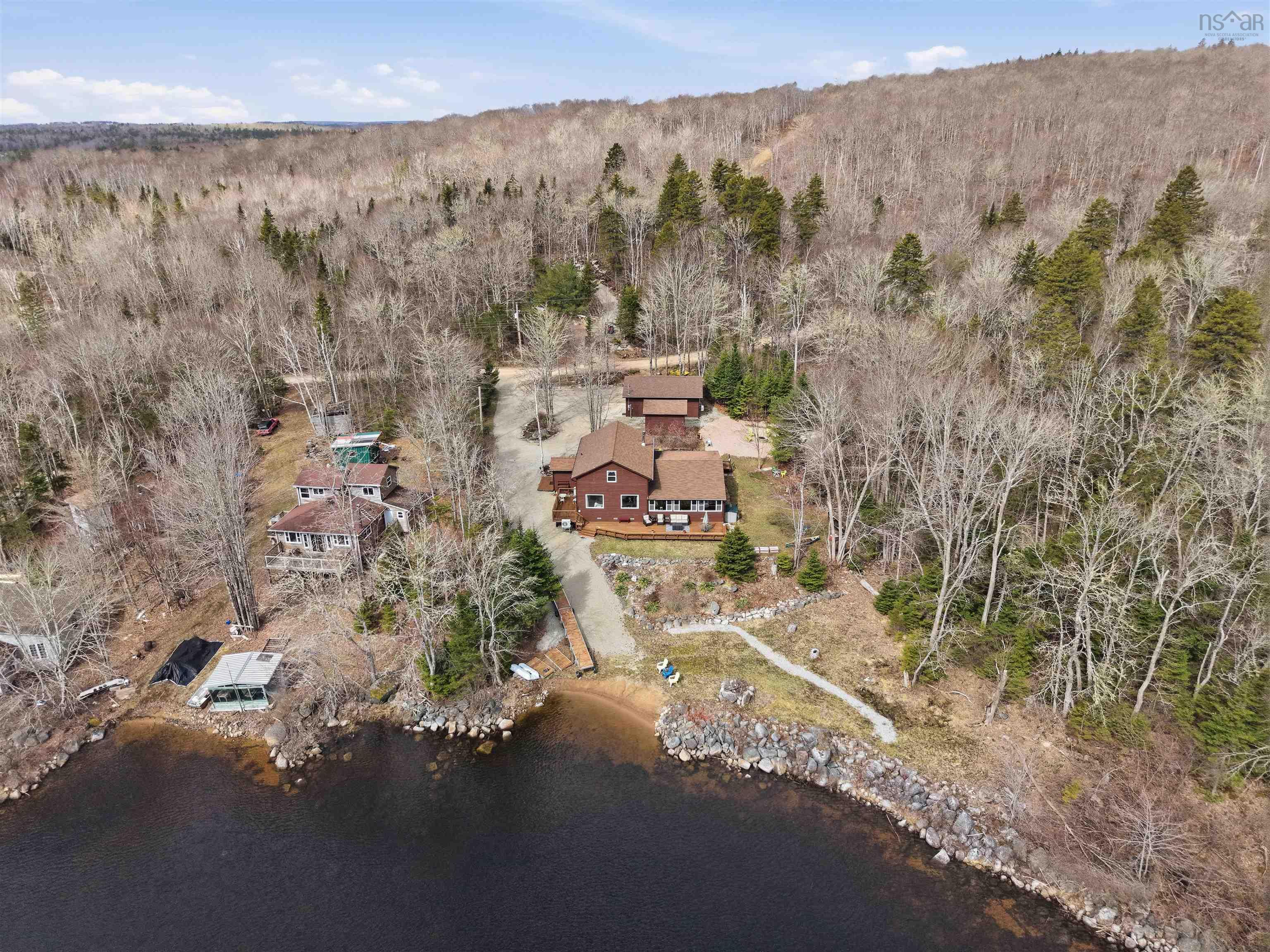 A rare opportunity to own a stunning turnkey property located on one of the province’s most sought-after lakes. Only 1 hour and 20 minutes from Halifax, this extensively renovated 4 bedroom, 2 bathroom lakefront home offers privacy, natural surroundings, and direct water access, making it an ideal year-round residence or a seasonal retreat. The main living area showcases beautiful vaulted pine ceilings and an open-concept layout. The kitchen includes a walk-in pantry and an island with a connected breakfast bar, perfect for entertaining your guests. Additional living spaces include a sunroom with lake views, often enjoyed with a cup of coffee and a sun rise, as well as a screen room perfect for enjoying those relaxing summer evenings. Loft-style bedrooms provide additional sleeping space for family or guests. Heating is plentiful and provided by a wood stove, a ductless heat pump, and electric baseboards. The home is also equipped with a propane stove and generator for added reliability. Outbuildings include a detached double garage, small shed, and carport, offering ample storage for vehicles and recreational equipment. The property includes its own personal private beach and boat launch with direct access to Sherbrooke Lake. The community features a firehall with a communal boat launch, as well as a separate private beach accessible to all members of the community, where they often get together to host activities such as potlucks and family day. After more than 40 years of ownership, this home has been packed full of love and memories. It’s now ready for its new owners and for you to create more to last a lifetime. | Road maintenance fee of $1,185/annually.